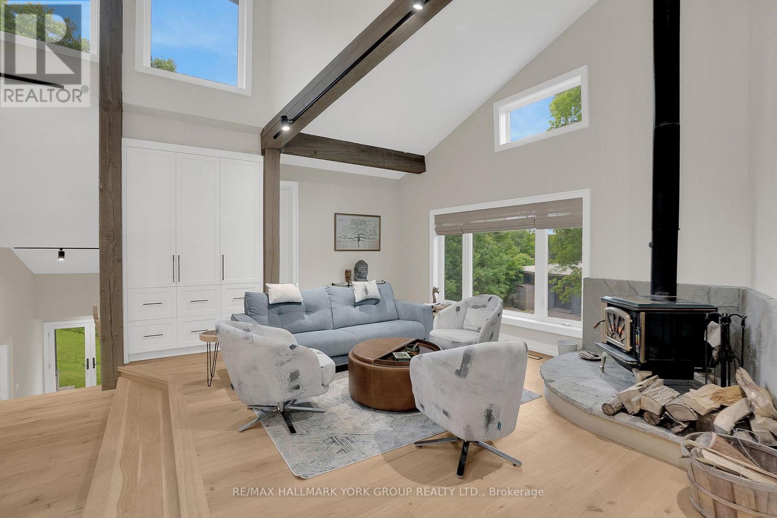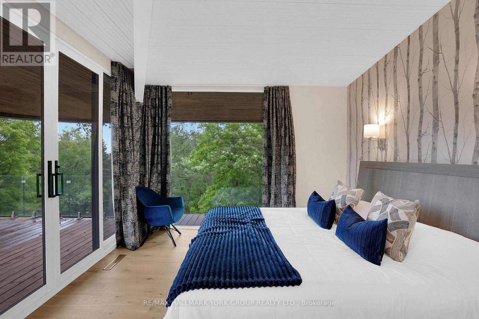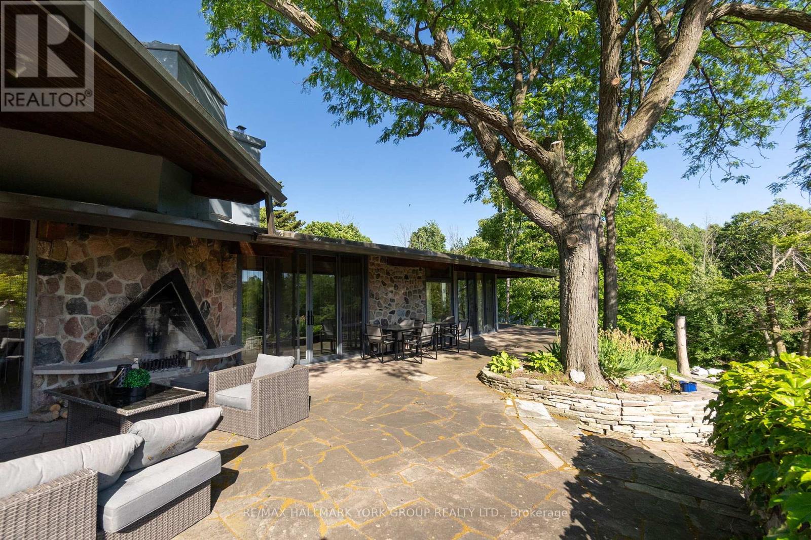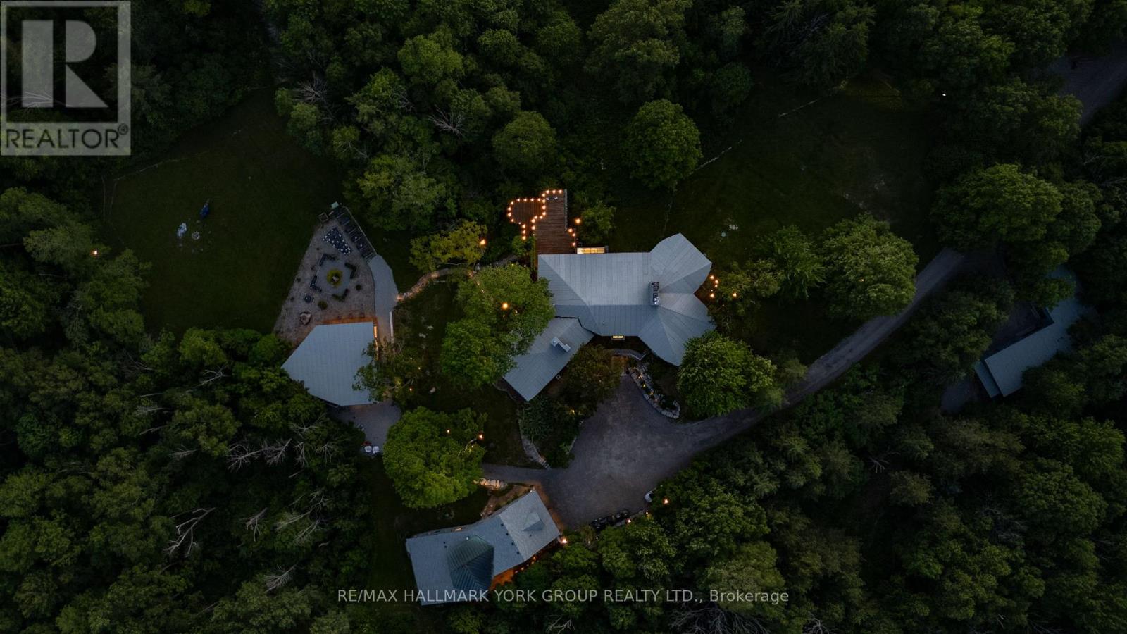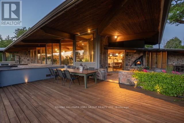 Welcome to an extraordinary estate tucked away behind welcoming stone pillars and a winding forested driveway! This is a work of art designed by the legendary Grant Whatmough and Gardiner Cowan, with distinctive Frank Lloyd Wright style of Architecture. This iconic Mid-Century Modern residence is gracefully integrated into 32 acres of majestic land, where nature and architecture exist in perfect harmony. From the moment you approach the stunning entry door, you're drawn into a world of timeless design and serene beauty. This home is lovingly maintained with extensive renovations, while preserving the character and soul of this home, Including Floor-to-ceiling windows bring the outdoors in, Stone fireplaces indoor and out, original stone walls and impressive wood beams throughout. Spanning approximately 5,000 sq ft, the main residence features 6 bedrooms, 7 bathrooms, an office, a meditation room, and a separate nanny suite. Multiple terraces and decks surround the home, offering breathtaking views of the land, and a tranquil lake creating the feel of a private luxury retreat. This property features a rare second home- fully renovated and approximately 3,500 sq ft-offering 3 bedrooms, 4 bathrooms, and a massive loft space! This second home is ideal for an extended family! There is an additional Yoga studio with an outdoor shower! a Detached garage/ workshop, a charming cedar Cabin with Sauna and Cold plunge, a Covered cabana for entertaining or relaxing on the property. This is a once-in-a-lifetime opportunity to own an architecturally significant estate in the prestigious King Township. With unmatched privacy, lush surroundings, and two beautifully appointed homes, this property is truly a timeless work of art. Don't Miss it! (id:65552)