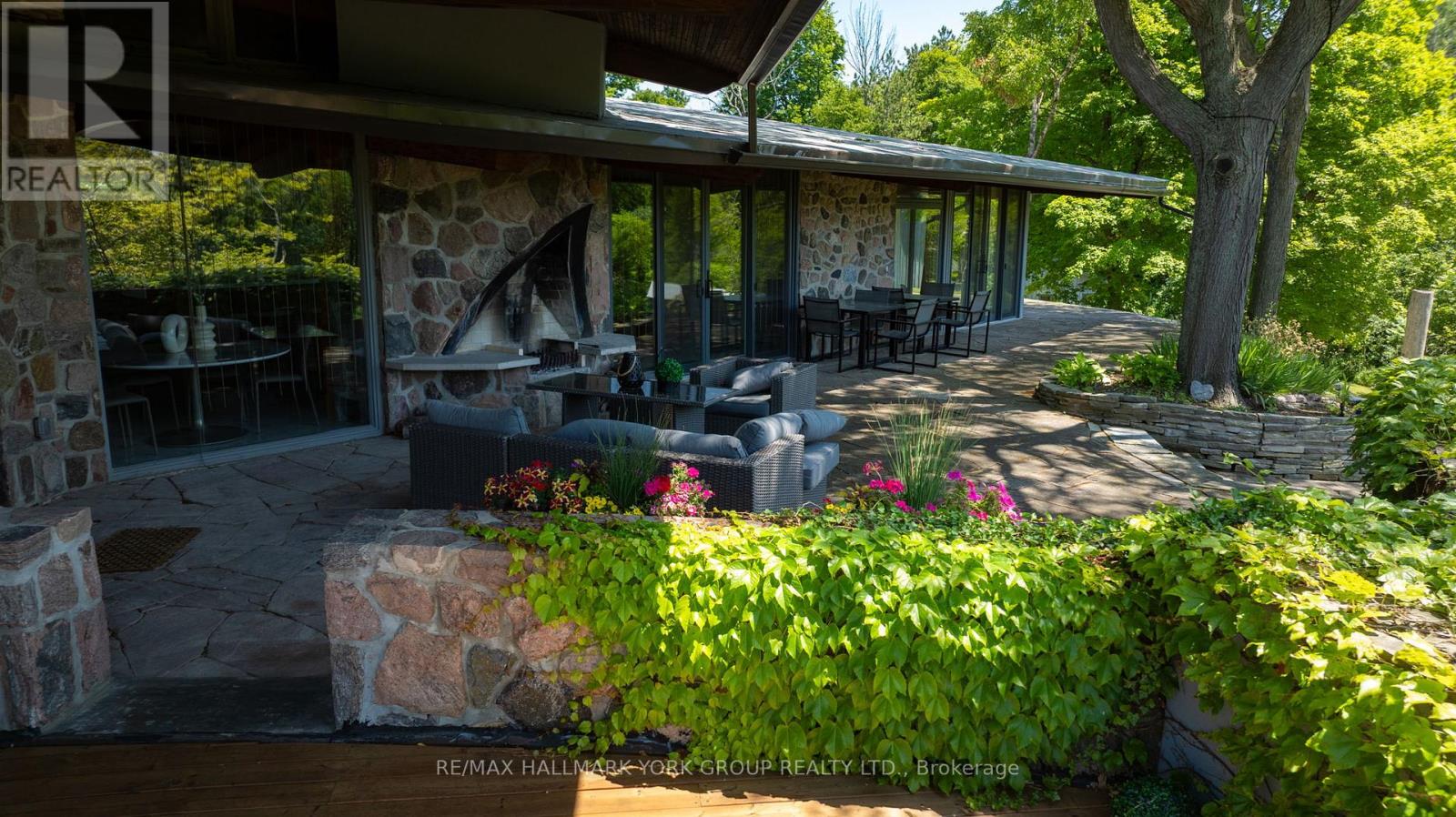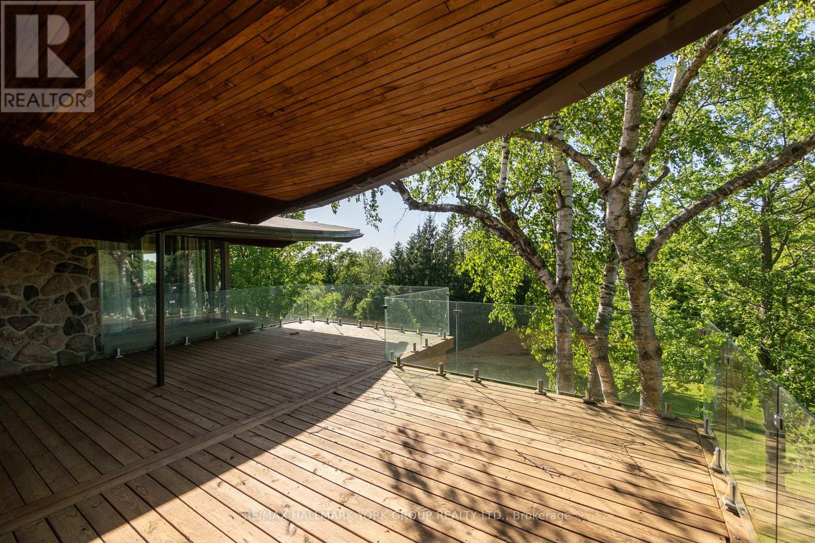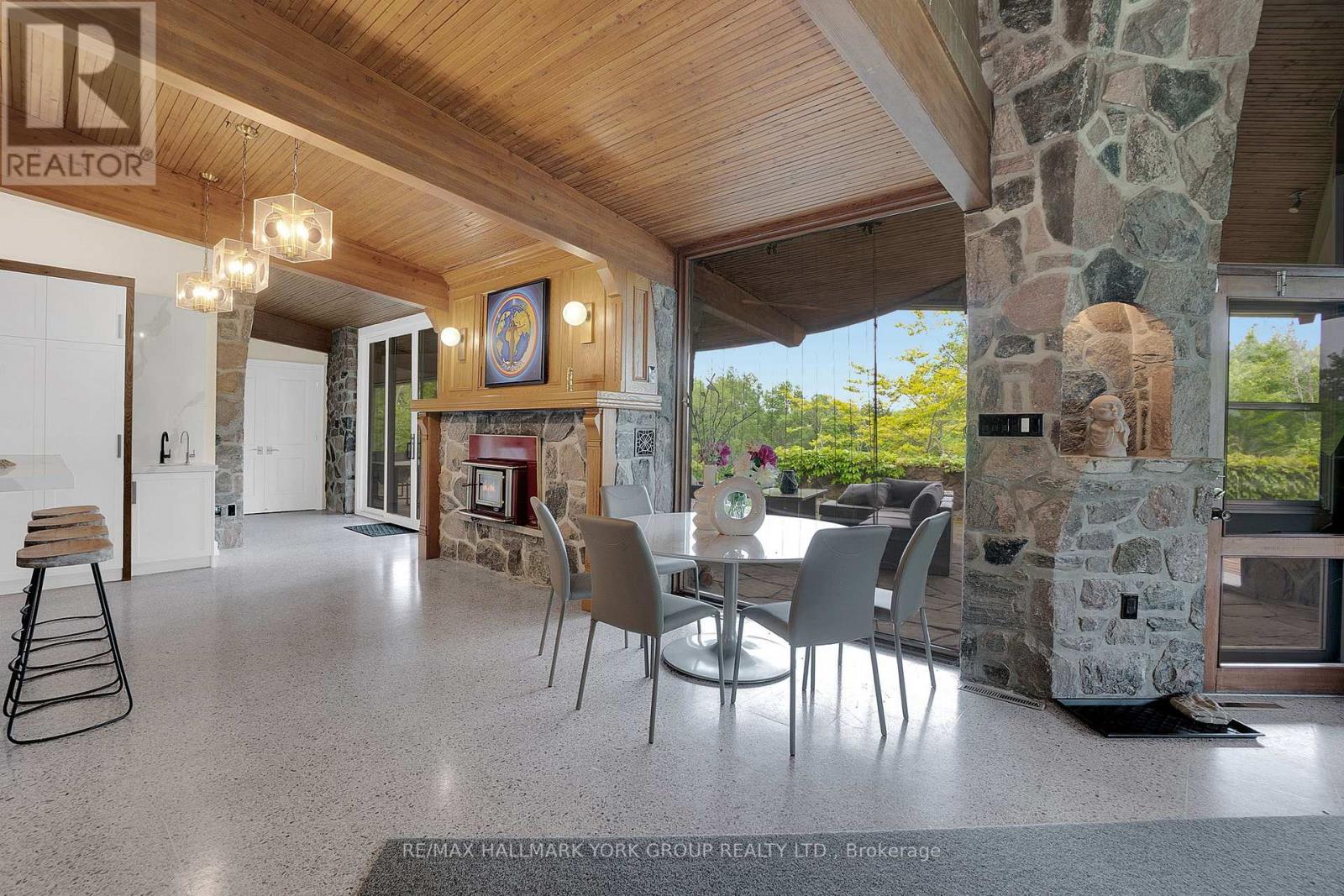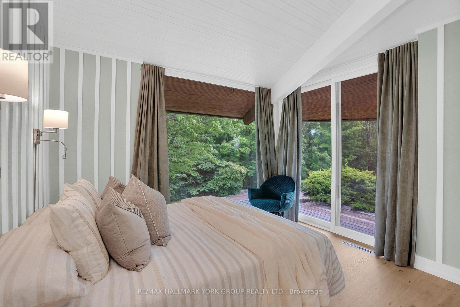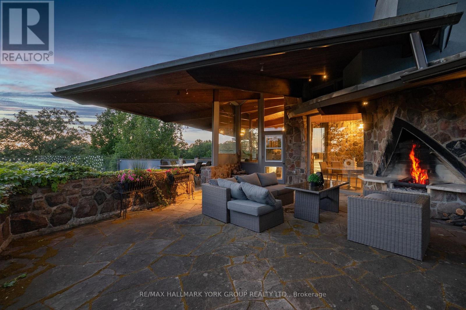 Welcome to an extraordinary estate tucked away behind welcoming stone pillars and a winding forested driveway! This is a work of art designed by the legendary Grant Whatmough and Gardiner Cowan, with distinctive Frank Lloyd Wright style of Architecture. This iconic Mid-Century Modern residence is gracefully integrated into 32 acres of majestic land, where nature and architecture exist in perfect harmony. From the moment you approach the stunning entry door, you're drawn into a world of timeless design and serene beauty. This home is lovingly maintained with extensive renovations, while preserving the character and soul of this home, Including Floor-to-ceiling windows bring the outdoors in, Stone fireplaces indoor and out, original stone walls and impressive wood beams throughout. Spanning approximately 5,000 sq ft, the main residence features 6 bedrooms, 7 bathrooms, an office, a meditation room, and a separate nanny suite. Multiple terraces and decks surround the home, offering breathtaking views of the land, and a tranquil lake creating the feel of a private luxury retreat. This property features a rare second home- fully renovated and approximately 3,500 sq ft-offering 3 bedrooms, 4 bathrooms, and a massive loft space! This second home is ideal for an extended family! There is an additional Yoga studio with an outdoor shower! a Detached garage/ workshop, a charming cedar Cabin with Sauna and Cold plunge, a Covered cabana for entertaining or relaxing on the property. This is a once-in-a-lifetime opportunity to own an architecturally significant estate in the prestigious King Township. With unmatched privacy, lush surroundings, and two beautifully appointed homes, this property is truly a timeless work of art. Don't Miss it! (id:65552)
