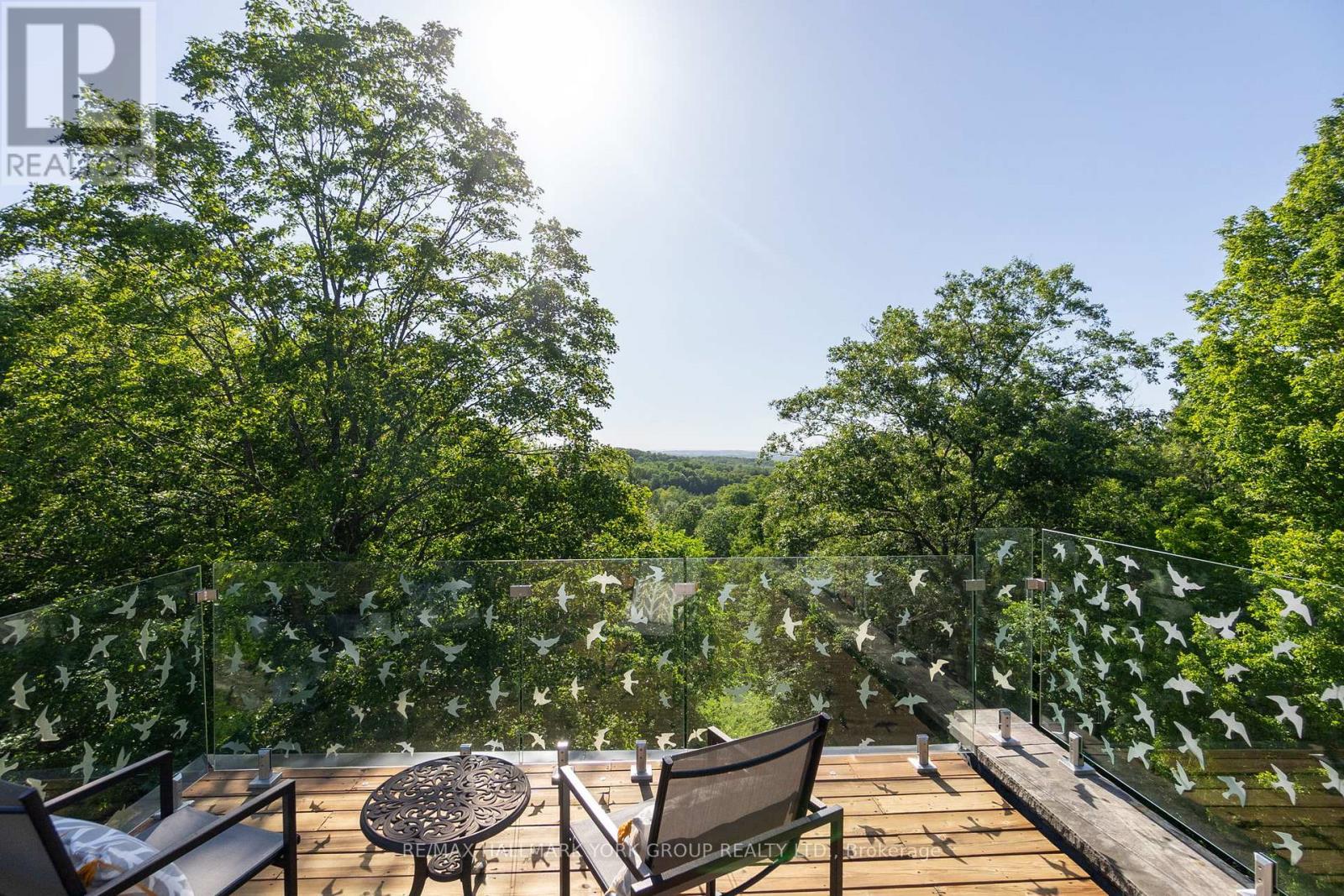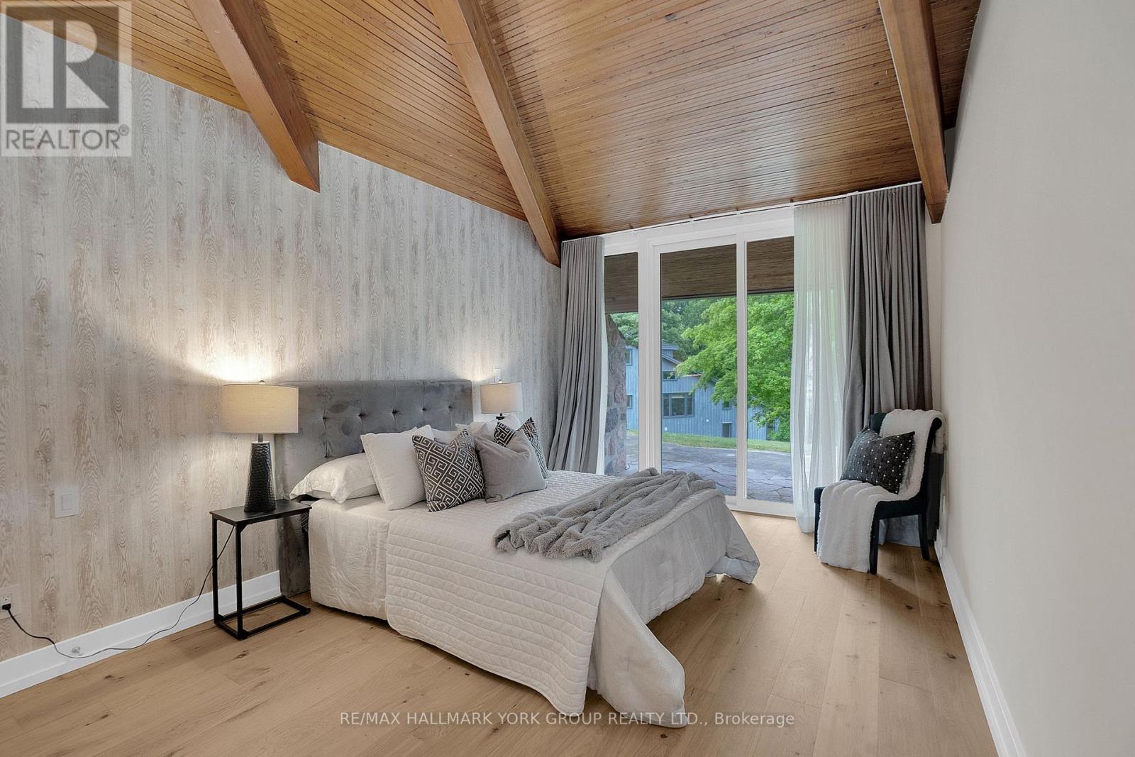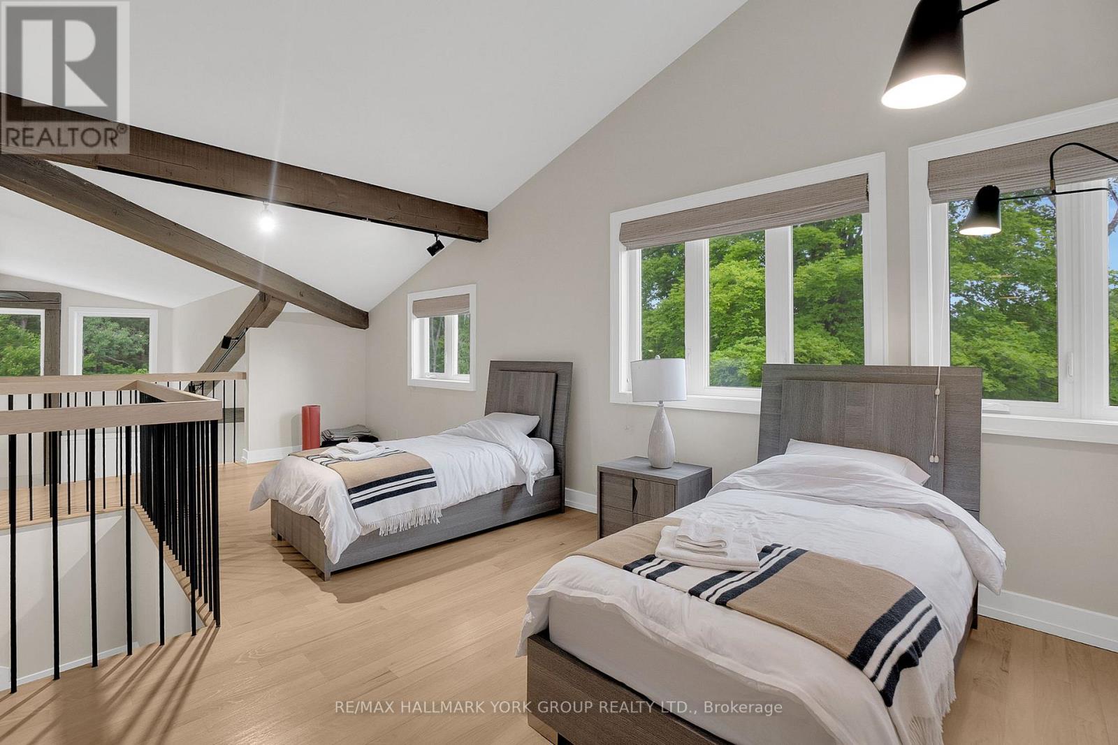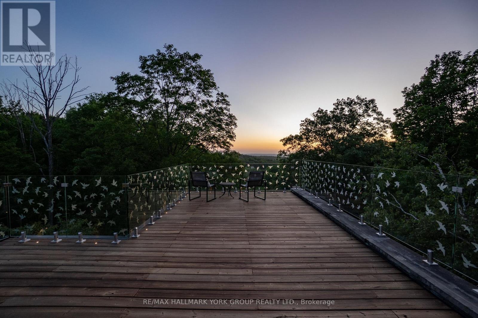 Welcome to an extraordinary estate tucked away behind welcoming stone pillars and a winding forested driveway! This is a work of art designed by the legendary Grant Whatmough and Gardiner Cowan, with distinctive Frank Lloyd Wright style of Architecture. This iconic Mid-Century Modern residence is gracefully integrated into 32 acres of majestic land, where nature and architecture exist in perfect harmony. From the moment you approach the stunning entry door, you're drawn into a world of timeless design and serene beauty. This home is lovingly maintained with extensive renovations, while preserving the character and soul of this home, Including Floor-to-ceiling windows bring the outdoors in, Stone fireplaces indoor and out, original stone walls and impressive wood beams throughout. Spanning approximately 5,000 sq ft, the main residence features 6 bedrooms, 7 bathrooms, an office, a meditation room, and a separate nanny suite. Multiple terraces and decks surround the home, offering breathtaking views of the land, and a tranquil lake creating the feel of a private luxury retreat. This property features a rare second home- fully renovated and approximately 3,500 sq ft-offering 3 bedrooms, 4 bathrooms, and a massive loft space! This second home is ideal for an extended family! There is an additional Yoga studio with an outdoor shower! a Detached garage/ workshop, a charming cedar Cabin with Sauna and Cold plunge, a Covered cabana for entertaining or relaxing on the property. This is a once-in-a-lifetime opportunity to own an architecturally significant estate in the prestigious King Township. With unmatched privacy, lush surroundings, and two beautifully appointed homes, this property is truly a timeless work of art. Don't Miss it! (id:65552)