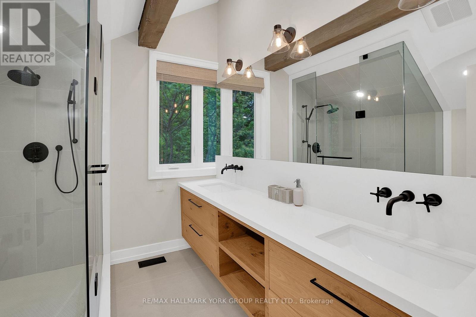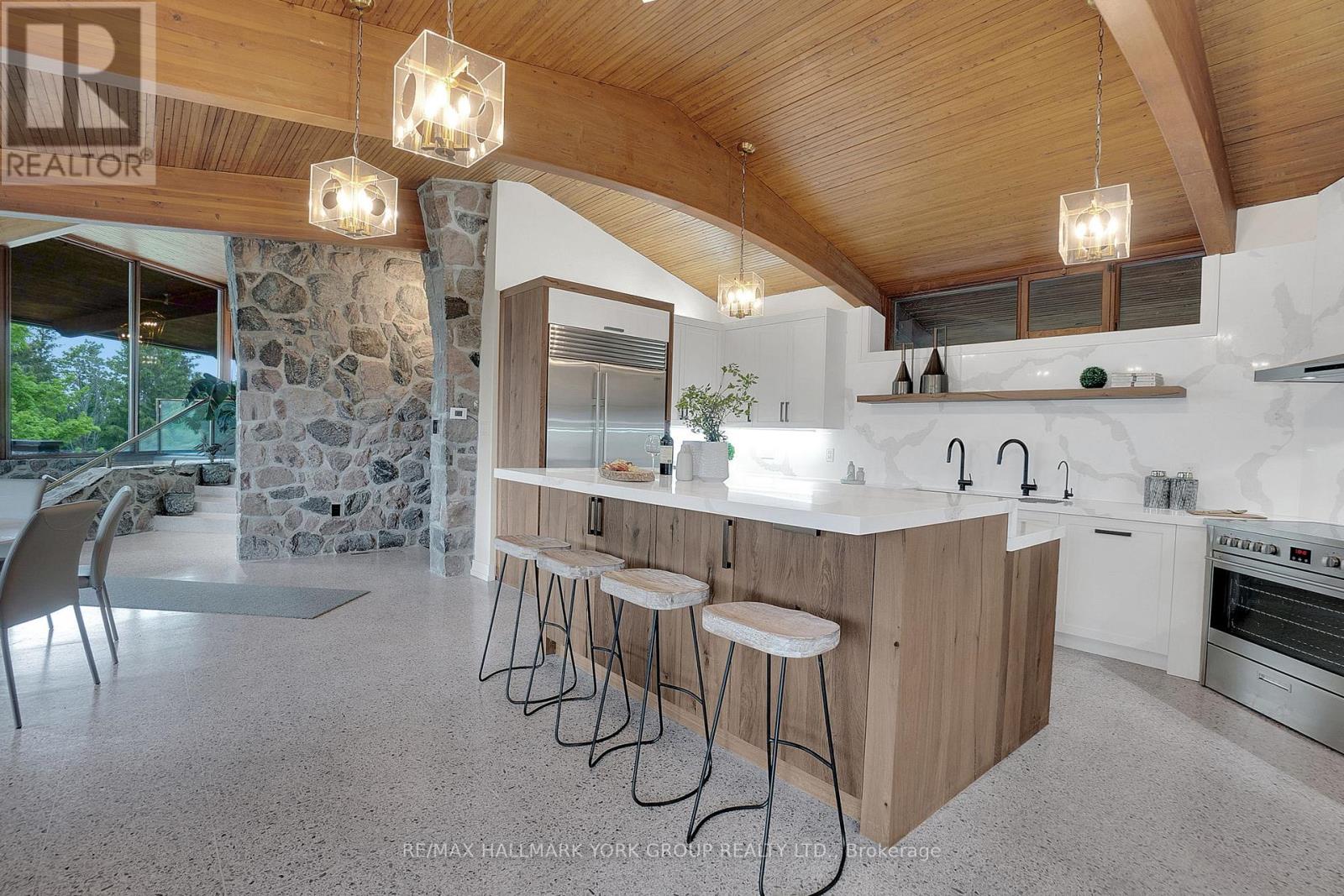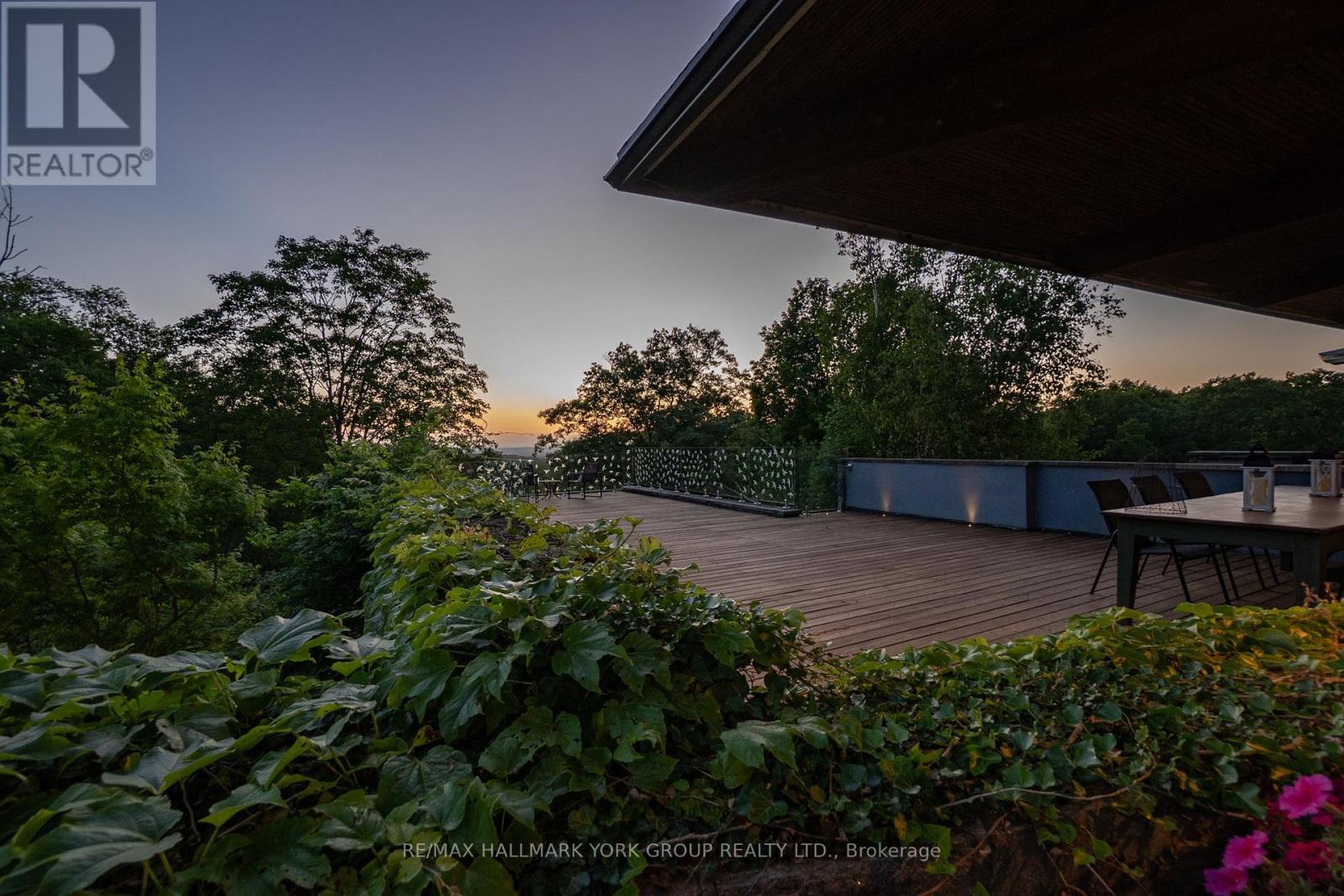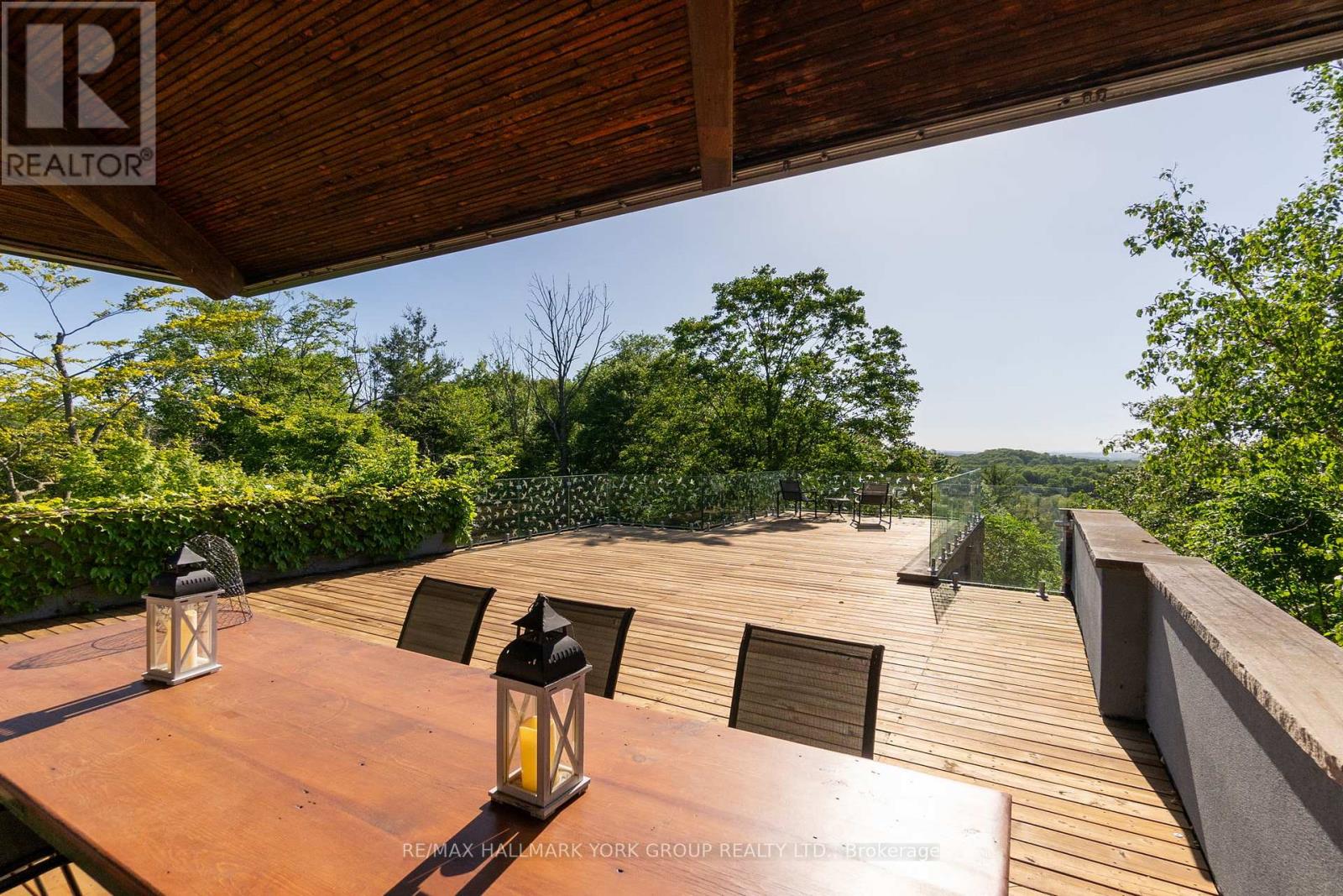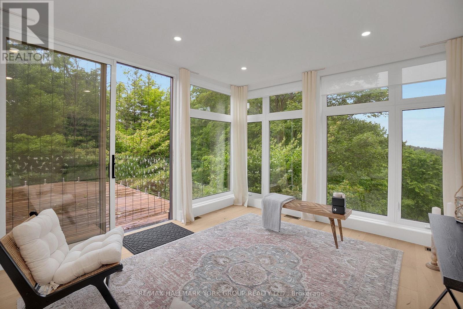 Welcome to an extraordinary estate tucked away behind welcoming stone pillars and a winding forested driveway! This is a work of art designed by the legendary Grant Whatmough and Gardiner Cowan, with distinctive Frank Lloyd Wright style of Architecture. This iconic Mid-Century Modern residence is gracefully integrated into 32 acres of majestic land, where nature and architecture exist in perfect harmony. From the moment you approach the stunning entry door, you're drawn into a world of timeless design and serene beauty. This home is lovingly maintained with extensive renovations, while preserving the character and soul of this home, Including Floor-to-ceiling windows bring the outdoors in, Stone fireplaces indoor and out, original stone walls and impressive wood beams throughout. Spanning approximately 5,000 sq ft, the main residence features 6 bedrooms, 7 bathrooms, an office, a meditation room, and a separate nanny suite. Multiple terraces and decks surround the home, offering breathtaking views of the land, and a tranquil lake creating the feel of a private luxury retreat. This property features a rare second home- fully renovated and approximately 3,500 sq ft-offering 3 bedrooms, 4 bathrooms, and a massive loft space! This second home is ideal for an extended family! There is an additional Yoga studio with an outdoor shower! a Detached garage/ workshop, a charming cedar Cabin with Sauna and Cold plunge, a Covered cabana for entertaining or relaxing on the property. This is a once-in-a-lifetime opportunity to own an architecturally significant estate in the prestigious King Township. With unmatched privacy, lush surroundings, and two beautifully appointed homes, this property is truly a timeless work of art. Don't Miss it! (id:65552)