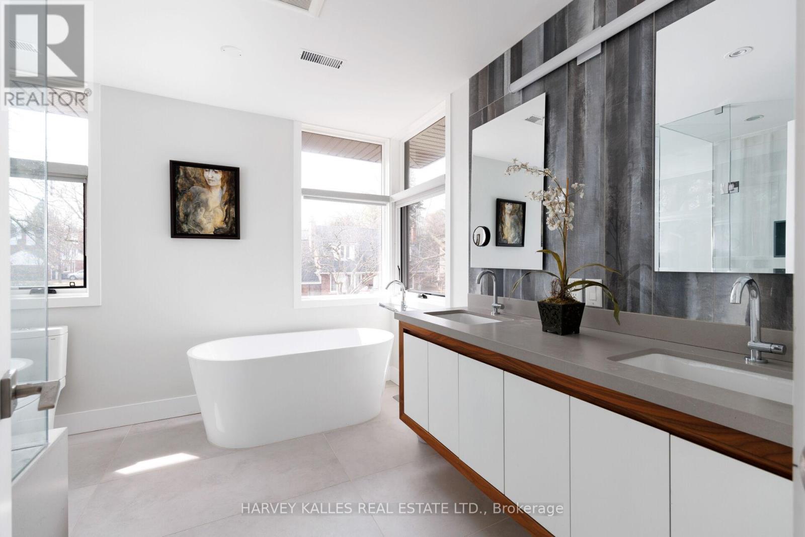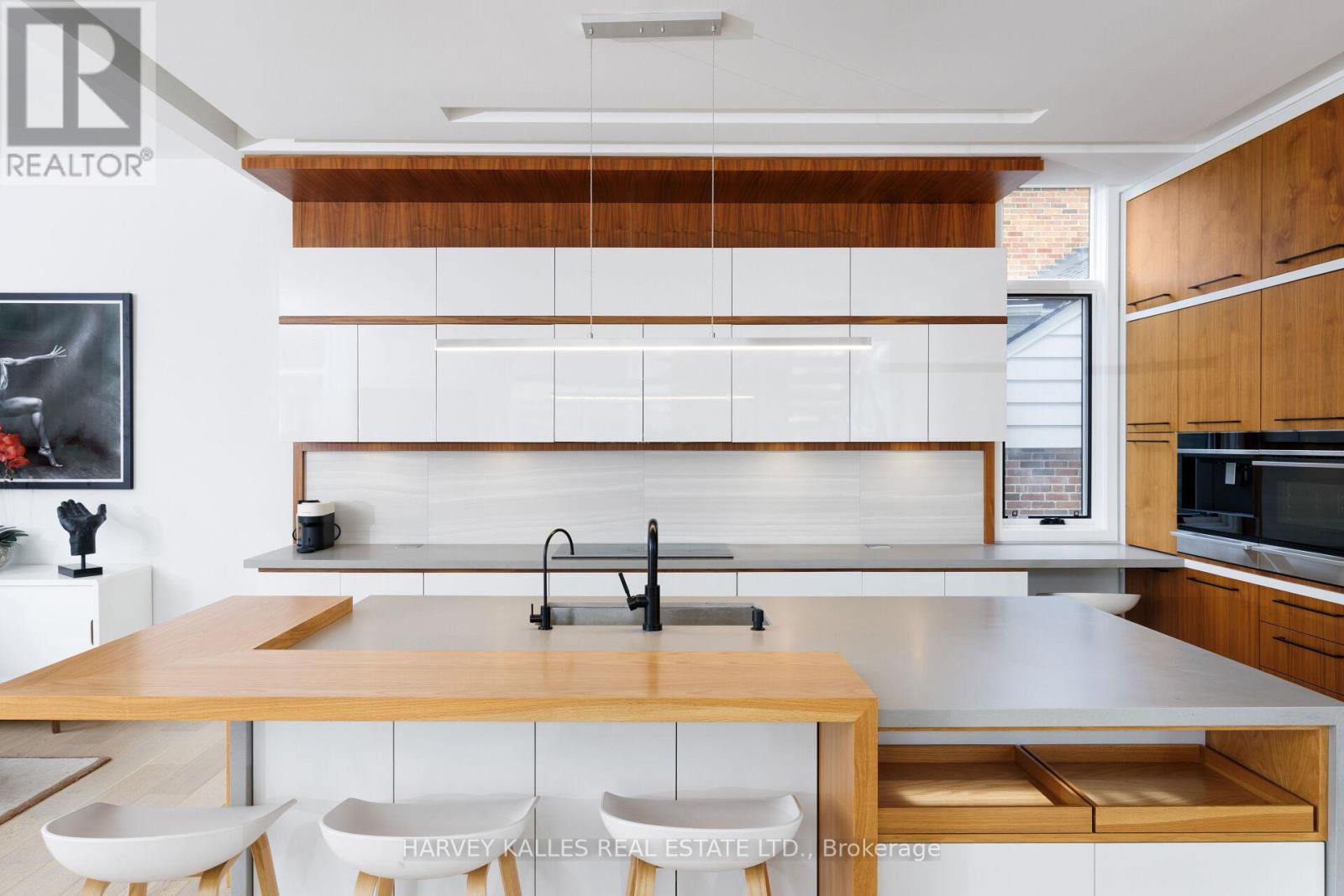 David Small Designs Newly built custom modern home in prime Sunnylea community, nestled within natural canopy and captivating walkways and tree lined streets .. an oasis of calm, peace and quiet mere steps to parks and walking trails, exceptional public and catholic schools and the hustle bustle of Shops on the Kingsway on Bloor West. Preferred 4+1 Bedrooms with 5 Bathrooms crafted in a stunning modern aesthetic designed for the discriminating buyer. 6 car parking with attached 2 car heated garage, fully fenced yard with landscaping, and nearly 5,000 square feet of fully finished living space across 3 levels. Light filled architecture design with multiple corner windows, art gallery style 2nd floor foyer area and generous room sizes throughout. Open concept family room with gas fireplace overlooking modern kitchen with eat in counter top space and formal dining room, with den office and large laundry room completing the main level with finished carpentry and foyer shelving. Lower level features a large multiple purpose recreational room with finished shelving and cabinetry with 5th bedroom featuring walk in closet and ensuite private bath, and enclosed work crafts room. Finished home throughout with exceptional storage design. Designed and built by one of Toronto's most accomplished builders and a truly beautiful, nuanced design. (id:65552)