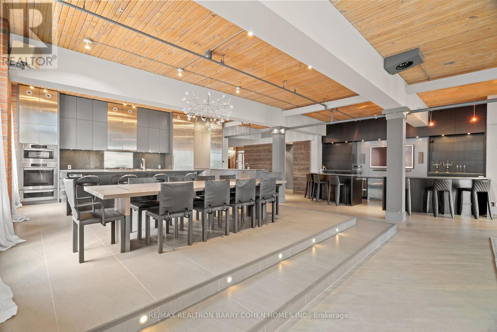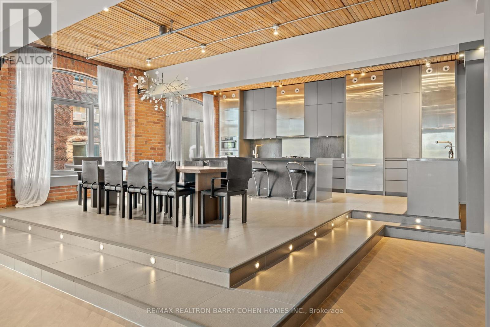 The Pinnacle Of Toronto Loft Living In High-Demand King West Neighbourhood. Remarkable Contemporary Space Features Approx 5000 Sqft With Direct Elevator Access, Exposed Brick, Soaring 12 ft Ceilings And Tall South- And West-Facing Windows. 2 Stunning South Facing Juliette Balconies. The Chef's Kitchen, Featuring Stainless Steel Miele Appliances And Long Centre Island, Is Open In Design To The Raised Dining Area, Enormous Living Room Complete With Gas Fireplace, And Expansive Wet Bar - The Perfect Entertaining Space. Primary Suite Features Its Own Gas Fireplace, Large His & Hers Dressing Rooms And An Enviable Spa-Like 7pc Ensuite. The 2nd Bedroom Boasts An Expansive Seating Area To Serve As A Family Room, Plus A Concealed Murphy Bed And 4pc Semi-Ensuite While A Bonus Space Off The Living Room Makes For The Ideal Flex Space For A Home Office, Studio Or 4th Bedroom. An Entertainer's Delight In The Heart Of King West! (id:65552)