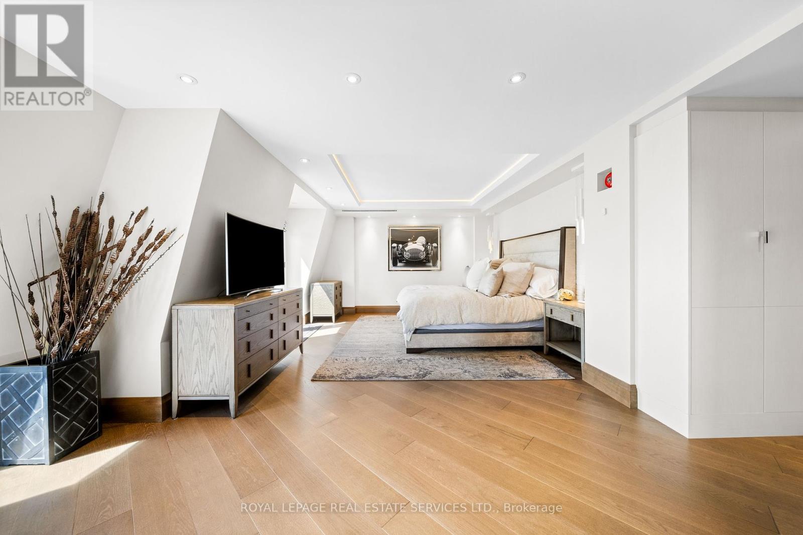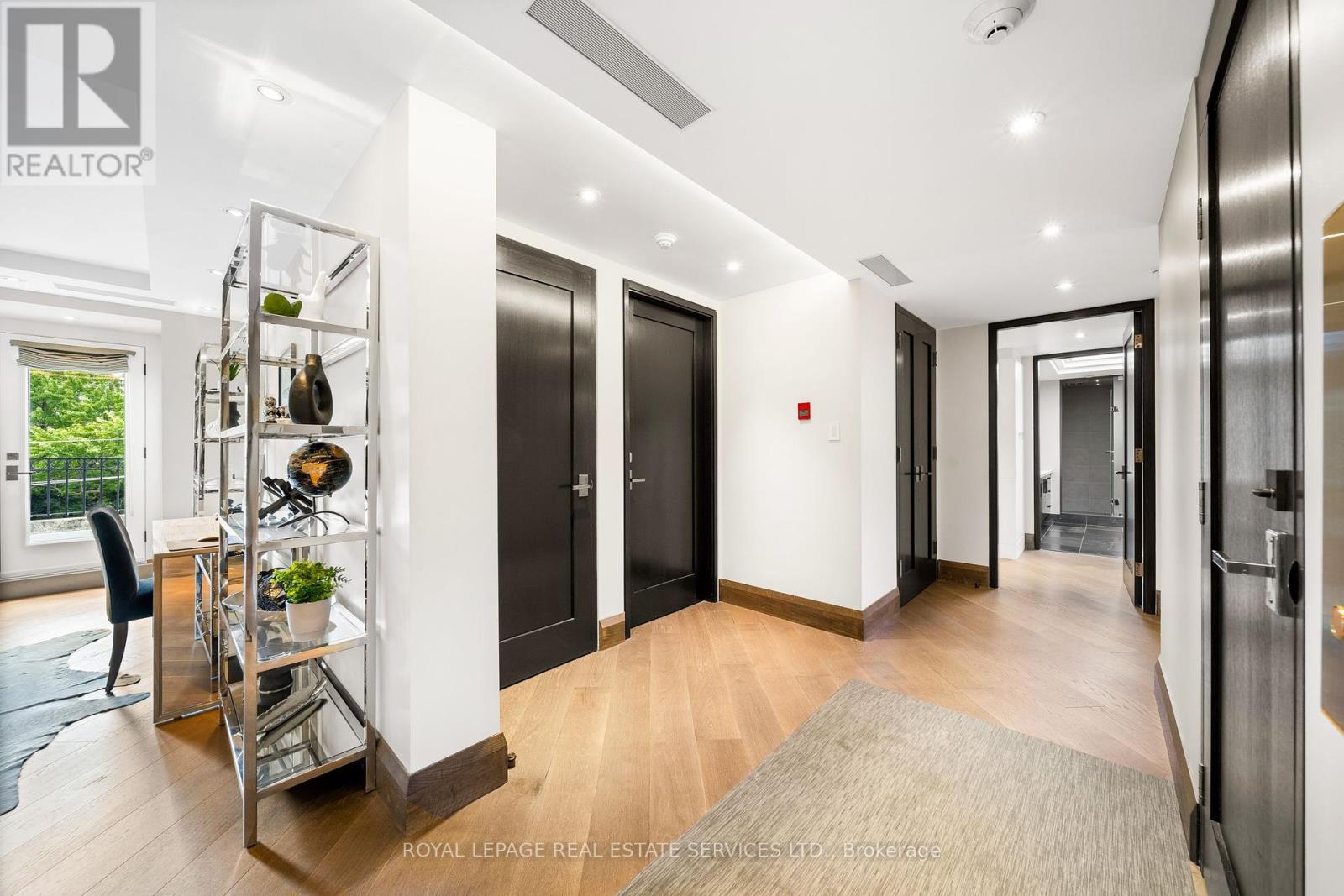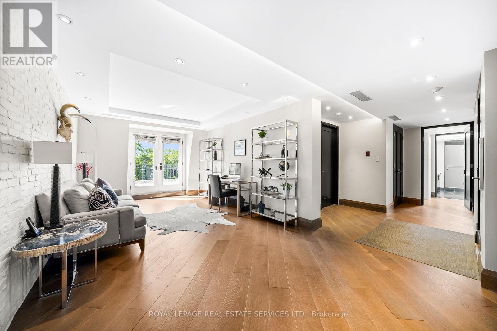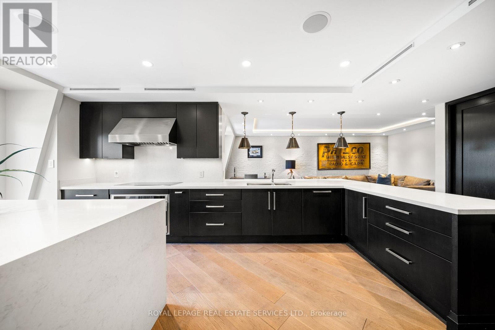This rare full-floor penthouse at The Riverstone offers 2,959 sq. ft. of living space with sweeping views of both the city skyline and Humber River. Direct elevator access opens to a bright, functional layout featuring engineered hardwood throughout and custom-built cabinetry. The kitchen includes premium appliances such as a Wolf cooktop and oven, Falmec hood, and custom millwork. The living room features a marble-faced fireplace with quartz hearth, perfect for relaxed evenings or entertaining. The primary suite offers heated stone floors in the ensuite, custom closets, and tranquil views. White oak shaker doors, panels, and baseboards add a consistent, high-end finish throughout. Includes two parking spaces and a locker. Don't miss this opportunity to own a one of a kind penthouse in a highly sought-after building and neighbourhood. (id:65552)