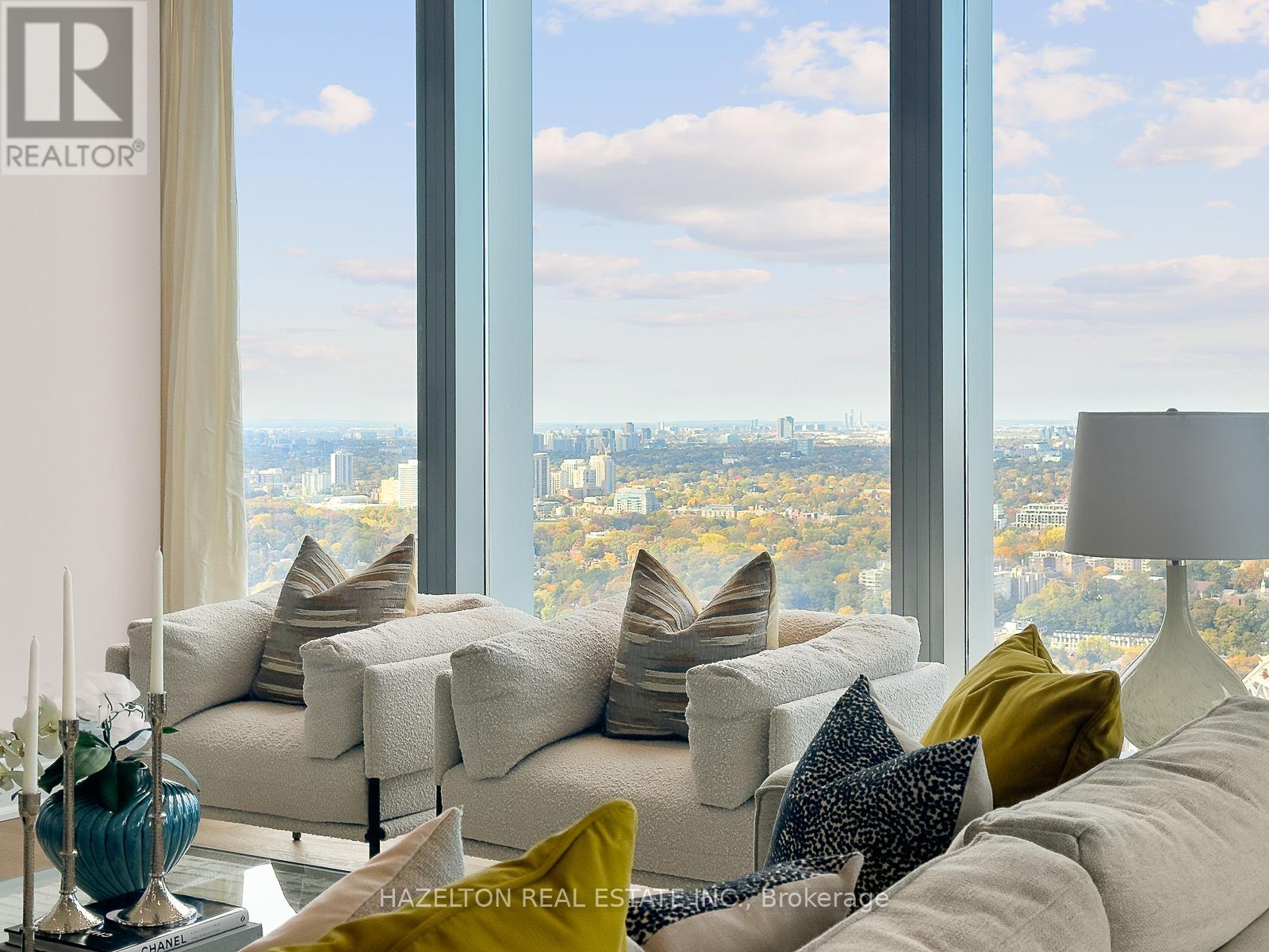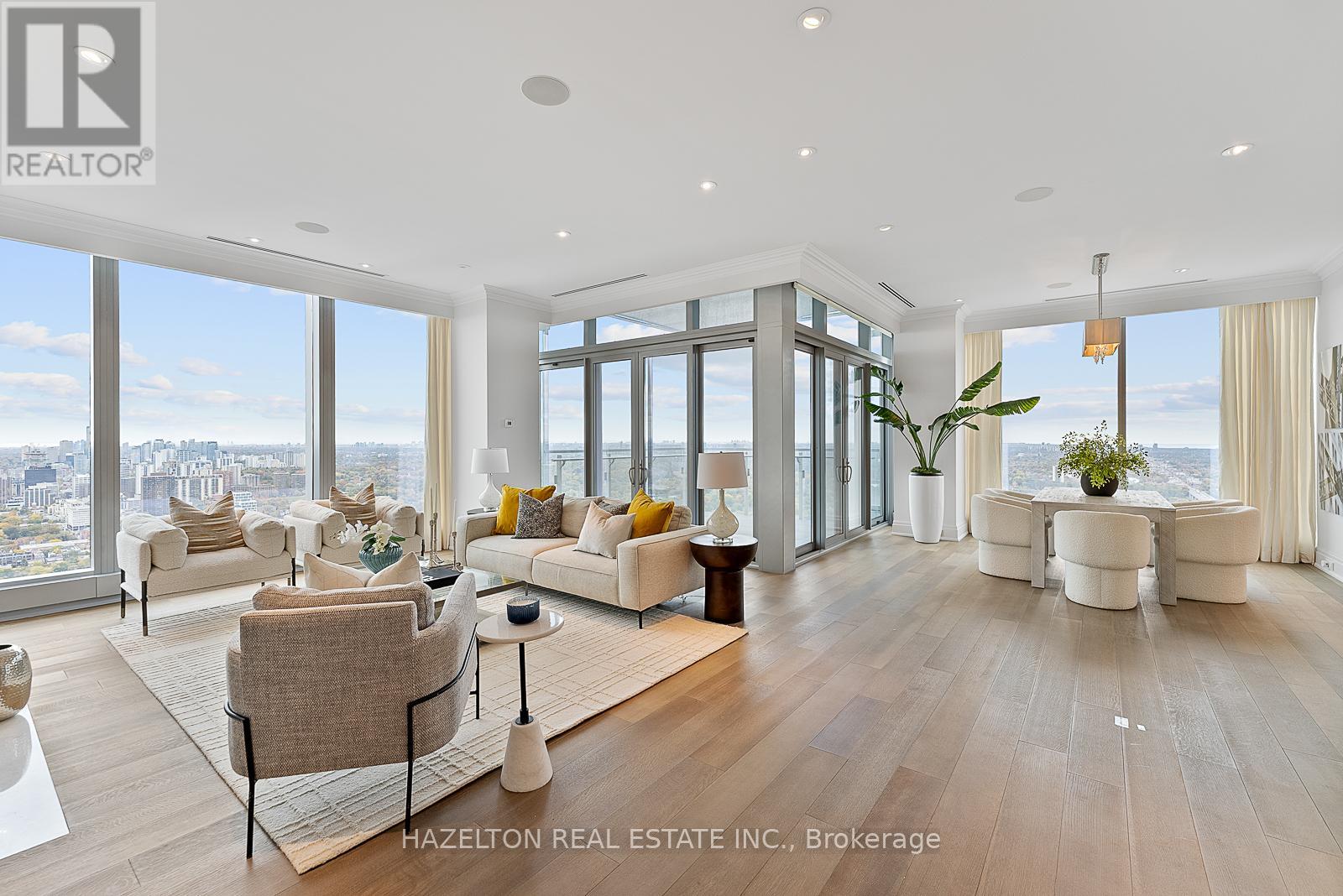 Experience unmatched luxury with breathtaking views at this rare opportunity in Four Seasons Private Residences, on the north-east corner of the 48th floor. This size and high floor rarely becomes available. Revel in truly unobstructed panoramic views stretching across the cityscape, and Rosedale Valley, offering a spectacle of sunrise and sweeping vistas from floor-to-ceiling windows. This remarkable suite stands apart with its redesigned, custom-built floor plan (far from the standard layout) , offering a unique living experience tailored for comfort and style. Soaring ceilings (with no bulkheads) and a generous 12 x 12 ft corner balcony provides a sweet spot for morning coffee or evening cocktails. The open entertaining space is generously proportioned, and the family room could be used as a second bedroom if preferred. The kitchen is like no other, exceptionally large and well planned with an abundance of storage and marble countertop space plus a walk in pantry. The primary suite is extravagant with an abundance of built ins, two walk in closets and a decadent spa like 7 piece ensuite. Truly a wonderful spot to call home in the heart of Yorkville. (id:65552)