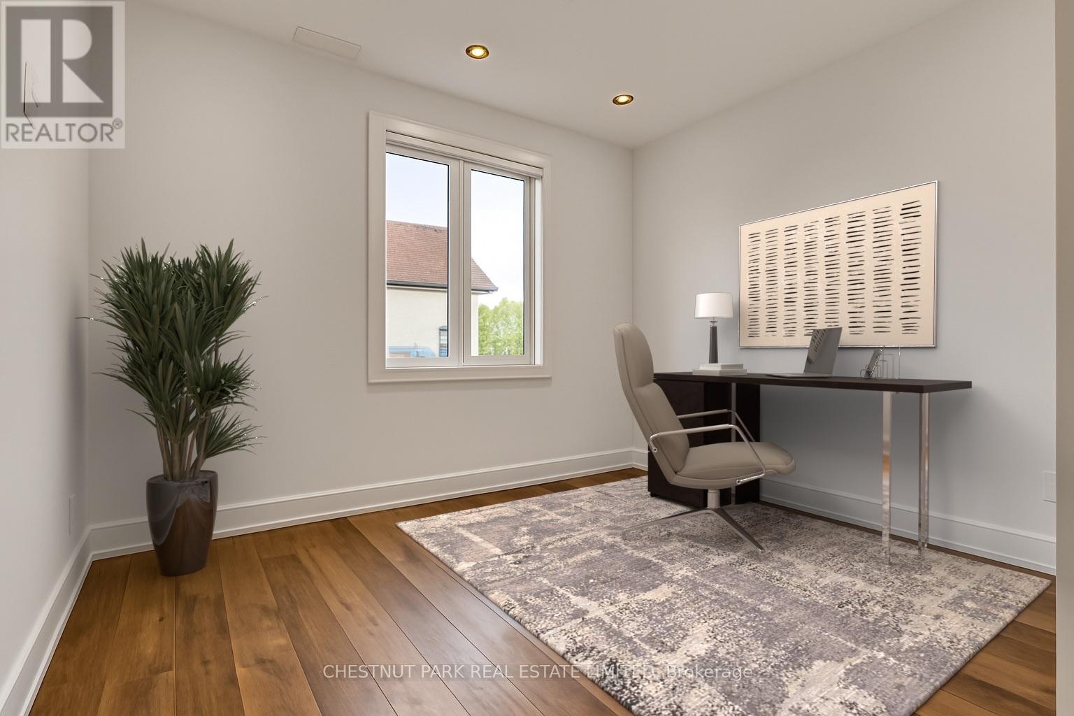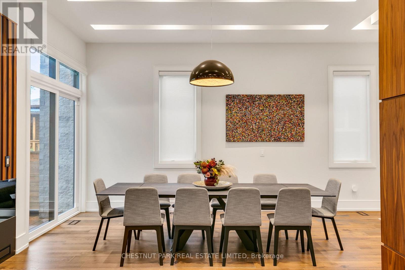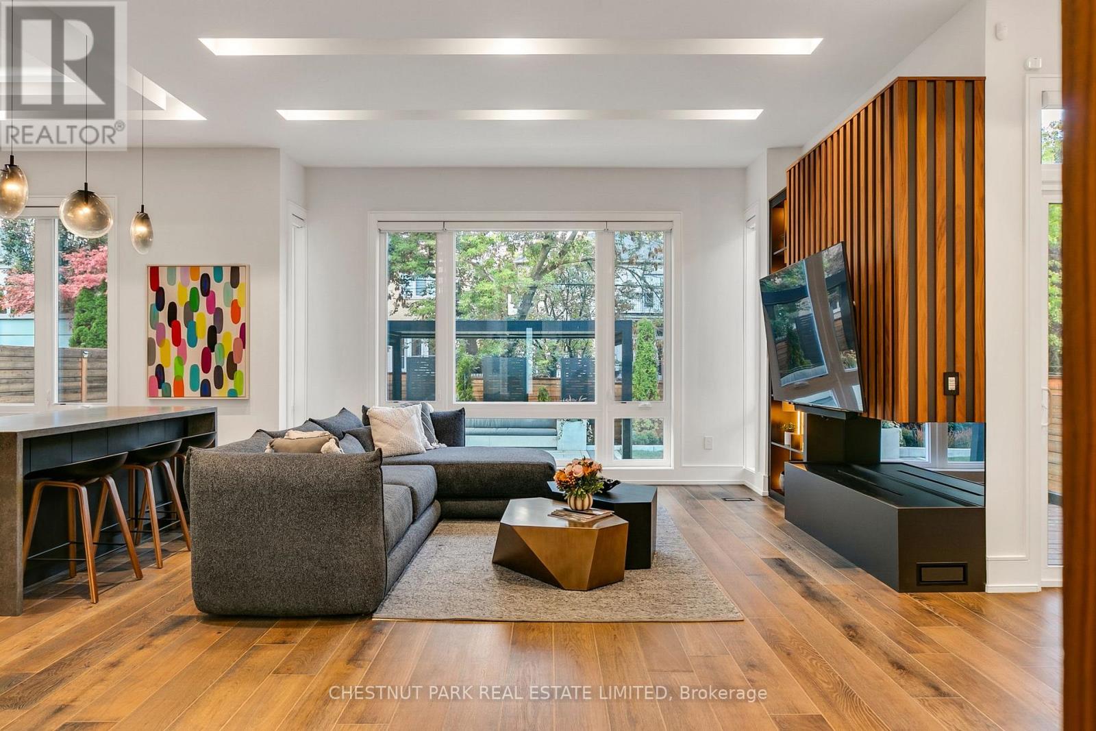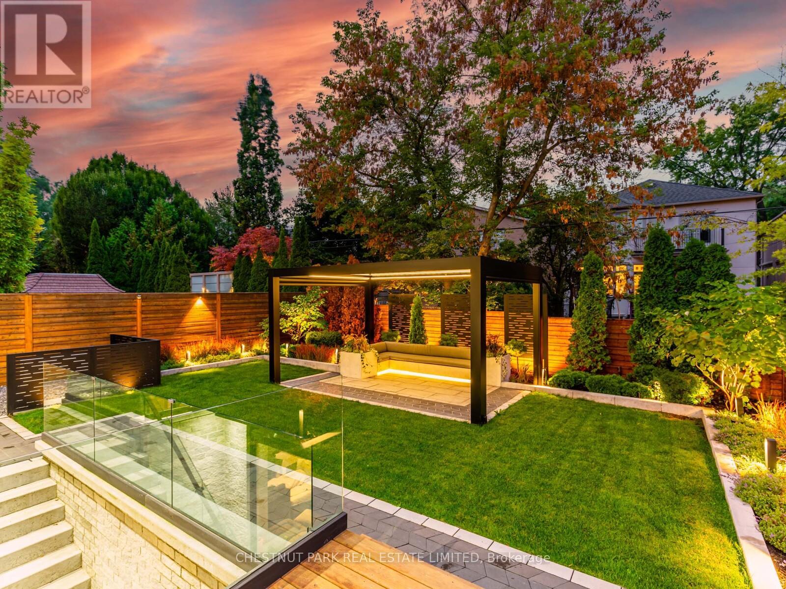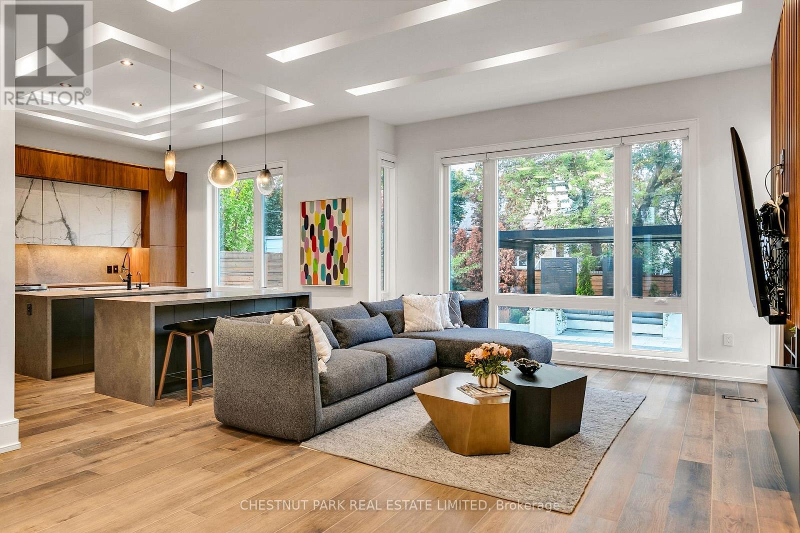 This custom-built residence is the ultimate statement in modern luxury, offering 5,382 sq ft of total living space, with every detail designed for elegance & convenience. A rare, accessible elevation where you enter directly into the home & just a few steps down to the yard. Soaring 26.5 ft foyer set the tone for a home flooded with natural light & architectural drama. The main level boasts 11 ft ceilings, flowing seamlessly into a striking kitchen. Outfitted with dual islands, a pantry, custom solid wood cabinetry with full-size porcelain slab doors, quartz countertops, matching backsplash & top-tier Wolf & Sub-Zero appliances, it is a showstopper. An architectural staircase with laser-cut, no-joint metal stringers, 3" solid white oak risers & glass railings is a central design feature. The home includes an elevator, a lit-up custom glass wine & art display & 2 laundry rooms. The primary suite is a private retreat, complete with two walk-in closets & a spa-inspired ensuite featuring a soaker tub & a skylit shower. A stunning mezzanine office (or den) overlooks the main floor, creating a dramatic, yet functional workspace. All Bedrooms have their own ensuite bathrooms. The lower level is well thought out, with over 9 ft ceilings, radiant heated floors, a bar, custom built-ins, a rec room with walkout to the yard, 2nd laundry room, gym, a powder room & a guest bedroom with an ensuite bath. The heated tile floors in the foyer & primary ensuite, professional landscaping, 11 skylights, 3 fireplaces, smart home system with features allowing you to monitor & manage the home even if you are halfway across the world, state-of-the-art alarm system, heated driveway, generator & a 2-car garage with EV charger round out the homes extensive list of luxuries.Set on a rare 50 ft lot, with professional landscaping (& room for a pool) this 4+1 bed, 7 bath home has architectural details at every turn, showcasing the perfect blend of modern innovation, sleek design & everyday comfort (id:65552)