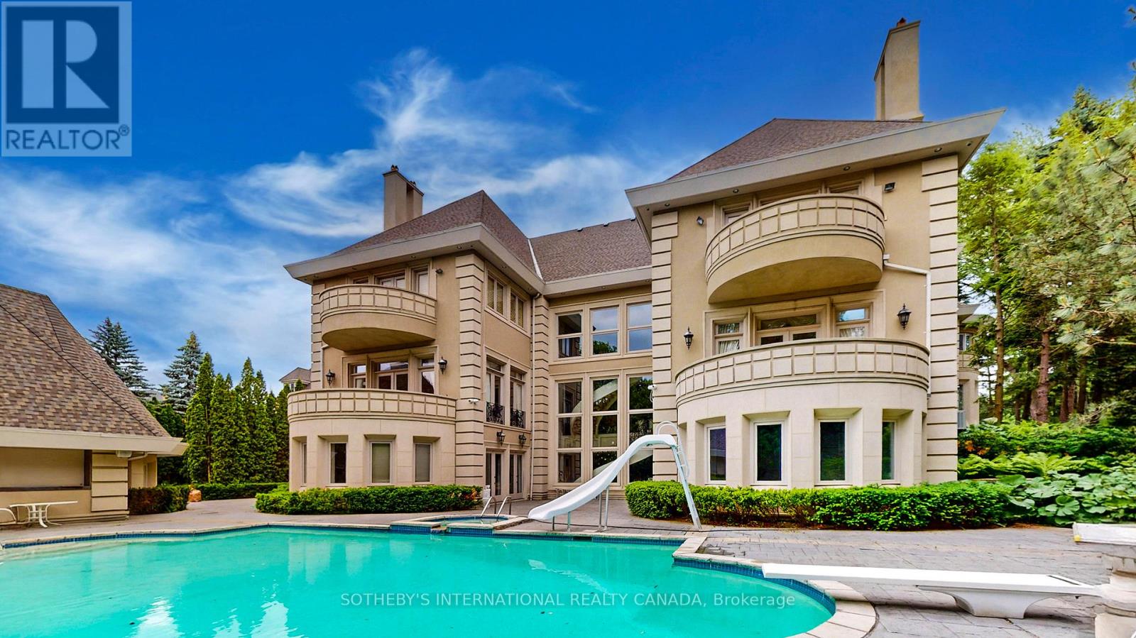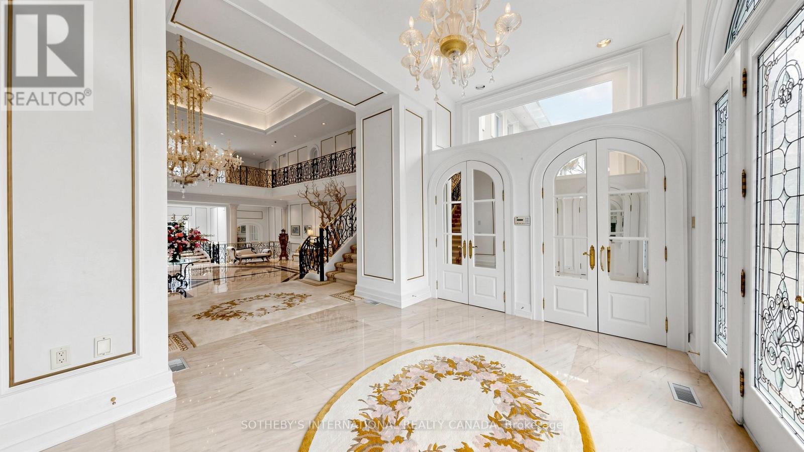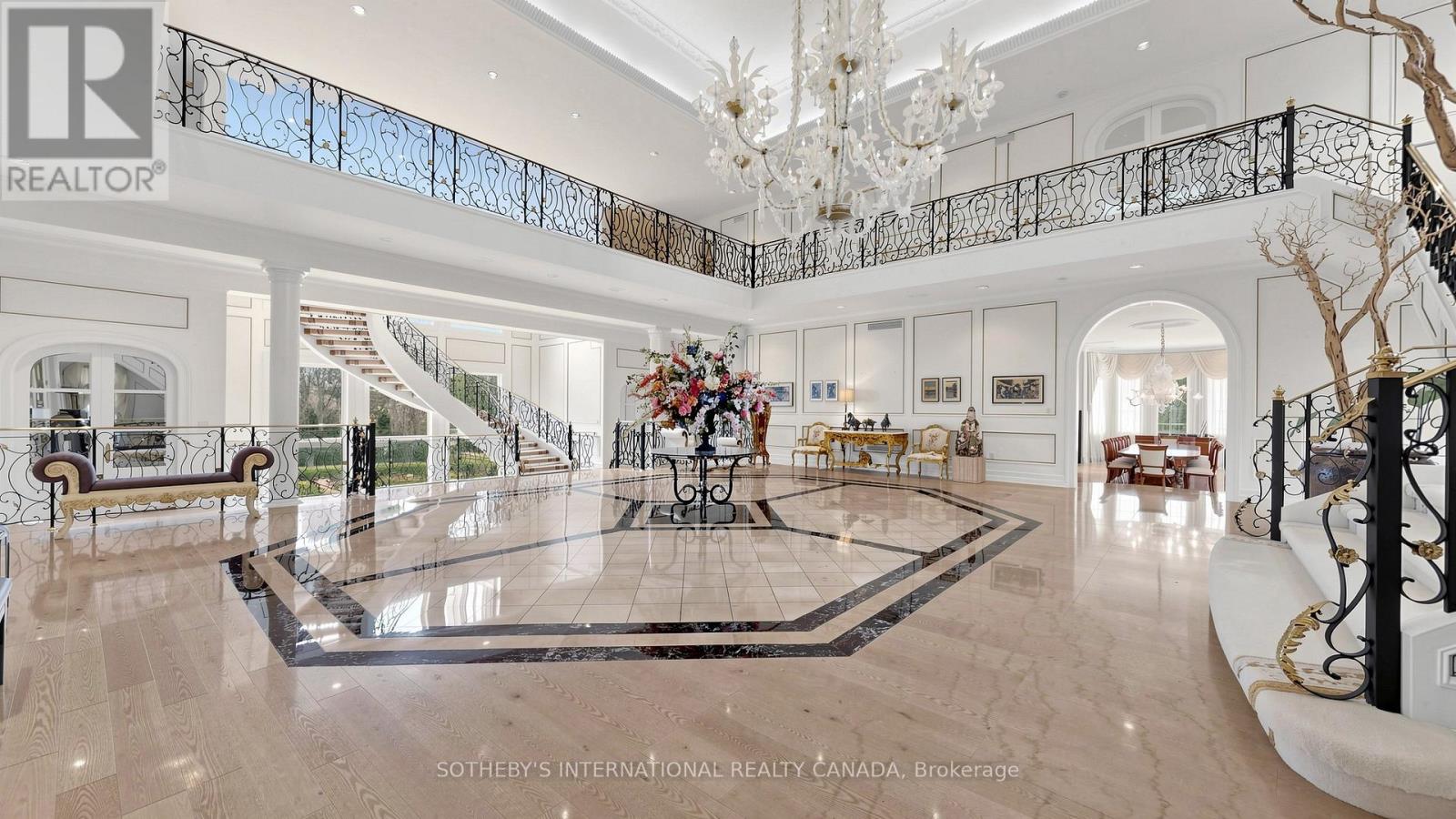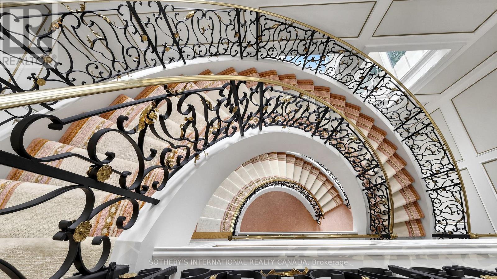 52 Post Rd stands as one of the most distinguished European Neoclassical architectural masterpieces in Bridle Path, Canada's most prestigious residential enclave. Spanning over 25,000 SF, this gated estate is widely regarded as a "Modern Grand Mansion'' of remarkable scale and presence. It seamlessly blends classical symmetry with refined contemporary elegance. Grand, high-arched doorways, intricately patterned marble floors and millwork, sweeping staircases with ornate wrought-iron railings, and monumental architectural proportions establish enduring sophistication and a regal arrival experience. Evoking a Versailles-inspired grandeur, the interiors showcase 14' and 23' soaring ceilings, dramatic stair halls and windows, and dazzling chandeliers that cast a warm, luminous glow throughout. Above-grade Appx 15,000 SF/Main + 2500SF/Coach, incl an unparalleled 300-guest ballroom; 5 +2 generously appointed bedrooms, 13 bathrooms, 3 kitchens. Plus an Appx 7,500 SF lower level thoughtfully designed for comprehensive leisure and entertaining. Featuring the wellness spa, sauna and hot tub, fitness centre, wine cellar and an extensive billiard room hosting multiple games. A tunnel-connected coachhouse offers an self-contained apt, and a 5-car-garage. Sculptural 3-dimensional walls gracefully wrap around a private courtyard, creating a striking focal point. Dramatic 3-storey floor-to-ceiling windows frame serene garden and pool views, cultivating intimate dialogue b/t interior and nature. Resort-inspired backyard featuring an outdoor pool with pool-house, a private tennis court, and a children's playground along expansive lawn and tree-lined tranquil pathway. Set among an extraordinary collection of luxury estates in the Bridle Path, this exceptional location is surrounded by elite public and private schools, renowned Granite Club and Sunnybrook Health Centre. A rare offering defined by prestige, privacy, and elevated lifestyle in the heart of the City.