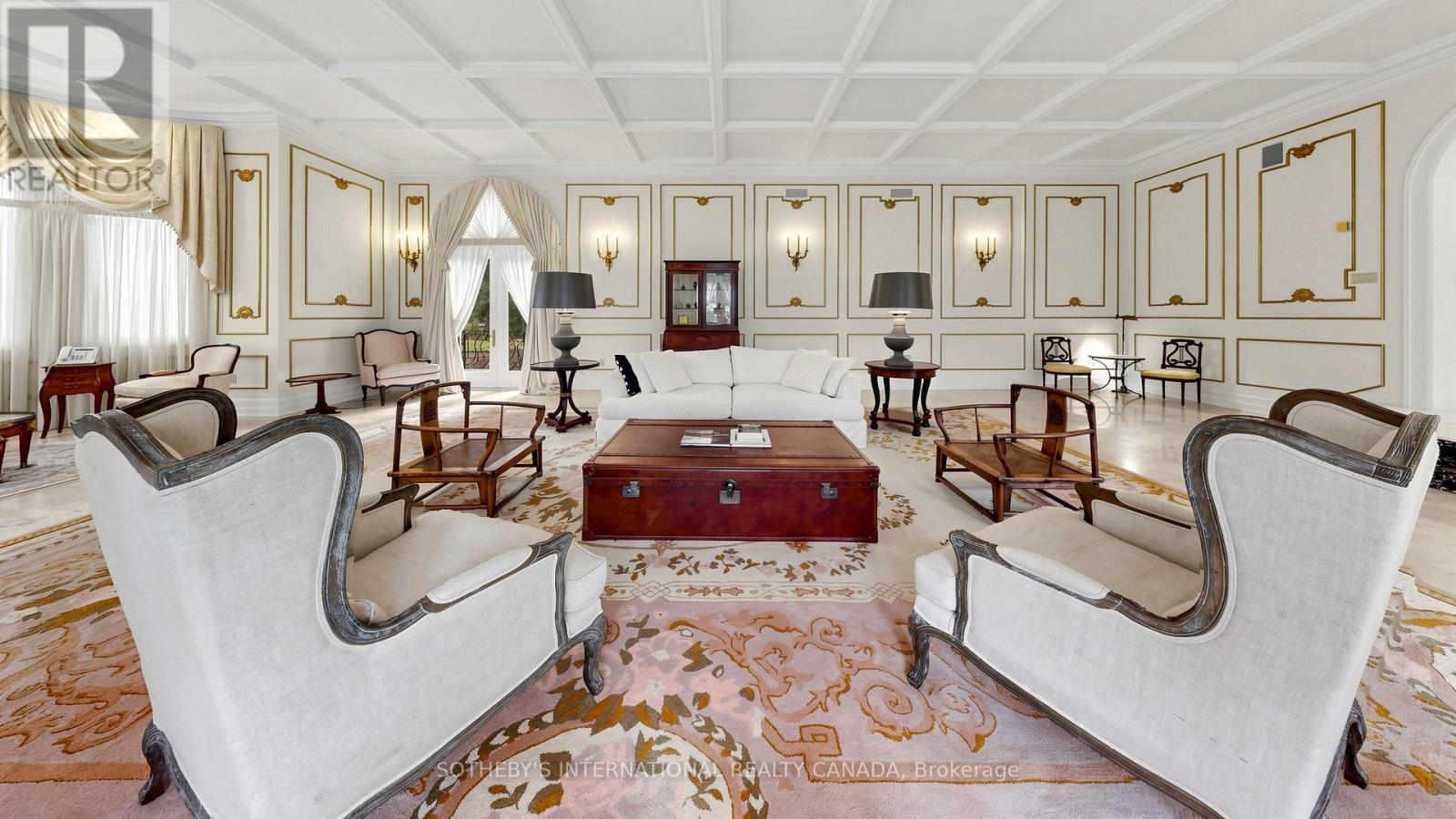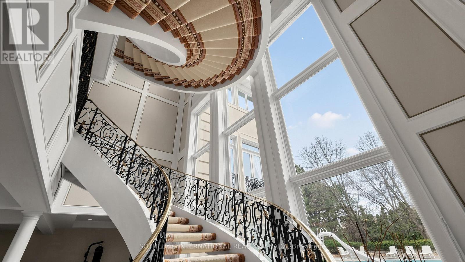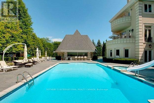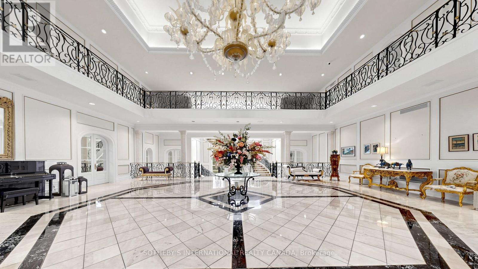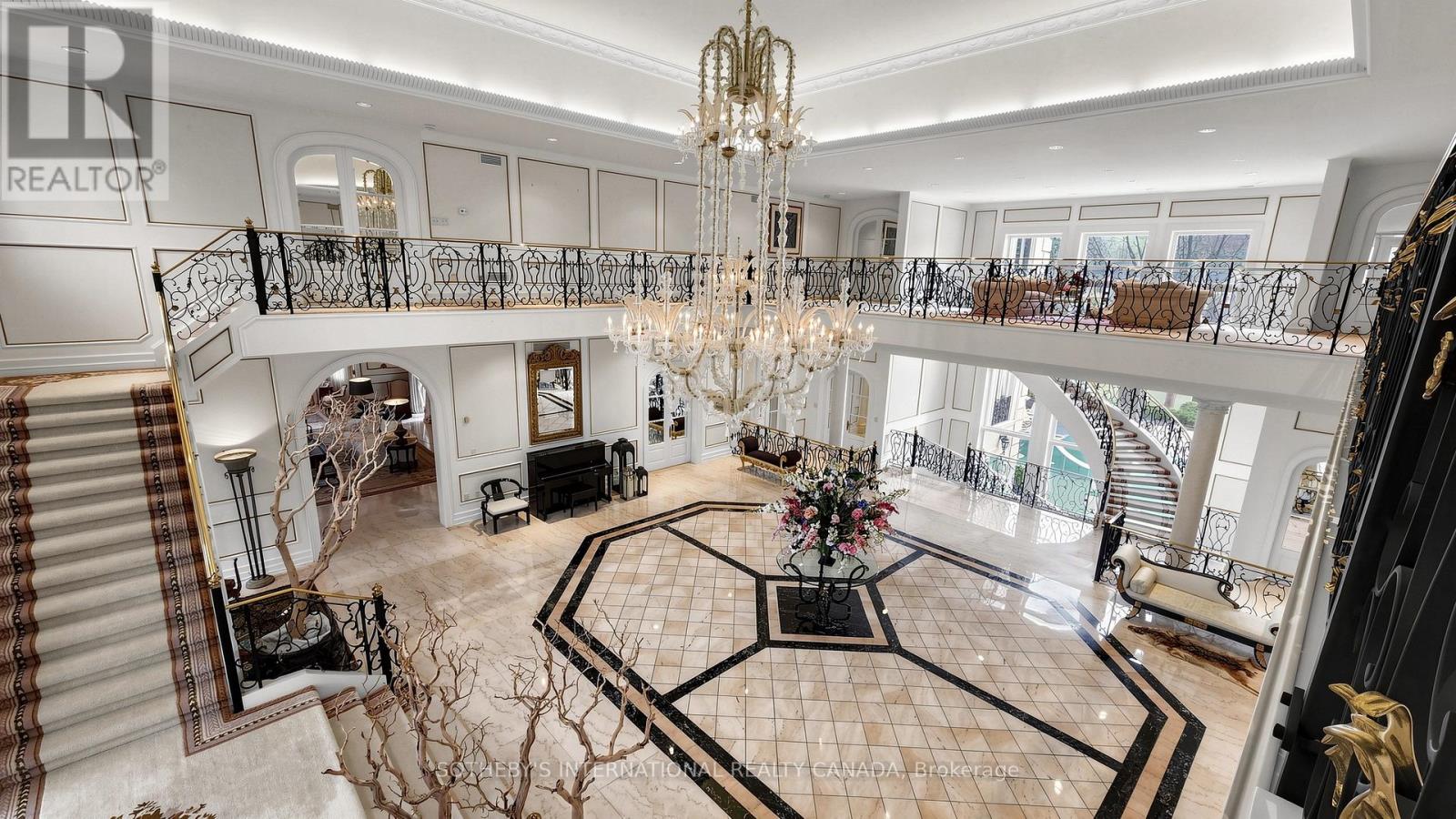 52 Post Rd stands as one of the most distinguished European Neoclassical architectural masterpieces in Bridle Path, Canada's most prestigious residential enclave. Spanning over 25,000 SF, this gated estate is widely regarded as a "Modern Grand Mansion'' of remarkable scale and presence. It seamlessly blends classical symmetry with refined contemporary elegance. Grand, high-arched doorways, intricately patterned marble floors and millwork, sweeping staircases with ornate wrought-iron railings, and monumental architectural proportions establish enduring sophistication and a regal arrival experience. Evoking a Versailles-inspired grandeur, the interiors showcase 14' and 23' soaring ceilings, dramatic stair halls and windows, and dazzling chandeliers that cast a warm, luminous glow throughout. Above-grade Appx 15,000 SF/Main + 2500SF/Coach, incl an unparalleled 300-guest ballroom; 5 +2 generously appointed bedrooms, 13 bathrooms, 3 kitchens. Plus an Appx 7,500 SF lower level thoughtfully designed for comprehensive leisure and entertaining. Featuring the wellness spa, sauna and hot tub, fitness centre, wine cellar and an extensive billiard room hosting multiple games. A tunnel-connected coachhouse offers an self-contained apt, and a 5-car-garage. Sculptural 3-dimensional walls gracefully wrap around a private courtyard, creating a striking focal point. Dramatic 3-storey floor-to-ceiling windows frame serene garden and pool views, cultivating intimate dialogue b/t interior and nature. Resort-inspired backyard featuring an outdoor pool with pool-house, a private tennis court, and a children's playground along expansive lawn and tree-lined tranquil pathway. Set among an extraordinary collection of luxury estates in the Bridle Path, this exceptional location is surrounded by elite public and private schools, renowned Granite Club and Sunnybrook Health Centre. A rare offering defined by prestige, privacy, and elevated lifestyle in the heart of the City.