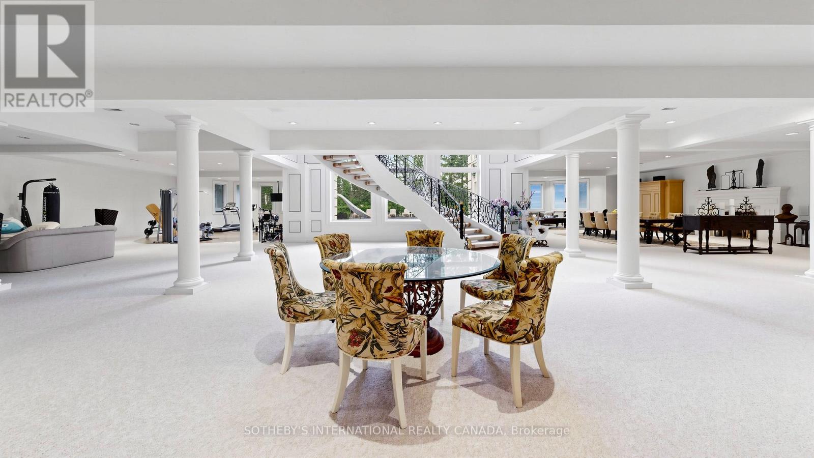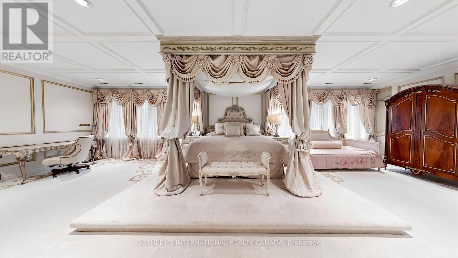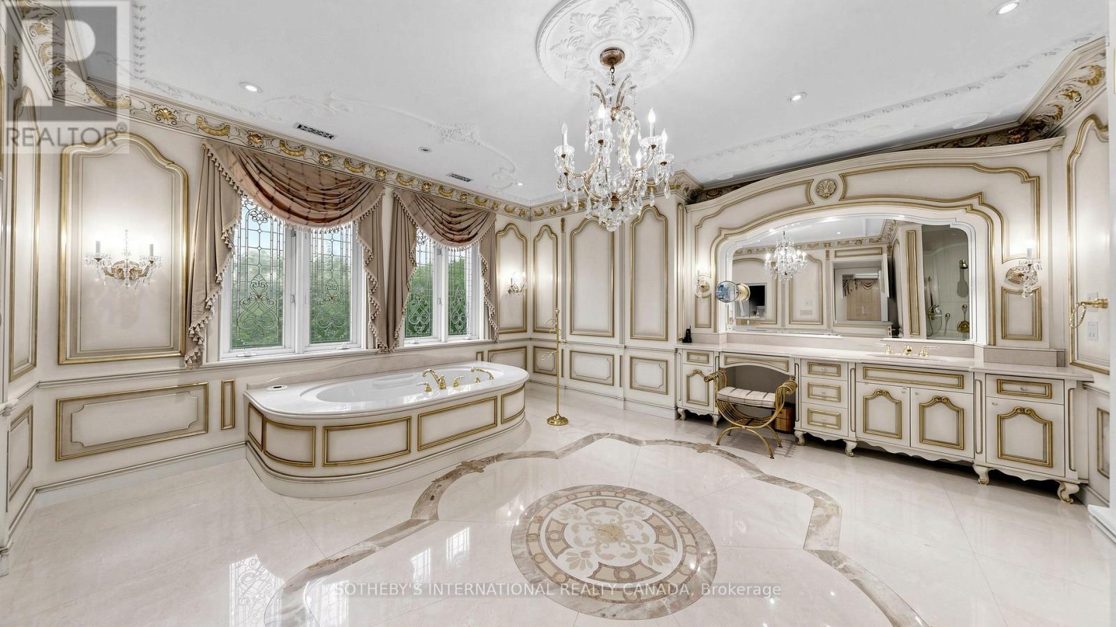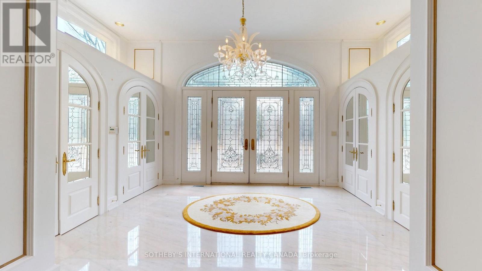 52 Post Rd stands as one of the most distinguished European Neoclassical architectural masterpieces in Bridle Path, Canada's most prestigious residential enclave. Spanning over 25,000 SF, this gated estate is widely regarded as a "Modern Grand Mansion'' of remarkable scale and presence. It seamlessly blends classical symmetry with refined contemporary elegance. Grand, high-arched doorways, intricately patterned marble floors and millwork, sweeping staircases with ornate wrought-iron railings, and monumental architectural proportions establish enduring sophistication and a regal arrival experience. Evoking a Versailles-inspired grandeur, the interiors showcase 14' and 23' soaring ceilings, dramatic stair halls and windows, and dazzling chandeliers that cast a warm, luminous glow throughout. Above-grade Appx 15,000 SF/Main + 2500SF/Coach, incl an unparalleled 300-guest ballroom; 5 +2 generously appointed bedrooms, 13 bathrooms, 3 kitchens. Plus an Appx 7,500 SF lower level thoughtfully designed for comprehensive leisure and entertaining. Featuring the wellness spa, sauna and hot tub, fitness centre, wine cellar and an extensive billiard room hosting multiple games. A tunnel-connected coachhouse offers an self-contained apt, and a 5-car-garage. Sculptural 3-dimensional walls gracefully wrap around a private courtyard, creating a striking focal point. Dramatic 3-storey floor-to-ceiling windows frame serene garden and pool views, cultivating intimate dialogue b/t interior and nature. Resort-inspired backyard featuring an outdoor pool with pool-house, a private tennis court, and a children's playground along expansive lawn and tree-lined tranquil pathway. Set among an extraordinary collection of luxury estates in the Bridle Path, this exceptional location is surrounded by elite public and private schools, renowned Granite Club and Sunnybrook Health Centre. A rare offering defined by prestige, privacy, and elevated lifestyle in the heart of the City.