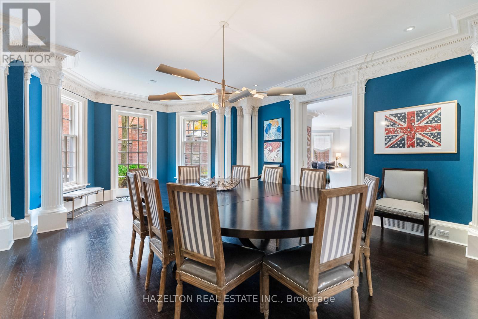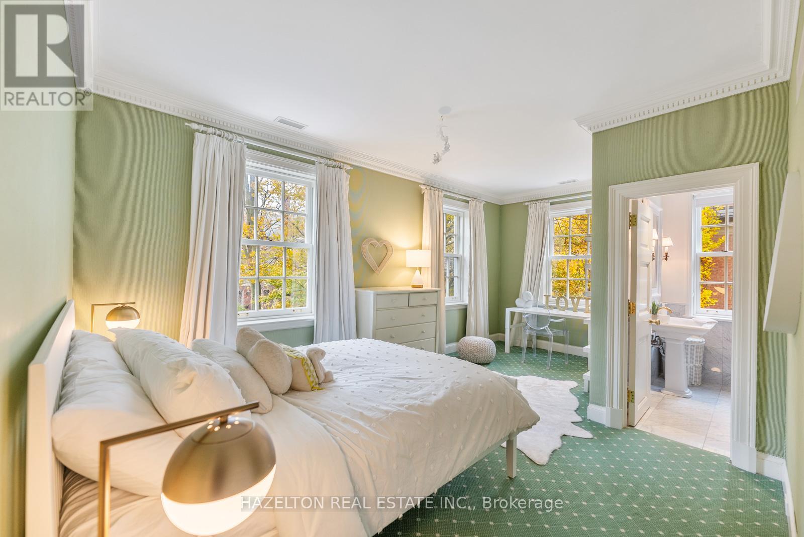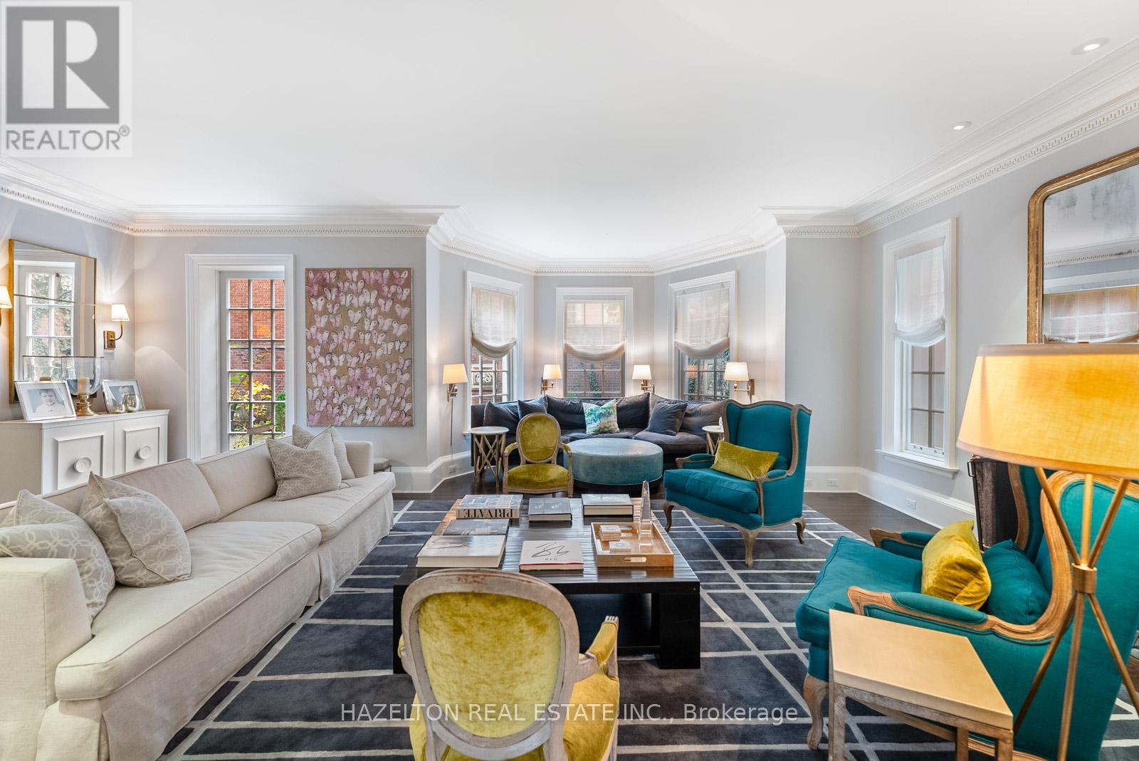 This majestic Neo-Georgian home sits proudly on the best block in all of the coveted south west Rosedale. This serene & peaceful pocket is ironically steps to all the fabulous shops & restaurants on Yonge St. Your children can conveniently walk to Branksome & York school. The York Club & Toronto Lawn are also just minutes away. The joy & convenience that come with living in this coveted enclave cannot be overstated. 52 Rosedale Rd. transports you to the earliest days in Rosedale, where the grand mansions with their elegantly proportioned rooms & tall ceilings were home to Toronto's founders. From the beautiful chef's kitchen w/cozy eat in area, to the grand dining area, one can host extravagant dinner parties, the oversized living area is the perfect backdrop for unwinding day to day, & hosting fabulous cocktail parties. All of these impeccable spaces overlook the superb gardens that sit peacefully behind the tall garden wall, ensuring tranquility & privacy. More than meets the eye, deceptively large rear garden offers an abundance of space for outdoor enjoyment including a plunge pool, if so desired. The large sunken den area with tall & deep coffered ceilings is an absolute delight. The 2nd floor houses 2 accessory bedrooms, each w/ensuite baths & the primary bedroom sanctuary. This expansive space boasts his & hers closets & bathrooms & a private office that provides a quiet workspace. The 3rd floor houses 2 additional bedrooms & an oversized room perfect for a home gym or recreational space for children. Walk out to your private sun deck, tan & enjoy breathtaking views of the Toronto skyline. The lower level boasts great ceiling height throughout, the large rec area is the perfect space for kids of all ages. 52 Rosedale Rd. offers best in class parking, with a full 2 car garage with direct access to the home, 2 additional spaces in front of the garage & a stately circular drive that can easily carry 3 more cars. (id:65552)