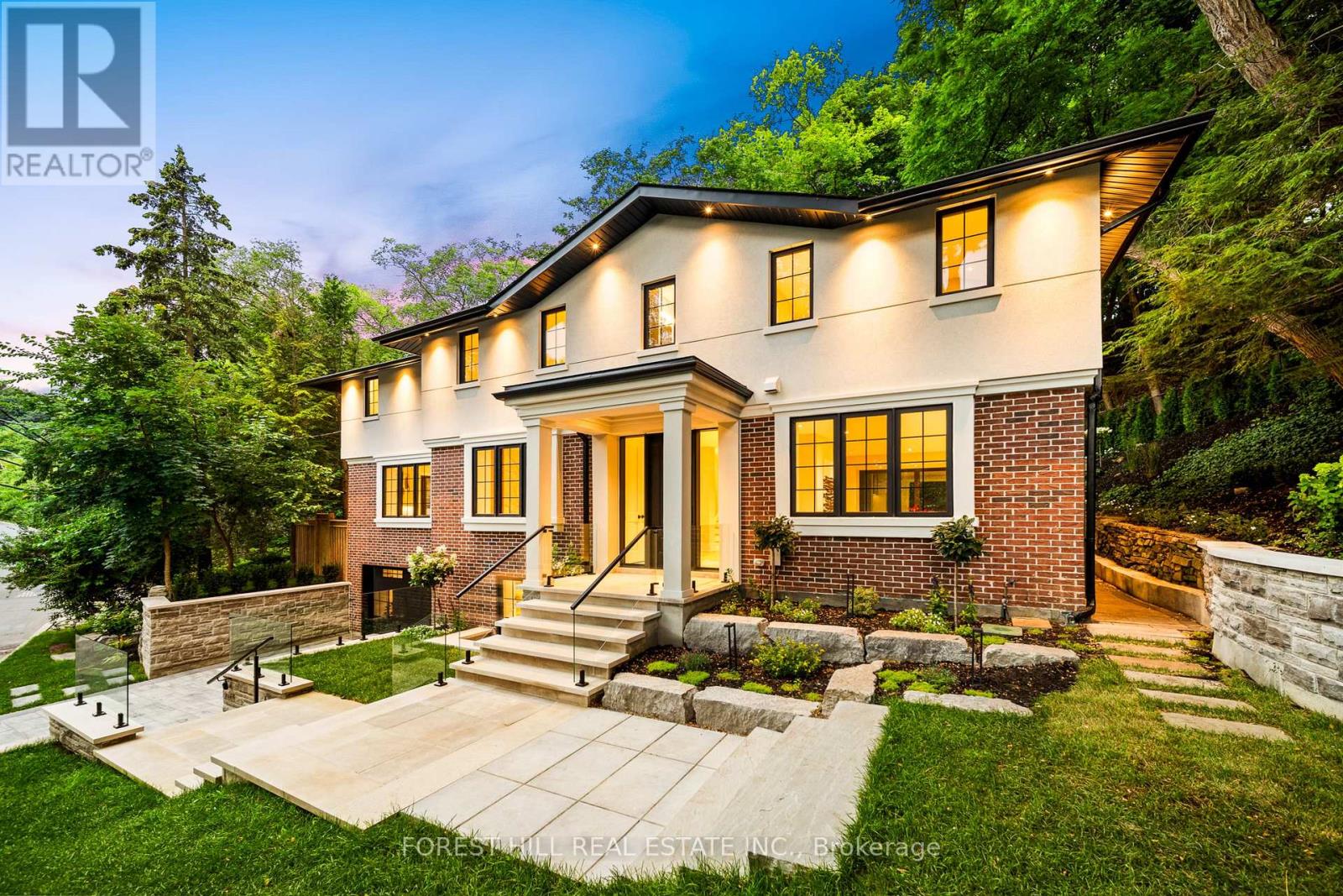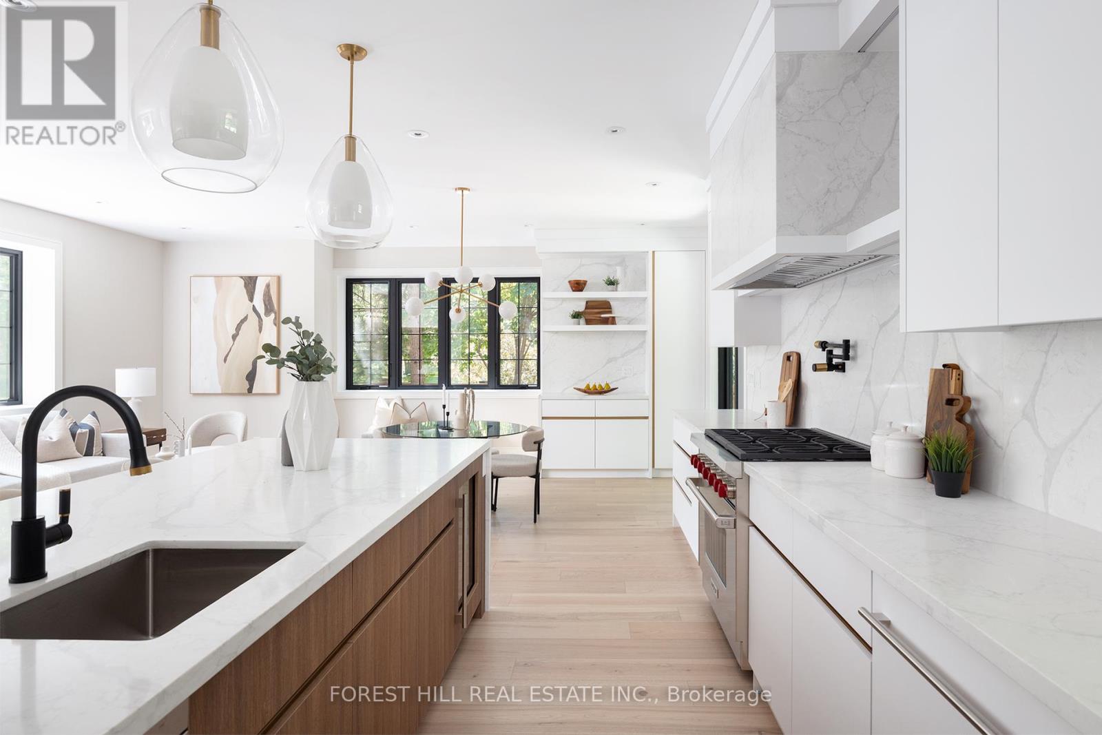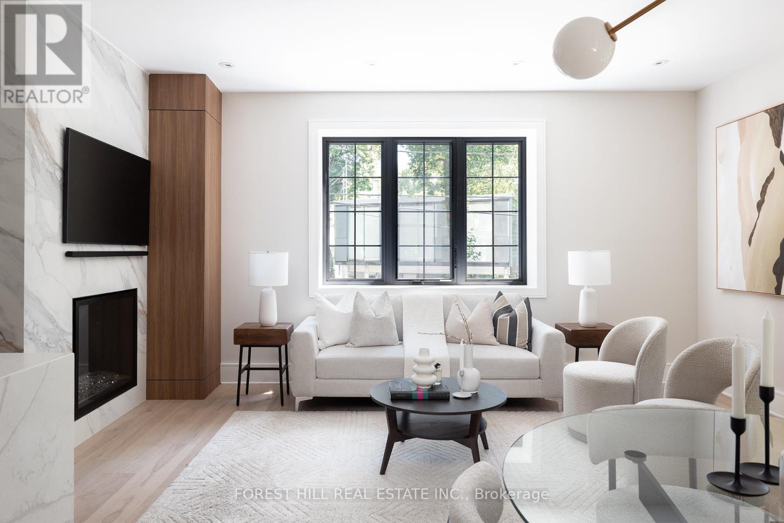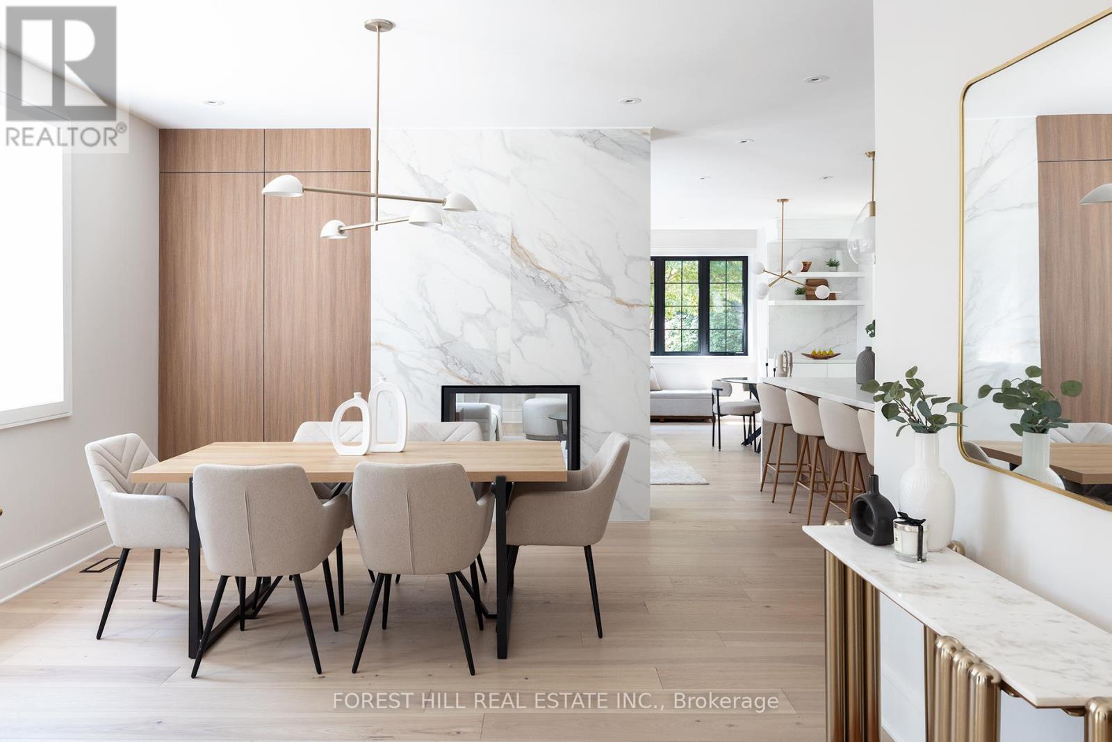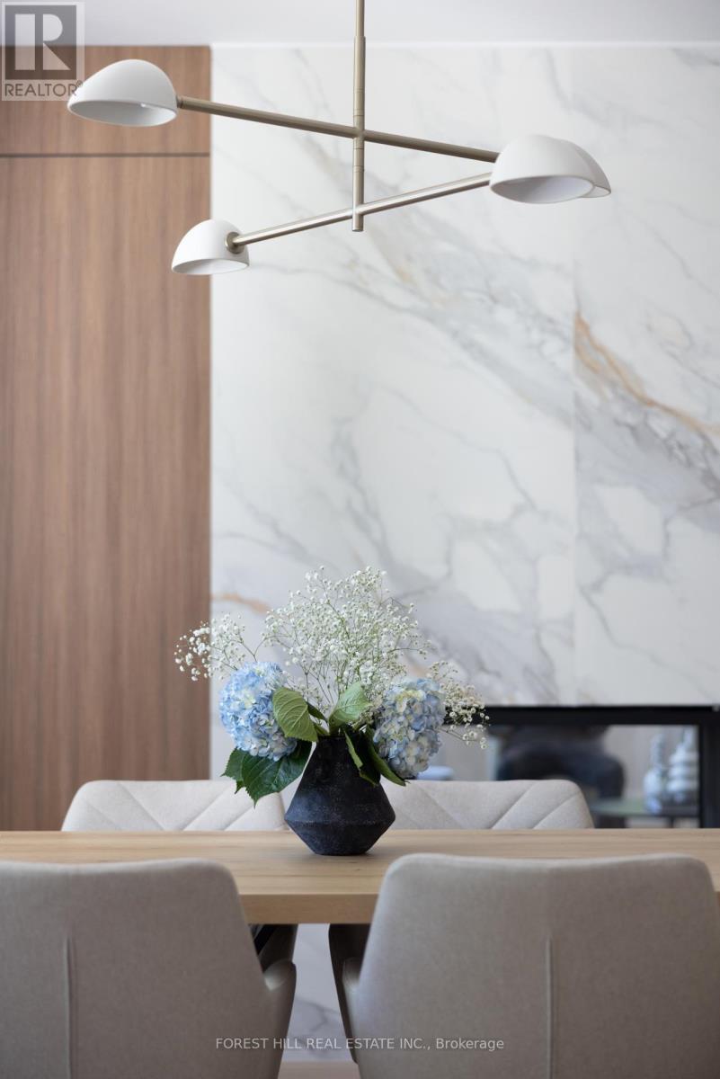 Set on one of North Rosedale's most established, tree-lined streets, this home is fully finished, meticulously redesigned, and nearly impossible to replicate within a heritage-protected neighbourhood where complete transformations of this calibre are exceptionally rare. With its 128-foot frontage, the property commands an impressive street presence and an estate-like sense of scale. Natural light floods the main level, where the principal rooms overlook a tranquil, green backdrop. The open-concept kitchen and family area connect seamlessly to a private, ravine-like outdoor retreat, perfect for families who travel often or value low-maintenance living. Chefs kitchen with Sub-Zero refrigeration, a Wolf six-burner gas range and microwave drawer, Miele integrated dishwasher, and quartz waterfall countertops anchored by a double-sided porcelain fireplace. Upstairs, four spacious bedrooms offer privacy and flexibility. The primary suite is tucked away, featuring a generous walk-in closet and a spa-inspired en-suite. A secondary suite with its own balcony provides comfort for guests or extended family, while two additional bedrooms share a well-appointed Jack-and-Jill bath. Designer lighting from Union Lighting and wide-plank engineered hardwood flooring add warmth and refinement throughout. The bright, above-grade lower level extends everyday living with a spacious laundry room featuring Electrolux appliances, direct garage access, and a versatile open layout ideal for a home gym, media lounge, or office. Heated driveway and radiant in-floor heating to the NTI high-efficiency boiler, Siemens safety system, and front and rear irrigation for effortless upkeep. A short walk to Chorley Park, Summerhill Market, and the Evergreen Brick Works, and within close proximity to Toronto's top public and private schools, this is a rare turnkey residence that blends Rosedale charm with uncompromising modern luxury. (id:65552)