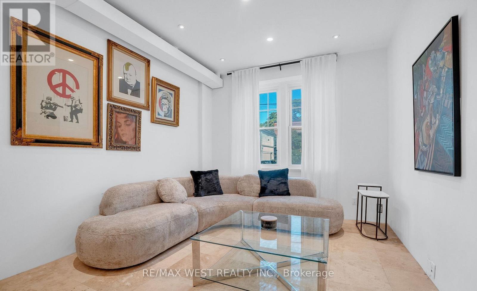A Rare Opportunity in the Heart of the Ossington District. Step inside this 4,500+ sq. ft. architectural treasure, where historic character meets modern luxury. Built in 1933 as a community centre, 53 Argyle Street has been reimagined into a one-of-a-kind residence with commercial + residential zoning - ideal for live/work flexibility or a creative entrepreneurial vision. Located in the Soho of Toronto - Vogue's pick as the World's 2nd Hippest District - you're just steps from Trinity Bellwoods Park, Queen West, Ossington's vibrant café culture, art galleries, and award-winning restaurants. The main floor impresses with open-concept living and dining, a chef's kitchen with granite counters and extra-large fridge, sun-filled atrium and office space. Heated floors and skylights add comfort and light throughout. The second floor features a serene primary suite with walk-in closet, ensuite spa (Roman bath, bidet, sauna), plus three additional bedrooms and a luxe five-piece bath. Upstairs, discover a third-floor retreat - two bedrooms linked by a secret passage that kids will love it, and a copper soaking tub. The finished basement offers 8'5" ceilings, a second kitchen, bathroom, and elevator access - perfect for an artist's studio, guest suite, or private office. Step outside to a private courtyard oasis that you can turn into an entertainer's dream. Additional features include marble and hardwood finishes, central air, alarm system, and a 12,000-watt generator. This property is more than a home - it's a lifestyle, a statement, and an investment in Toronto's most coveted urban playground. Art and furniture available for purchase. (id:65552)