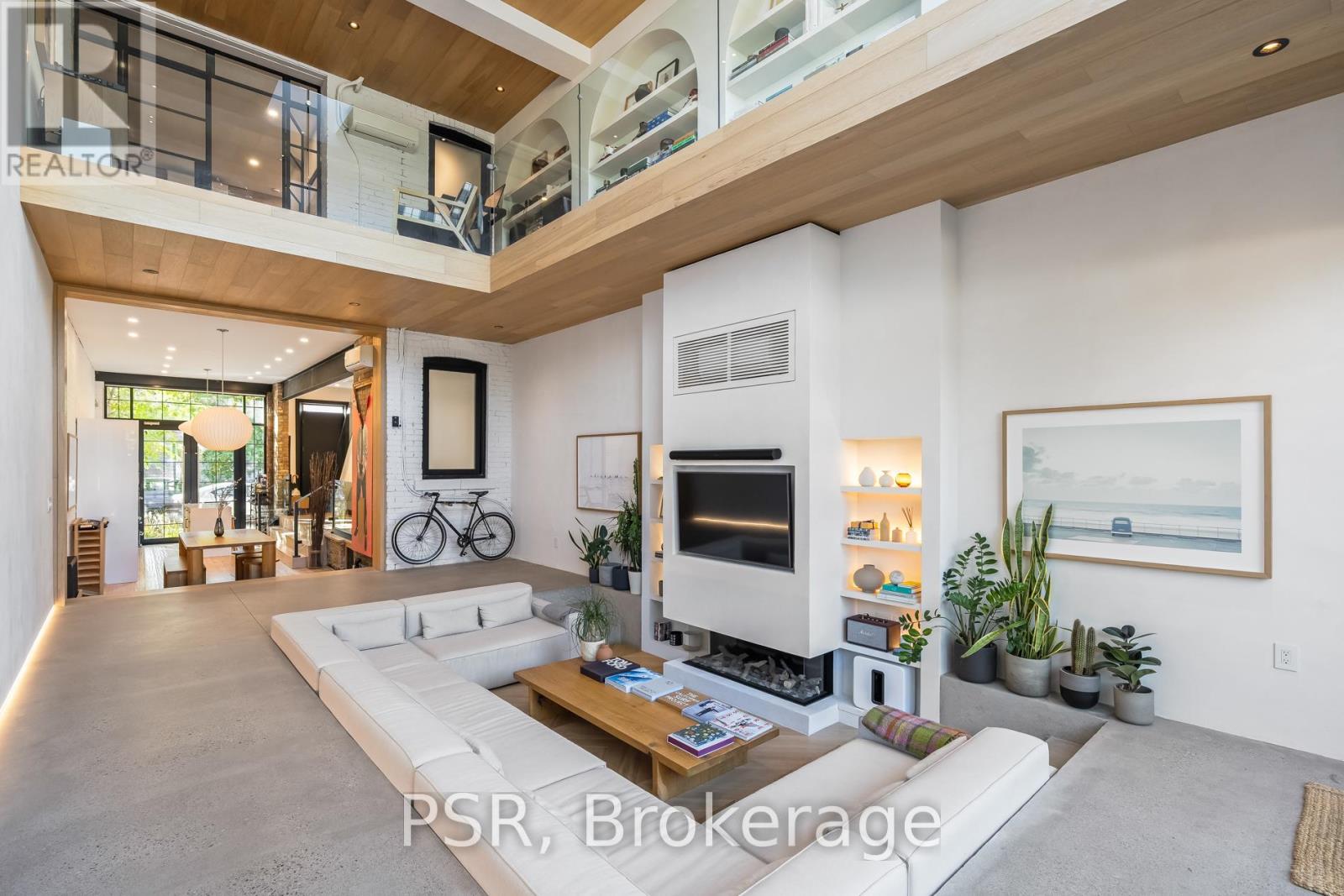 Discover an extraordinary architectural residence on Palmerston Avenue, one of Trinity Bellwoods' most sought-after streets. With history dating back to the 1860s, the home has gone through an extensive transformation, including a remarkable custom addition crafted by Whitaker Construction, a firm widely regarded as one of the city's leading builders, elevating it into a true design landmark. Featured earlier this year in the Toronto Star in an article titled "Is this the coolest living room in Toronto?" the answer is, yes. The main living space showcases striking 20-foot ceilings anchored by a sprawling sunken lounge, designed with a clean aesthetic that blends warmth with modern design. With east and west exposure, the combination of floor-to-ceiling glass and two large skylights allows natural light to pour through the entire home. The property features meticulous millwork in natural oak, micro-cement walls, heated concrete floors, and recessed lighting that together create a sense of calm sophistication. A beautifully designed mezzanine level, part of the custom addition overlooks the main living space and features a serene library with arched custom shelving, creating an inspiring, light-filled vantage point with views of the city skyline. This thoughtfully planned 3-bedroom residence includes an entire third level dedicated to the primary retreat, featuring a spa-like ensuite that extends to an expansive private rooftop terrace, partially covered and perfectly positioned for Toronto skyline and CN Tower views. An oversized double-sided 1.5 car garage provides exceptional functionality, accommodating two smaller vehicles or offering ample additional space. The lower level includes a washroom and a dedicated area ideal for storage. Celebrating craftsmanship and innovation at every turn, every element has been curated with exceptional intention, resulting in a home that is both artful and livable, an inspired piece of architecture rarely found in the city. (id:65552)