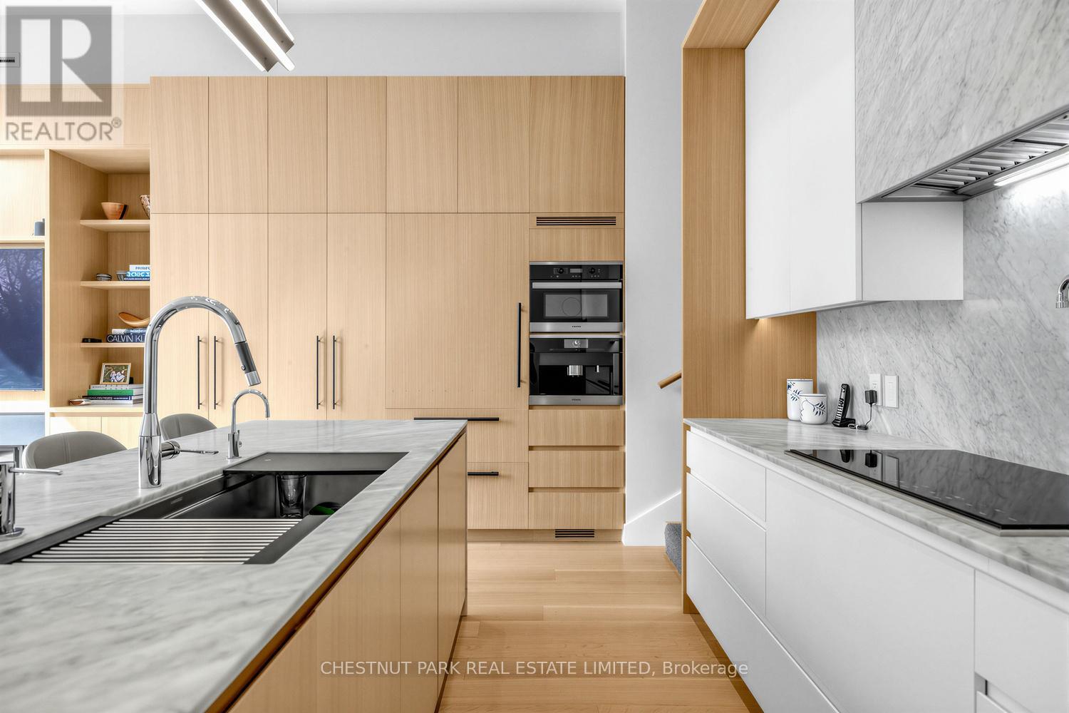 A striking architect-designed residence rebuilt to the highest standards in 2020, blending modern sophistication with exceptional craftsmanship. Completed in 2020, 55 Farnham was taken back to the studs and reconstructed by WPML with architecture by Set less Architecture, interiors by Tanya Bonus, and landscaping by Earth Inc. Only the original side walls remain. The main floor is thoughtfully designed for both elegant entertaining and everyday living. A welcoming foyer with exceptional built-in storage for coats and shoes offers rare practicality. The living room has an elegant fireplace and opens to the grand dining room. At the rear of the home, the space opens to a stunning chef's kitchen featuring Miele, Wolf & Sub-Zero appliances, and a statement Galley workstation sink, combined with a sun-filled family room. The second level hosts three generously proportioned bedrooms, complemented by a thoughtfully designed laundry room with extensive hanging and drying capacity, and two elegantly appointed bathrooms. The third level is dedicated to an exceptional primary retreat, complete with a south-facing IPE-clad balcony, a spacious walk-in closet, and a luxurious, spa-inspired suite. Exceptional features include two-zone HVAC, radiant-heated basement floors, heated entry and baths, and a heated driveway and walkways. Smart home integration controls Lutron lighting, audio, blinds, and security. Finished with Unik Funkis windows and doors, Petersen Tegl brick, zinc roof, Hollace Cluny lighting, two gas fireplaces, IPE decks, and a newly landscaped (2025) backyard with a new patio and AstroTurf. Front pad parking fee $748.35 (2026). This home is not to be missed! (id:65552)