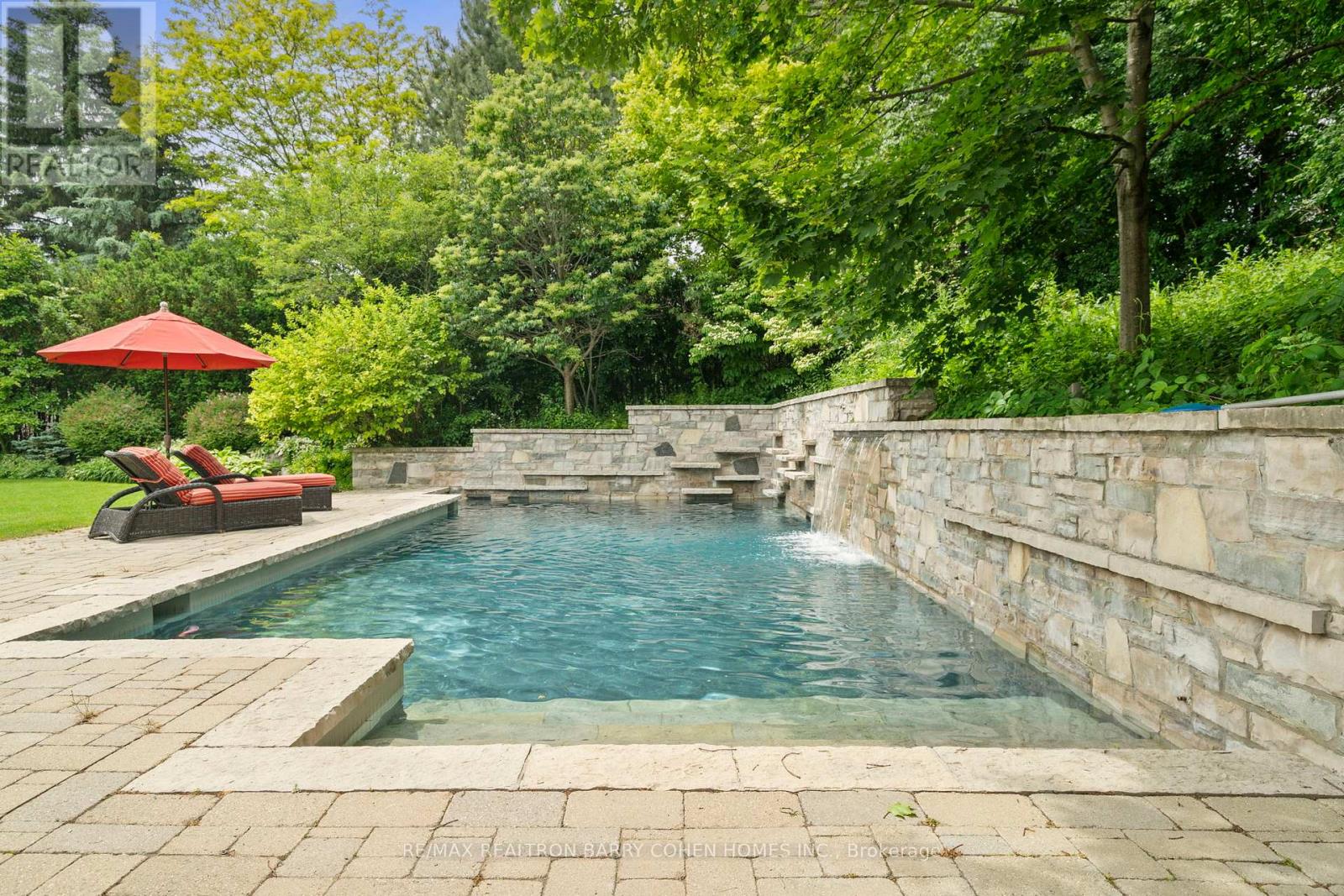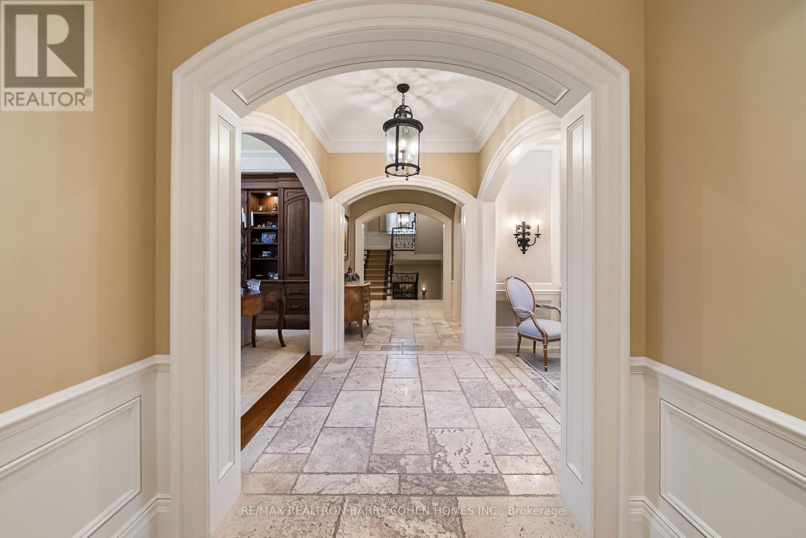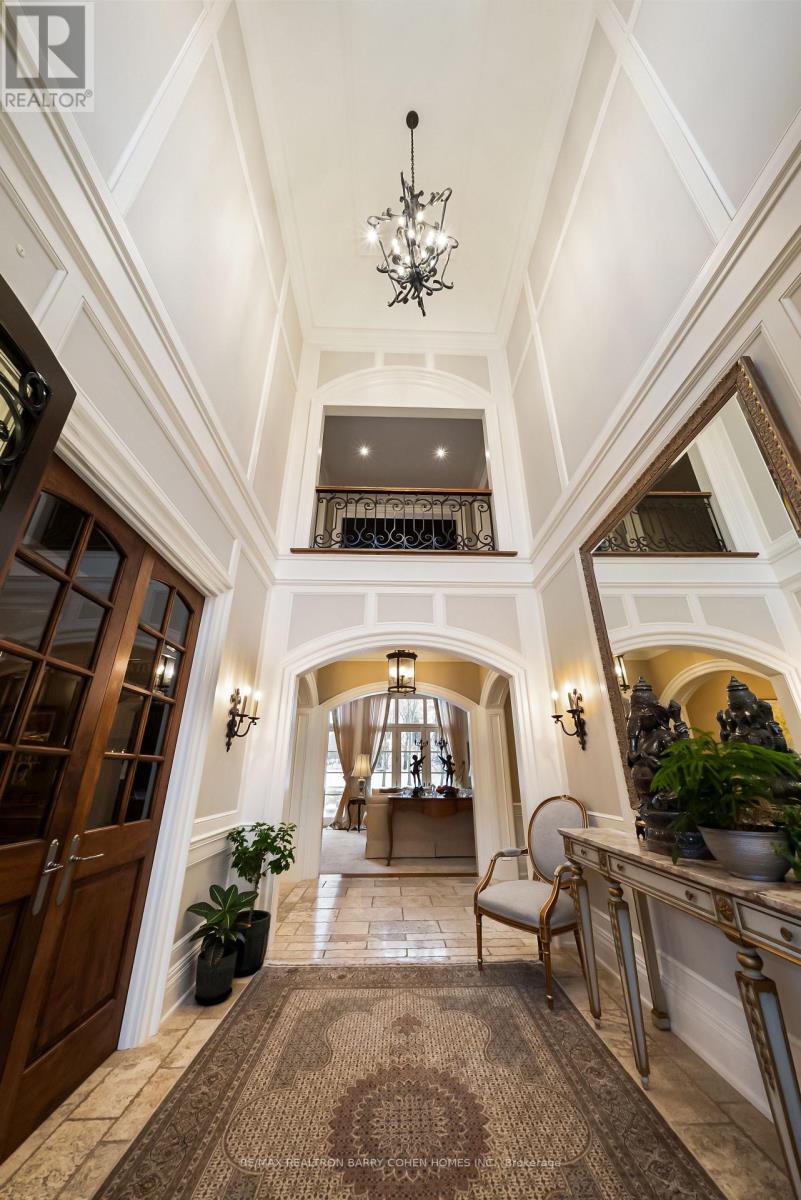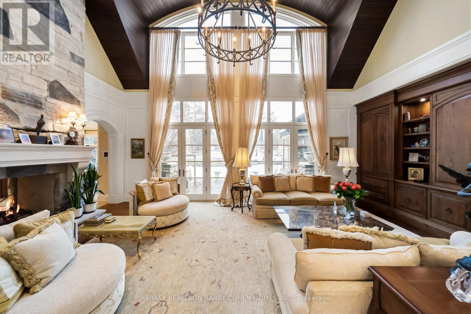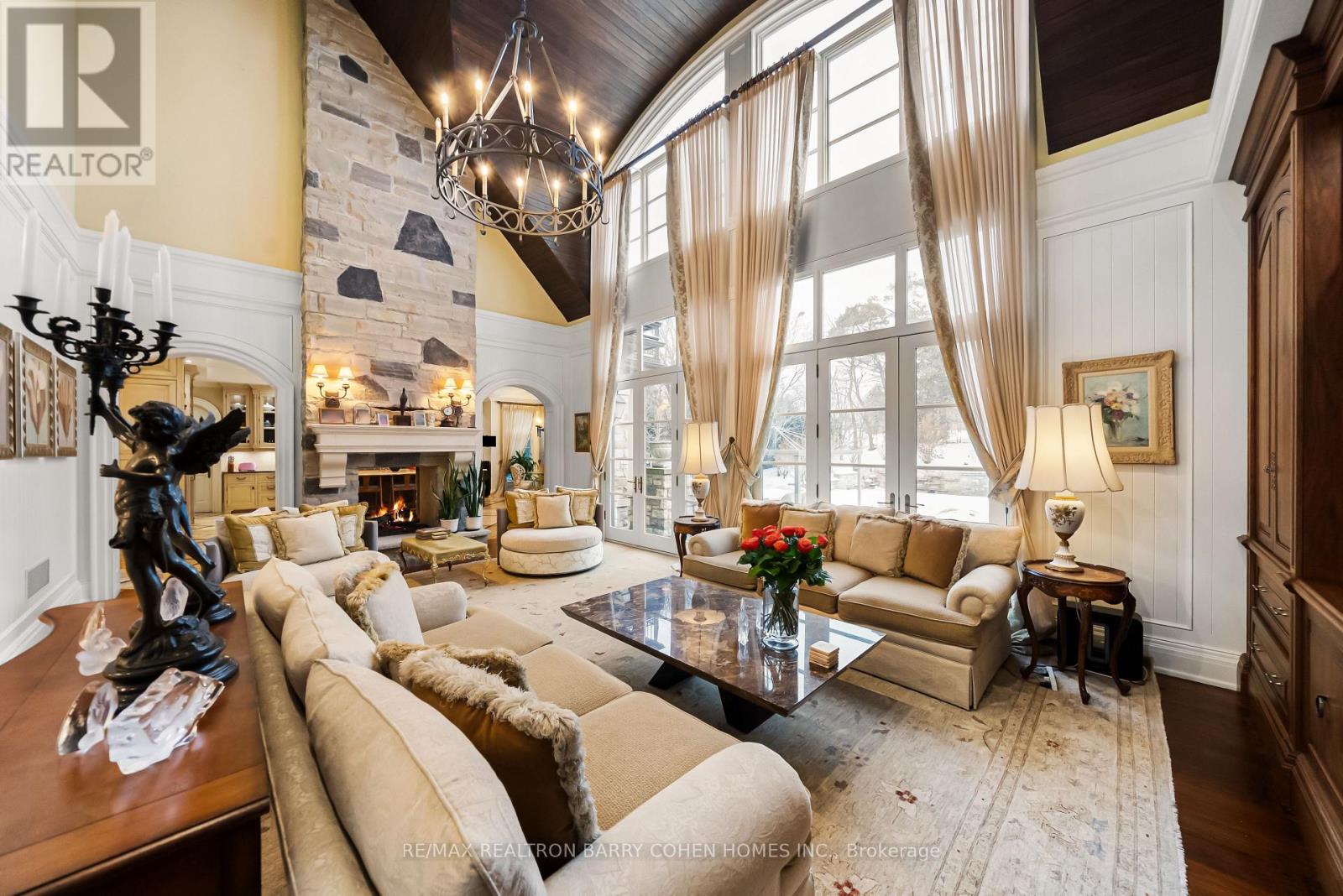 Landmark Estate Backing Onto The Prestigious Thornhill Golf And Nestled On Its Expansive South-Facing Lot. Towering Mature Trees For Ample Privacy. A Masterclass In Timeless Elegance And Craftsmanship With Striking Limestone Exterior & Cedar Shake Roof. Opens To A Grand Foyer With Majestic Cathedral Ceiling Soaring to a Breathtaking Height of Over 18 Feet, Custom Wall Paneling, Heated Natural Limestone Floors And Crown Molding. The Main Level Offers 11' Ceilings, Formal Living & Dining Rooms, Private Office Complete With Floor To Ceiling Wood Panelling and Gas Fireplace, Chef's Gourmet Kitchen With Custom Cabinetry, Natural Stone Countertops Complete in Leathered Finish, Wolf Appliances, Limestone Floors With Elegant Marble Inlays, Walk-in Pantry, Breakfast Area and Walk-out to Rear Gardens. The Family Room Impresses With Grand Atrium Ceilings, Flooded W/ Natural Light, Custom Built-Ins, And A Dual Fireplace. Heated Floors Enhance The Side Entrance And Powder Rooms. Unparalleled In Grandeur Primary Suite Offers Walk-Out to Terrace, Gas Fireplace, Walk-In Closet W/ Vanity Island, A Spa-Like Bath W/ Heated Marble Floors, His&Hers Vanities, Jacuzzi TubAnd Separate Water Closet. Upper Level Features Three Oversized Bedrooms, Each With Private Ensuites, Custom Closets & 2 Balconies. Walk-Out Lower Level Designed by World Renowned Lori Morris, Features 9' Ceilings,Home Theatre, Games Room, Temp. & Humidity Controlled Wine Cellar (1,500 bottles), Guest Suite, Full Spa With Sauna & Shower, Gym W/ Direct Access To The Gardens and Heated Pool. Smart Home Features Incl. Lutron Lighting, Sonos Sound System, Radiant Floor Heating. Full Snow-Melt Systems For Driveway And All Exterior Stone Surfaces. Backyard Oasis Features An Inground Heated Salt Water Pool W/ Cascading Waterfall, Hot Tub, Outdoor Bathroom/Change Room,Lush Gardens, And Resort-Style Amenities. A One-Of-A-Kind Estate With Unparalleled Blend Of Sophistication, Ultimate Privacy And Prestigious Golf Course Setting. (id:65552)