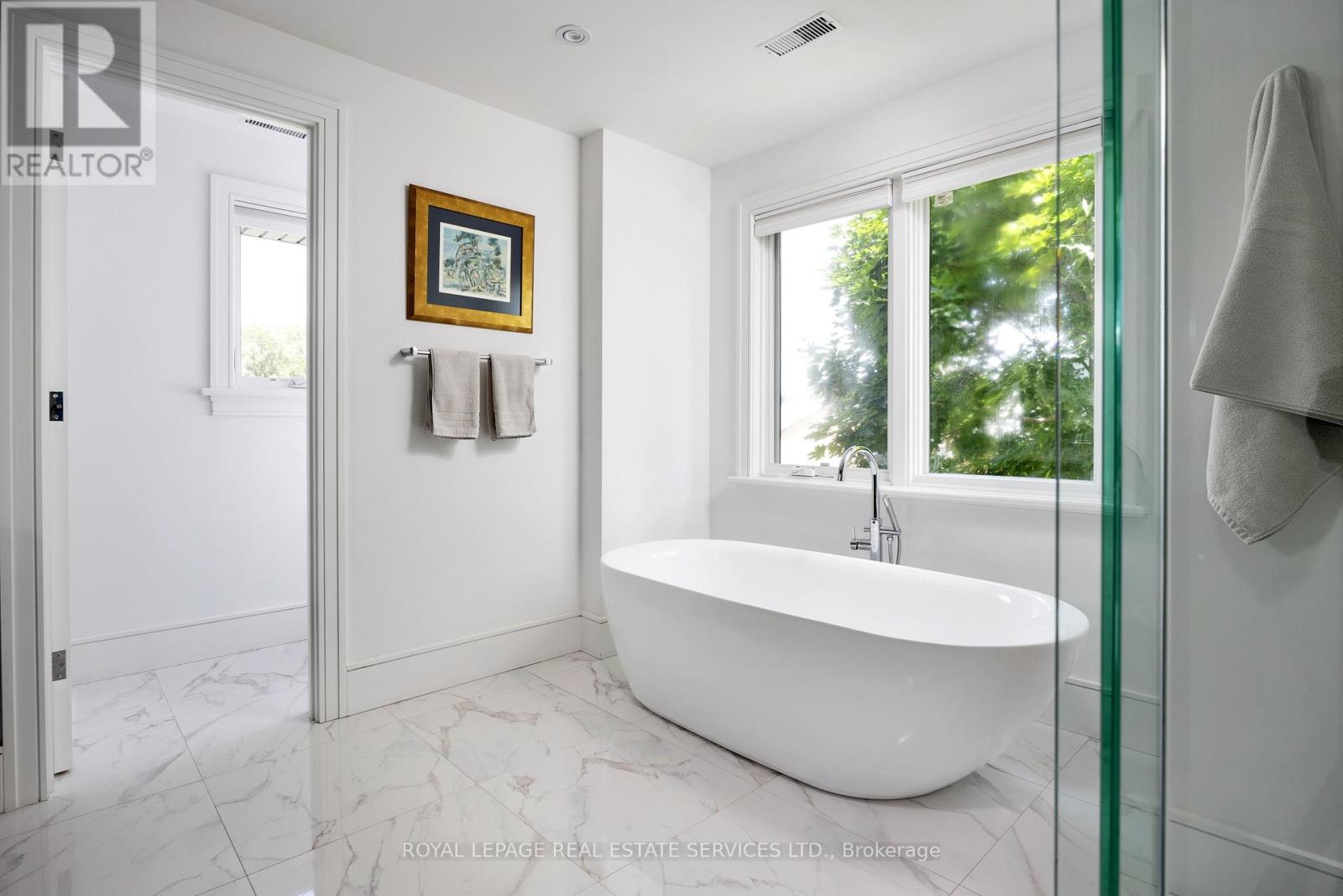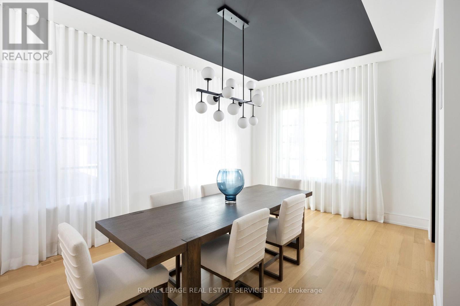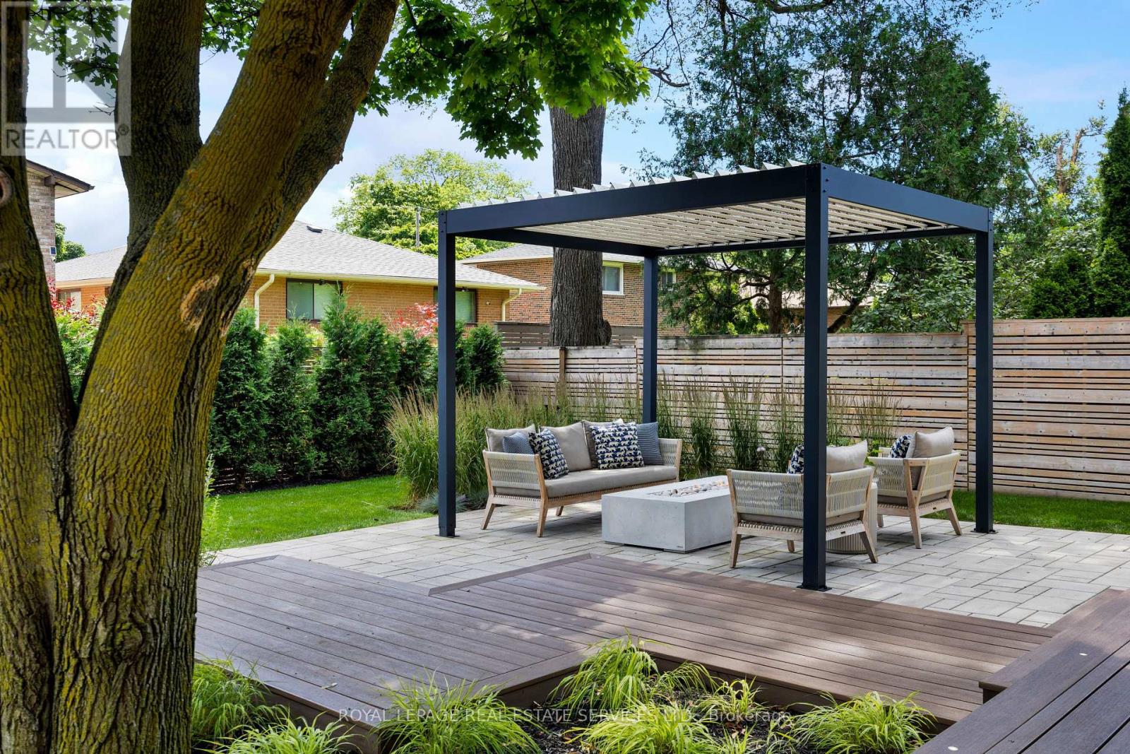 Nestled in one of West Toronto's most sought-after communities, this masterfully custom-crafted estate features 5 bedrooms, 7 bathrooms, and over 6,000 square feet of bespoke living space. As you step through the front entrance, you are welcomed by a grand foyer with seemingly endless sightlines extending through to the backyard, setting the tone for the luxurious experience that awaits. At the heart of the main level lies an incredible kitchen with custom cabinetry, premium Thermador appliances, and a family-sized island. Adjacent to the kitchen, the butler's pantry leads you to the grand dining room, perfect for entertaining. The open-plan kitchen and living area boasts a feature wall with a TV niche, linear gas fireplace, and built-in storage, creating a warm and inviting space for gatherings. Step through the rear garden doors and prepare to be enchanted by the meticulously designed backyard. This outdoor oasis offers multiple areas for al fresco dining, a relaxing retreat by the outdoor fireplace under a custom pergola, and ample space to bask in the sun amidst professionally manicured gardens. It is truly an oasis inspired by luxury hotel gardens. The master suite, located at the rear of the home, features striking vaulted ceilings, a chic 5-piece bathroom, a dressing room, a shoe closet, and a built-in vanity area. The spacious 2nd and 3rd bedrooms share an ensuite bath with a double vanity and separate water closet, while the 4th and 5th bedrooms offer private ensuites, ideal for guests or separate living quarters. The expansive lower level features an open-concept theatre and games room with a 100-inch screen and a 7.1 built-in sound system. Additionally, you'll find a spa-inspired full bathroom, bedroom or den, ample storage areas, laundry room, and a fully equipped mirrored gym/yoga studio. Discover the epitome of luxury living where every detail is designed for comfort, elegance, and style. (id:65552)