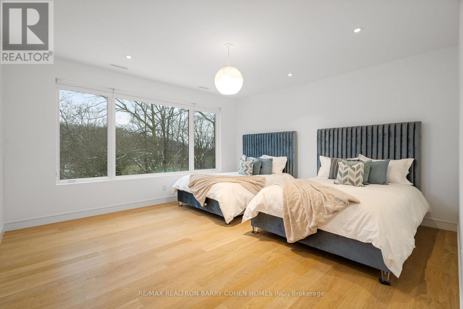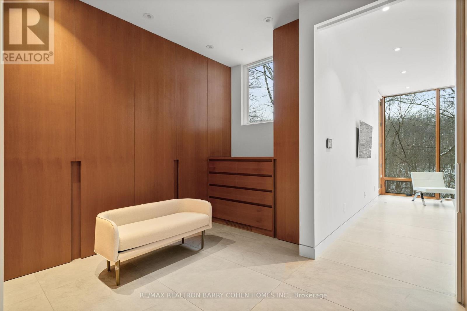 West Coast Inspired - Architecturally Significant Custom Residence. Designer Palette And Nestled At Cul-De-Sacs End. In Perfect Harmony Of Sleek Design And Timeless Modern Elegance. Picturesque Natural Treed Setting Overlooking Private Ravine Views. This Home Boasts An Open-Concept Floor Plan, Soaring Ceilings, Floor-To-Ceiling Windows And Cascading Natural Light. Designed For Both Luxury, Functionality & Family Entertainment Being Amenity Rich With An Exciting Interior Slide From Main Floor To Lower Level (Not Just For Kids). The Main Living Area Is An Entertainers Dream, Featuring A Sophisticated Living Room With A Sleek Wood-Burning Fireplace And A Chefs Kitchen Outfitted With Top-Of-The-Line Appliances, Refined Finishes And Eating Area. The Spacious Dining Area Is Equally Impressive, Providing The Perfect Setting For Hosting. The Primary Suite Is A Serene Retreat, Offering Floor-To-Ceiling Windows, A Walkout To The Deck, A Spa-Like Ensuite, And A Large Walk-In Closet. Additional Bedrooms Are Generously Sized, Each Featuring Walk-In Closets And Beautifully Designed Private Ensuites Washrooms. The Expansive Lower Level Provides Exceptional Versatility, Complete With A Large Recreation Room That Opens To The Backyard And Overlooks A Scenic Ravine, Making It An Ideal Space For Both Relaxation And Entertaining. Step Outside To Discover A Serene Backyard Oasis, Backing Onto A Lush Ravine That Offers Both Privacy And Breathtaking Natural Views. This Home Seamlessly Blends Indoor And Outdoor Living. This Rare Modern Retreat Is Situated Within Exclusive Neighbourhood With Convenient Access To Top-Tier Amenities, Renowned Park, Public And Private Schools, Shops And Dining. (id:65552)