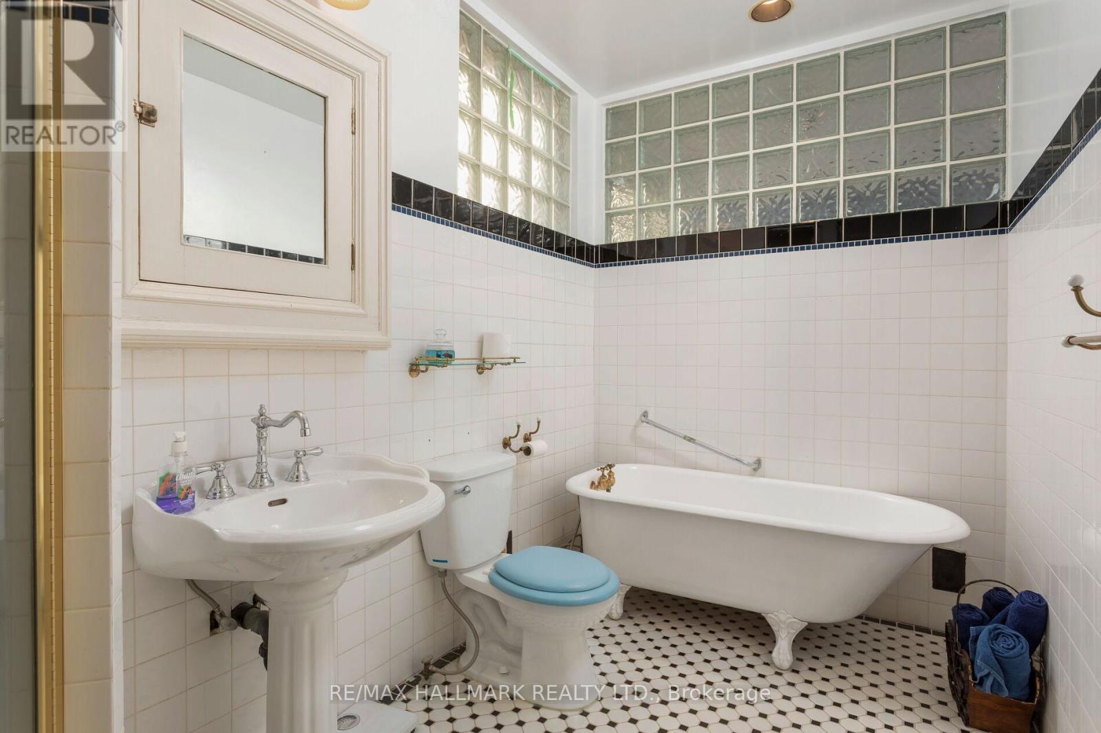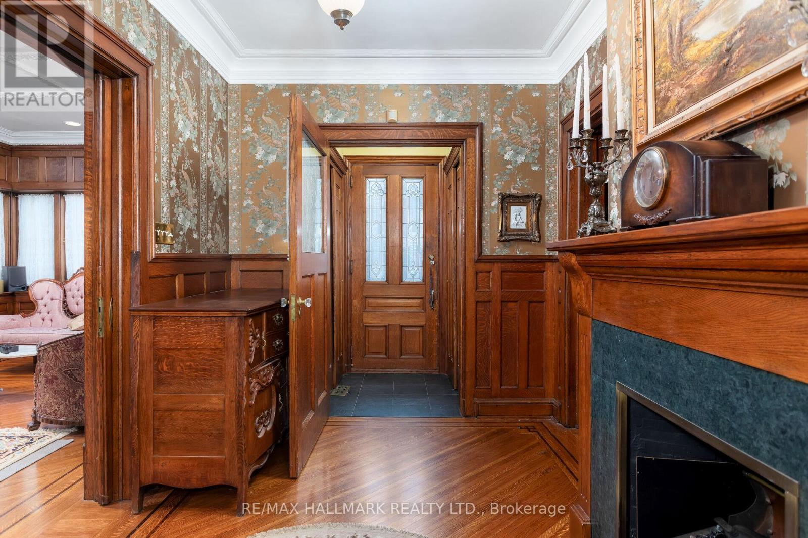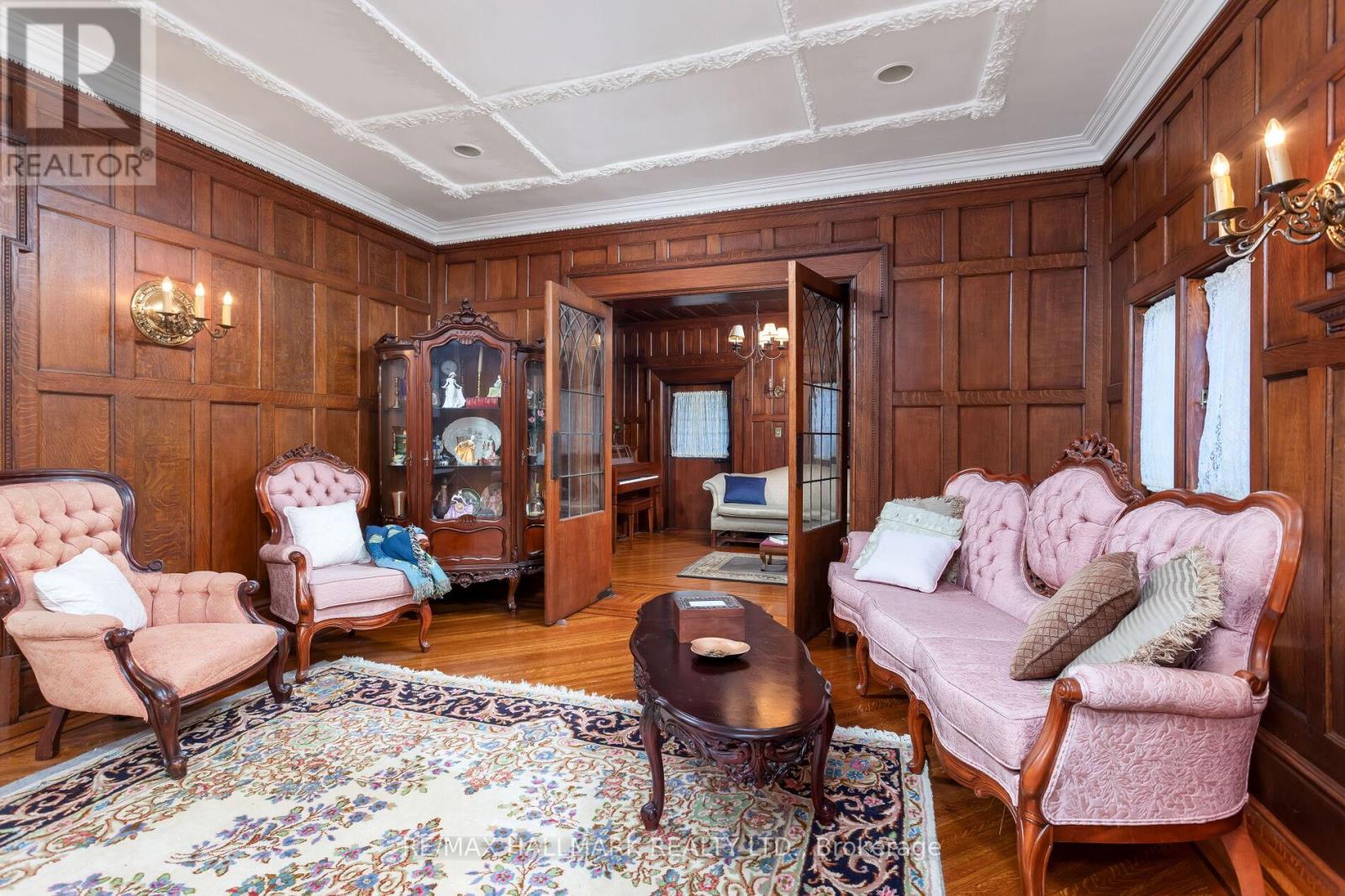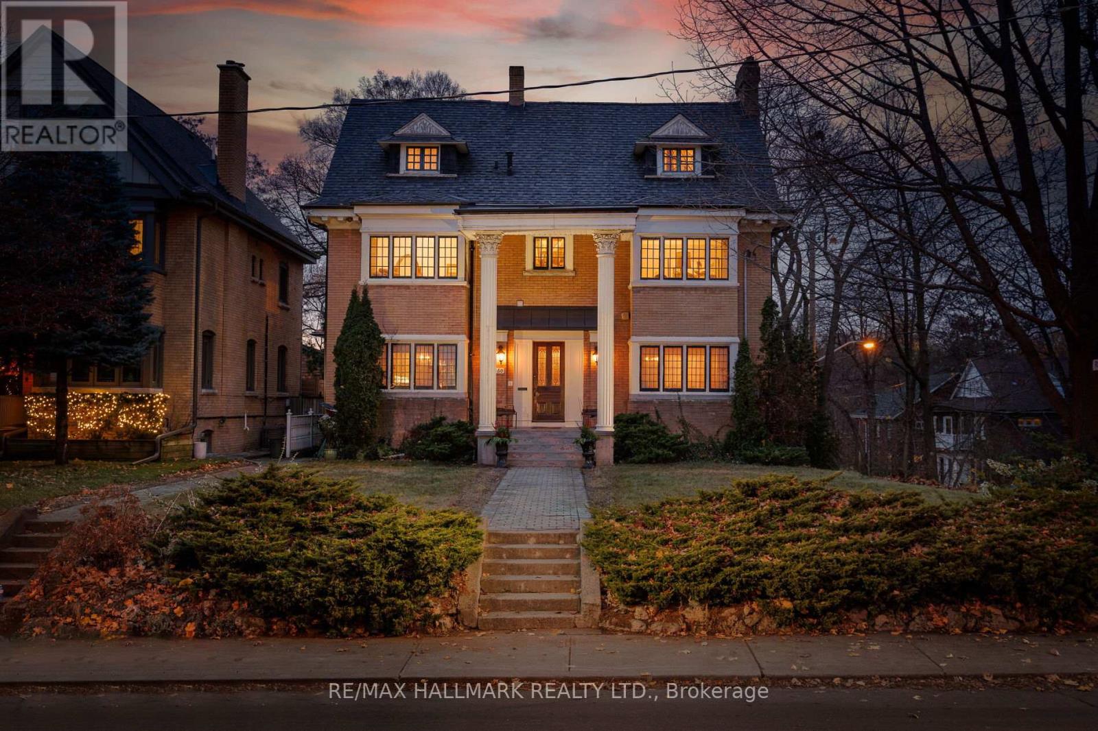 Experience Timeless Sophistication and Modern Comfort. Step into an extraordinary Georgian-inspired residence that seamlessly blends classic elegance with contemporary comfort. Rich in architectural integrity and timeless character, this stately home offers a truly unique and refined living experience. From the moment you enter, you are welcomed by a grand central staircase an architectural masterpiece that ascends gracefully to the third-floor master suite. This private master retreat is a sanctuary of calm, featuring soaring cathedral ceilings, a spa-like ensuite with a luxurious soaker tub, and a light-filled ambiance that promotes relaxation and renewal.The second level offers three generously sized bedrooms-ideal for a growing family or hosting overnight guests. A standout feature on this floor is the sun-drenched corner office, boasting panoramic west-facing views and abundant natural light. Whether you're working from home or seeking a creative haven, this inspiring space is a rare and valuable find. On the main level, entertain in grand style within the expansive living room, adorned with professionally refinished woodwork restored in Montreal-radiating warmth and timeless charm. The formal dining room, complete with a custom built-in hutch, provides the perfect setting for elegant dinner parties and cherished gatherings.The retro-chic kitchen, full of character, offers ample space for culinary pursuits, while leaded-glass French doors lead to a cozy parlour-a welcoming retreat ideal for an evening nightcap or a quiet moment with your favorite book. Outside,Mature trees and lush landscaping frame a beautifully appointed backyard-perfect for morning coffee, or relaxed evenings under the stars. Adding even greater versatility, the home includes a fully self-contained one-bedroom apartment in the basement, complete with above-grade windows/full ceiling height/sep. entrance and walk out.Great potential rental income- this space is a valuable asset! (id:65552)