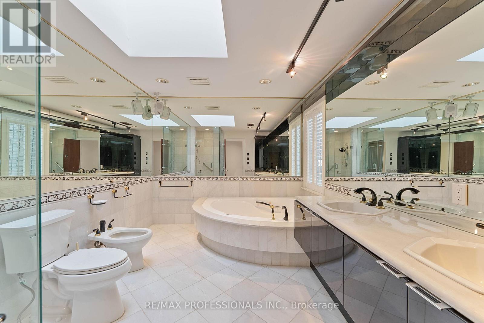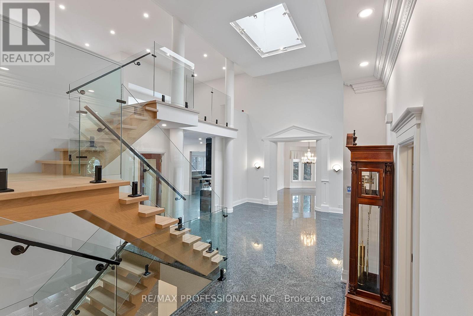 Welcome to 6A Edenbrook Hill in prestigious Lincoln Woods, Edenbridge-Humber Valley. Overlooking the 3rd hole of St. George'sGolf Club-one of Canada's most renowned courses-this European-inspired custom stone estate is idyllically situated on a mature, tree-lined lot with a cobblestone driveway and 3-car garage, pairing architectural presence with exceptional seclusion. This thoughtfully curated 4+1 bedroom, 7-bathroom luxury residence features white oak herringbone flooring, soaring ceilings, large skylights, refined millwork, a custom floating glass staircase and expansive windows capturing panoramic fairway views. Grand principal rooms include a grand foyer, sunken living room with wood-burning fireplace and walkouts to the front terrace, formal dining room with a classic baywindow, gourmet kitchen equipped with Wolf, Sub-Zero and Miele appliances, granite counters, centre island and breakfast area, family room with wide-plank oak floors, custom built-ins and walkout to therear terrace and a dedicated office with pot lights and custom cabinetry providing an ideal executive workspace. A striking 2nd level loft crowns the home, offering a versatile retreat w/ elevated views and endless potential. Four well-appointed bdms offer ensuite/ semi-ensuite baths, including a sumptuous primary retreat with a 6-piece ensuite, walk-in closet and private terrace overlooking the course. The fully finished lower level is designed for entertaining, complete with a recreation lounge with a wet bar & 2 walkouts to the rear grounds, 2nd kitchen, additional bedroom, gym, sauna and wine cellar. Professionally landscaped grounds and multiple terraces provide refined outdoor living with a front-row vantage pointto the championship greens of St. George's. Minutes to Humber Rivertrails and parkland, Toronto's premier golf clubs and top schools including Humber Valley JMS & KCS. A true trophy property in Etobicoke's most exclusive enclaves! (id:65552)