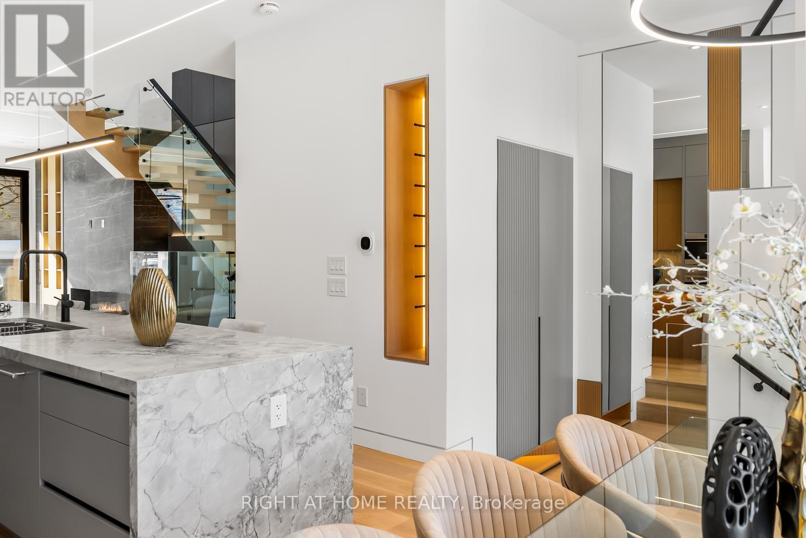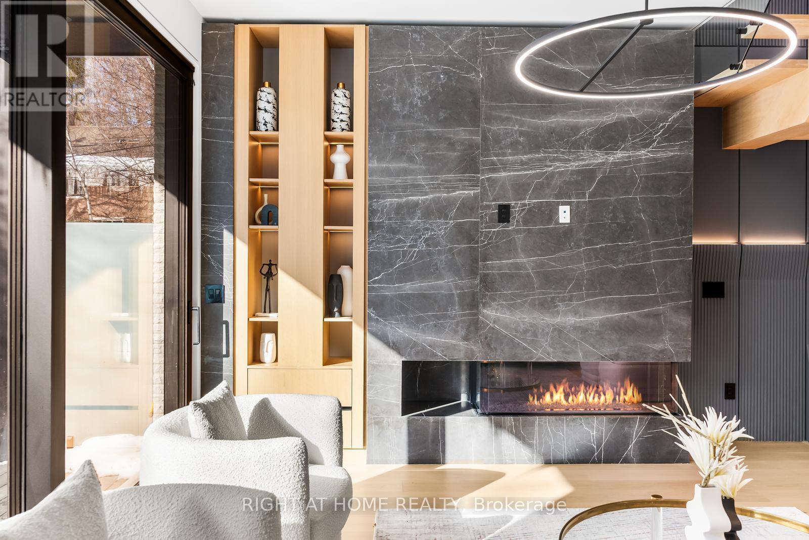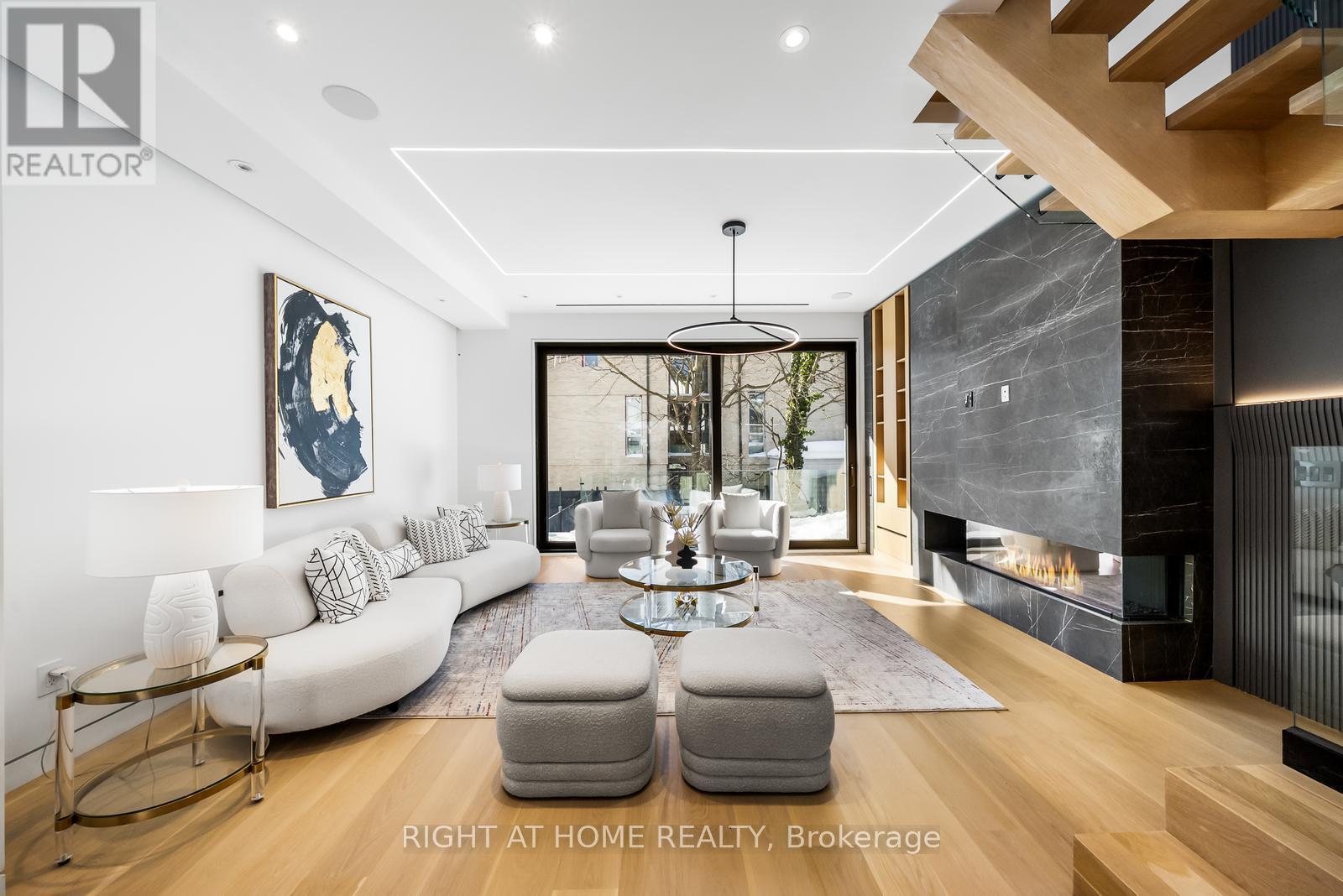 Welcome to 74B Rathnelly Ave - a brand-new built 2025, never-lived-in, custom-built luxury home in the prestigious Republic of Rathnelly, one of Toronto's most in-demand neighbourhoods. Steps to Yorkville and close to some of Canada's top private and public schools, this is a truly rare offering with exceptional design, craftsmanship, and high-end finishes throughout.Featuring German-imported Schüco aluminum windows and doors with triple-glazed glass, wide-plank white oak flooring, and a sleek trimless modern design with drywall-groove detailing. Impeccable interior detailing includes custom wall paneling and millwork, a statement mono-beam staircase, glass railings throughout, and upgraded strip lighting/fixtures. Chef's kitchen with custom-painted cabinetry, premium Sub-Zero & Wolf appliances, and natural stone countertops including Super White. Natural stone carries throughout the home (vanities, basement bar, fireplace), highlighted by a dramatic triple-sided marquee fireplace. Spa-inspired bathrooms feature CariMali Italian fixtures and wall-hung Duravit toilets, plus Italian tile and slab finishes with a strong focus on the Italian-slab basement.Enjoy a two-level, double-height heated basement with a large rec room and bar area. The exterior impresses with high-quality linear brick wrapping the sides/rear/walkout, extensive interlock (including interlock driveway), and a standout snow-melt heated system in the driveway, front porch, heated garage area, rear walkout, and even select portions of the backyard for year-round comfort. Entertain on the composite deck and enjoy a large backyard rarely found in the area, complete with composite fencing for a clean, modern finish.Integrated heated garage (extremely rare in the neighbourhood), two furnaces + two A/C systems, high-efficiency spray-foam insulation, smart security/speaker system, central vacuum, and more - a true turnkey statement home in an A+ location. (id:65552)