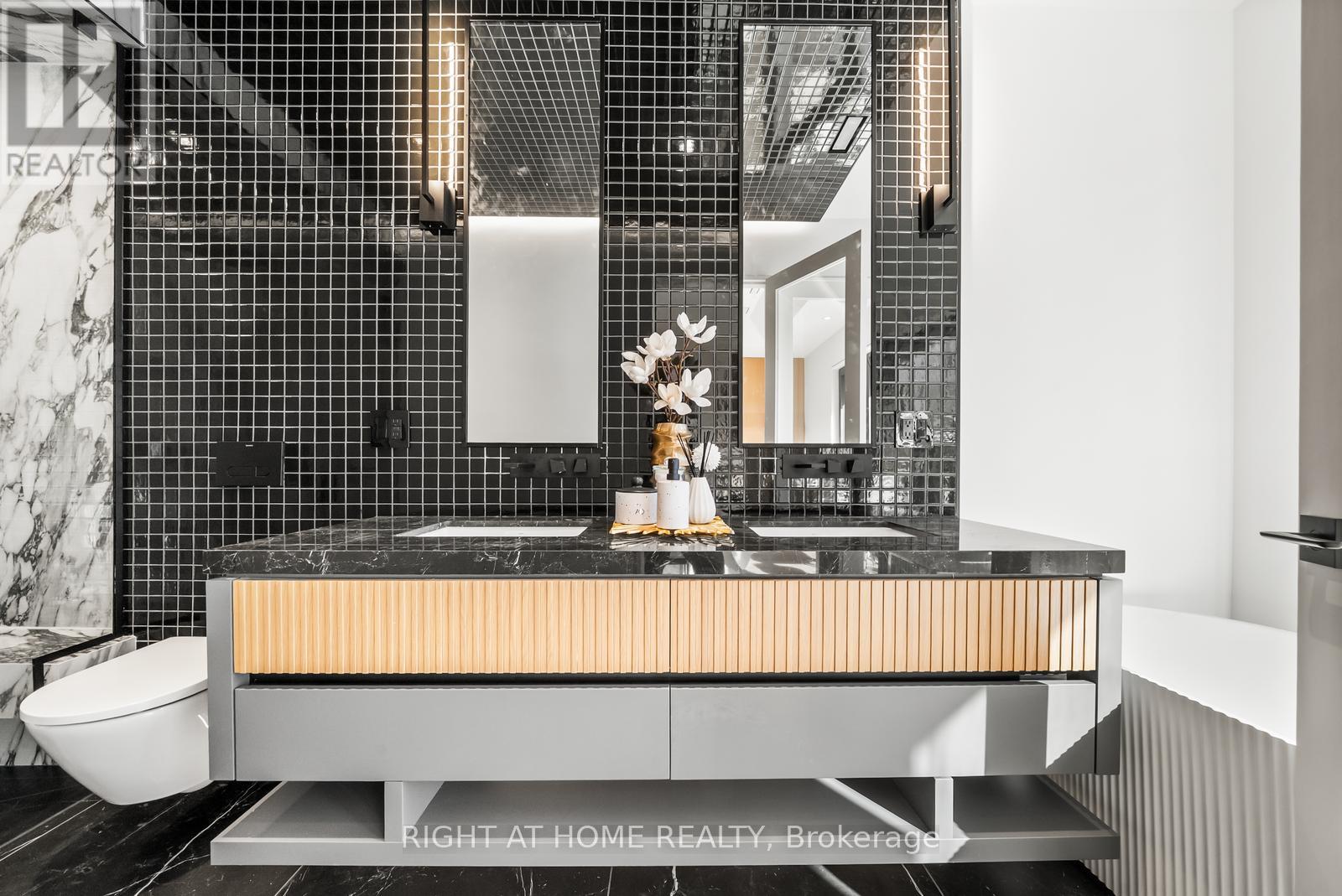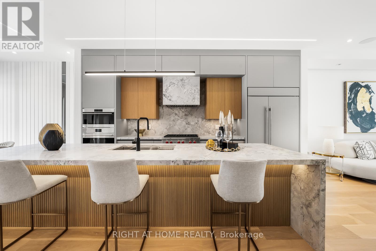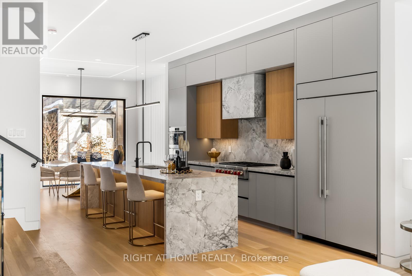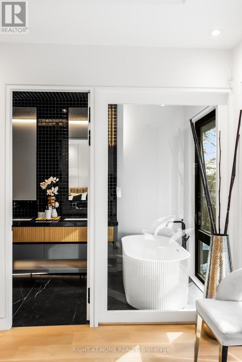 Welcome to 74B Rathnelly Ave - a brand-new built 2025, never-lived-in, custom-built luxury home in the prestigious Republic of Rathnelly, one of Toronto's most in-demand neighbourhoods. Steps to Yorkville and close to some of Canada's top private and public schools, this is a truly rare offering with exceptional design, craftsmanship, and high-end finishes throughout.Featuring German-imported Schüco aluminum windows and doors with triple-glazed glass, wide-plank white oak flooring, and a sleek trimless modern design with drywall-groove detailing. Impeccable interior detailing includes custom wall paneling and millwork, a statement mono-beam staircase, glass railings throughout, and upgraded strip lighting/fixtures. Chef's kitchen with custom-painted cabinetry, premium Sub-Zero & Wolf appliances, and natural stone countertops including Super White. Natural stone carries throughout the home (vanities, basement bar, fireplace), highlighted by a dramatic triple-sided marquee fireplace. Spa-inspired bathrooms feature CariMali Italian fixtures and wall-hung Duravit toilets, plus Italian tile and slab finishes with a strong focus on the Italian-slab basement.Enjoy a two-level, double-height heated basement with a large rec room and bar area. The exterior impresses with high-quality linear brick wrapping the sides/rear/walkout, extensive interlock (including interlock driveway), and a standout snow-melt heated system in the driveway, front porch, heated garage area, rear walkout, and even select portions of the backyard for year-round comfort. Entertain on the composite deck and enjoy a large backyard rarely found in the area, complete with composite fencing for a clean, modern finish.Integrated heated garage (extremely rare in the neighbourhood), two furnaces + two A/C systems, high-efficiency spray-foam insulation, smart security/speaker system, central vacuum, and more - a true turnkey statement home in an A+ location. (id:65552)