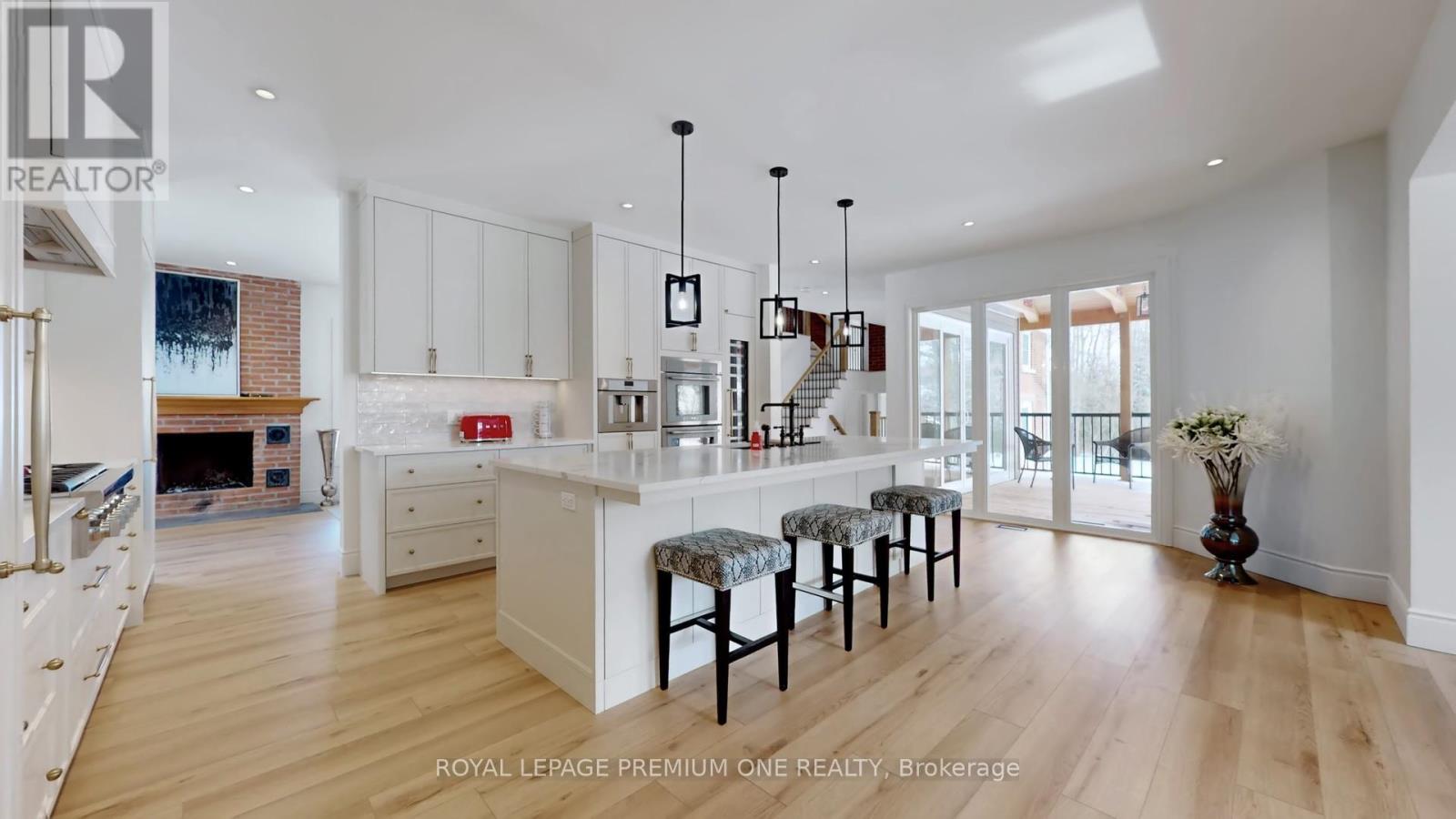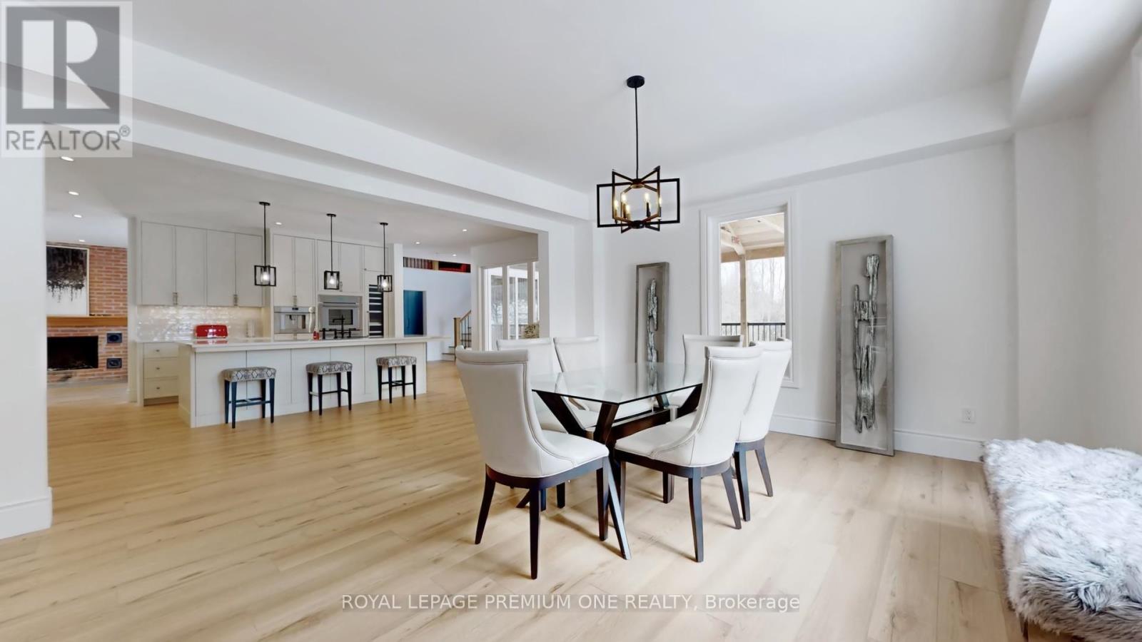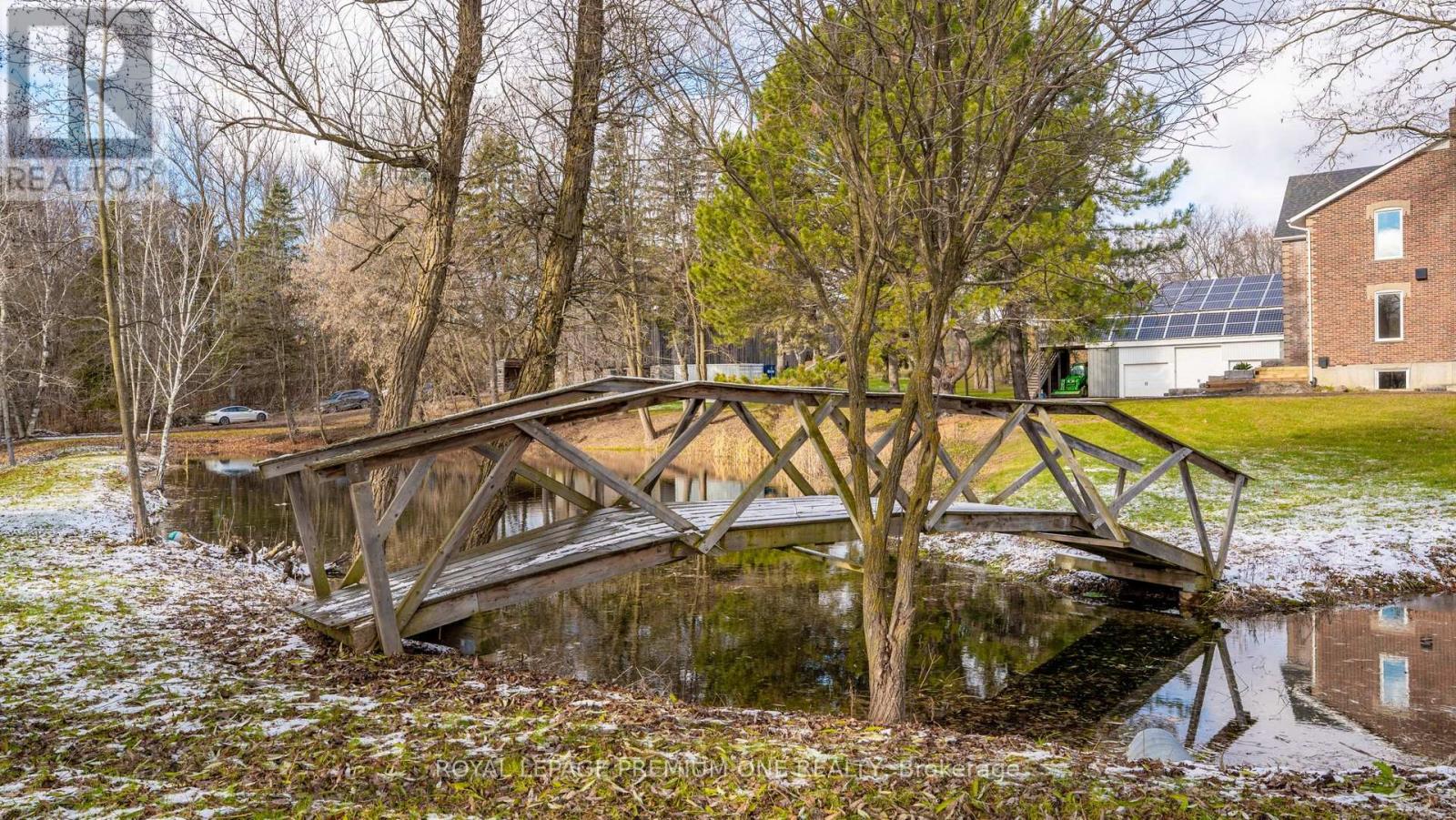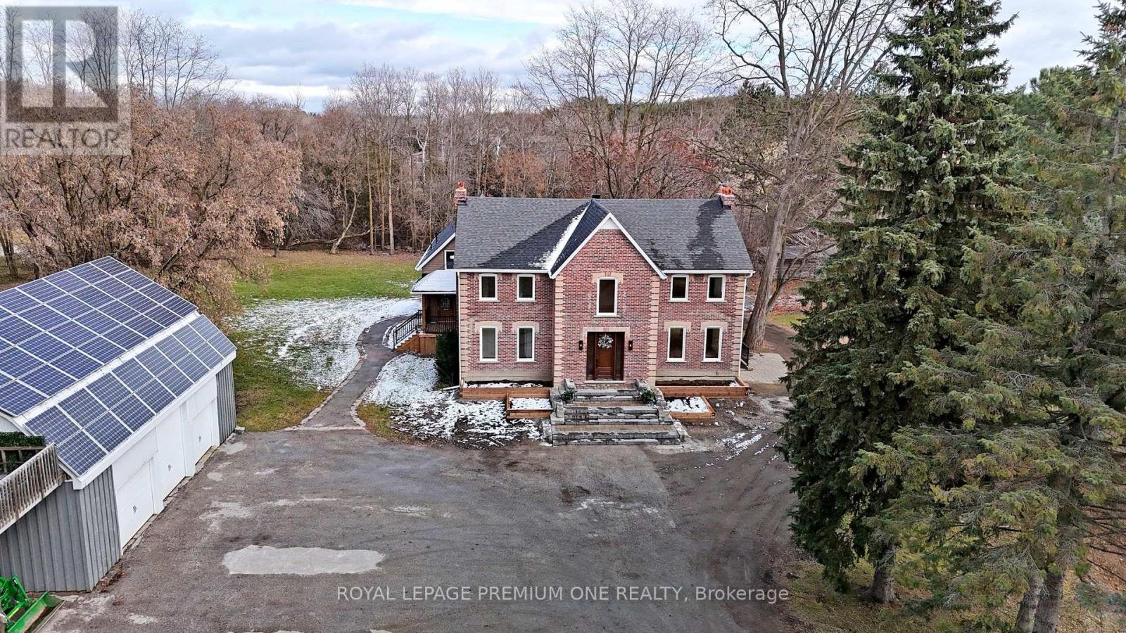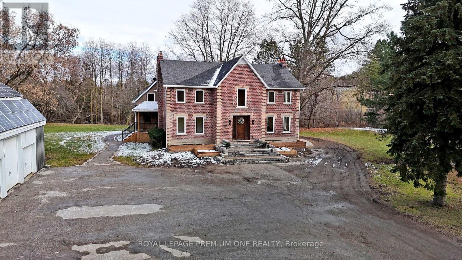 Century farmhouse charm meets modern luxury - enter through a private, winding tree-lined driveway loading to this breathtaking 12-acre property of rolling hills and tranquil ponds, minutes from Highways 400 and 27 in prestigious King Township. Offering over 7,000 sqft of finished living space, this fully renovated home was taken to the studs and rebuilt with exceptional craftsmanship. Soaring ceilings and expansive windows frame picturesque views, while the open-concept layout delivers bright, functional living without compromising comfort. The chef's kitchen showcases premium Thermador appliances, custom cabinetry by Povey Custom Woodworking, and a large island made for gathering. Thoughtfully upgraded throughout with imported European tile, designer finishes, new plumbing, electrical, HVAC, geothermal-ready systems, and solar power income for added efficiency and value. Leathered granite fireplaces, smart lighting, high-end fixtures, and a restored sauna elevate the experience. Outdoors, enjoy a new covered deck and professionally landscaped grounds. A carriage house offers parking for 3+ vehicles with a private 2-bedroom apartment above, complemented by an original 1800s barn. A separate home office with bedroom and ensuite ideal as an in-law or nanny suite includes additional lower-level walkout space. Crafted by award-winning Gatti Brother Renovations, this is more than a renovation it's a legacy home, reimagined. See attached full list of renos and features. A carriage house includes second floor living quarters. Private trails lead to the meandering Schomberg Creek and across a charming bridge to a serene pond - perfect for summer swims or winter hockey games. This is a property for those in search of something truly special. (id:65552)