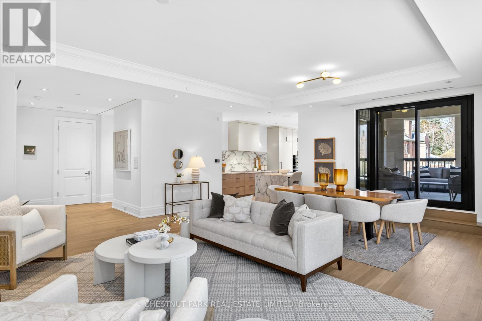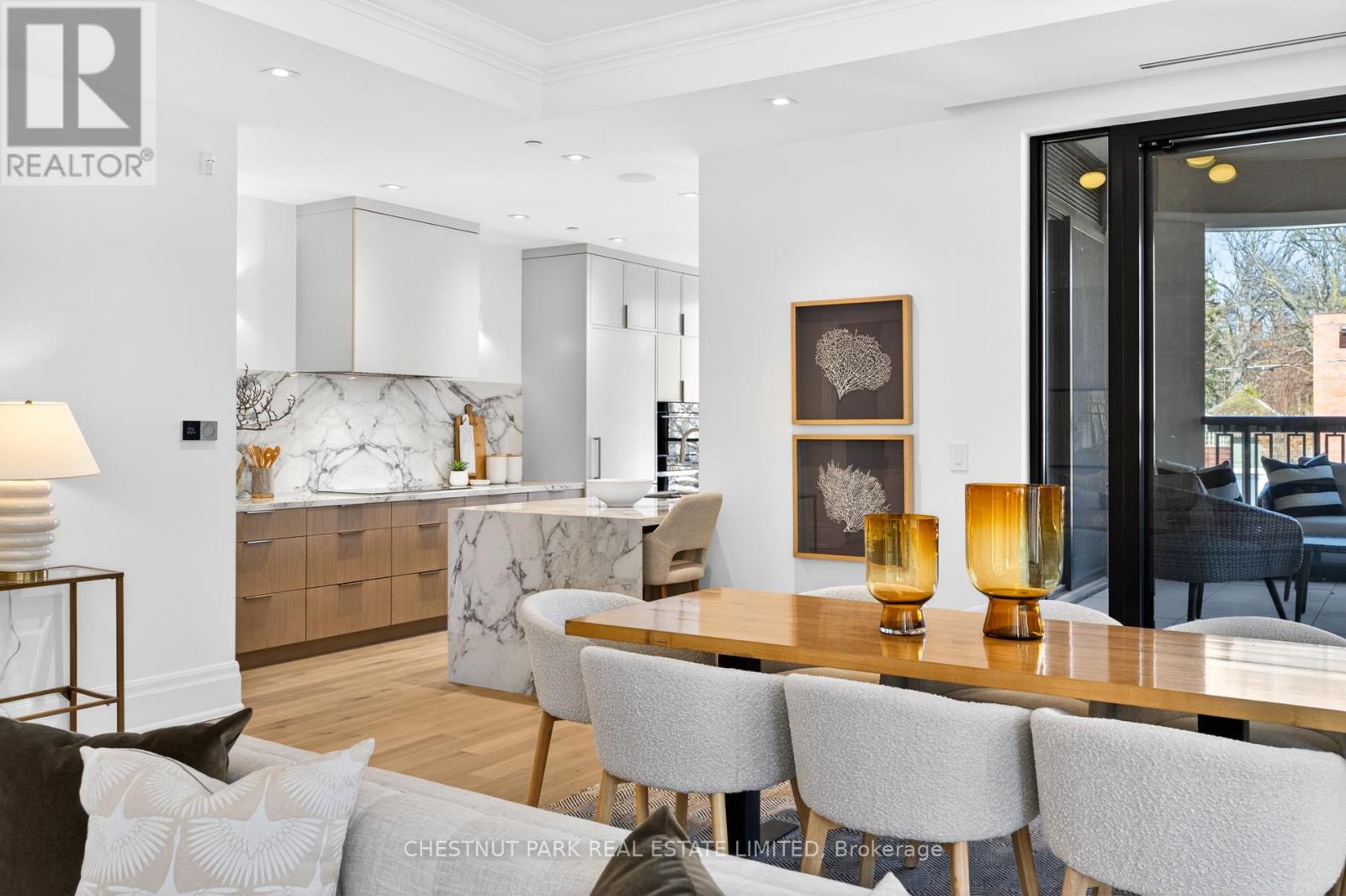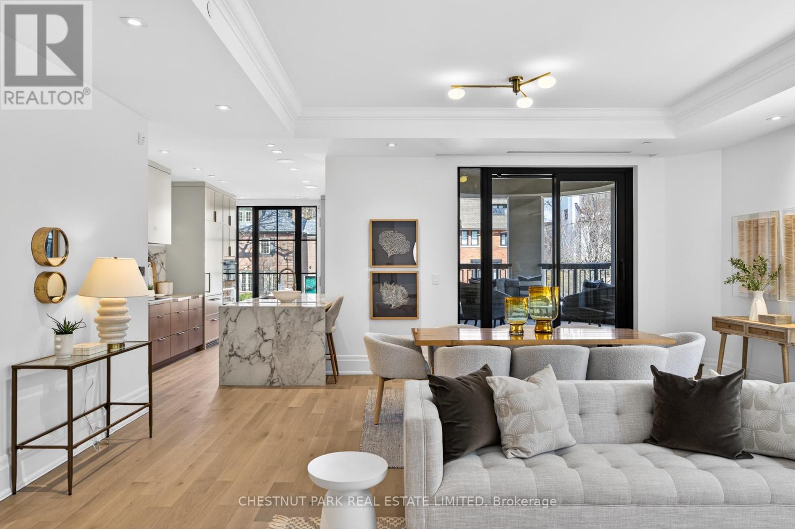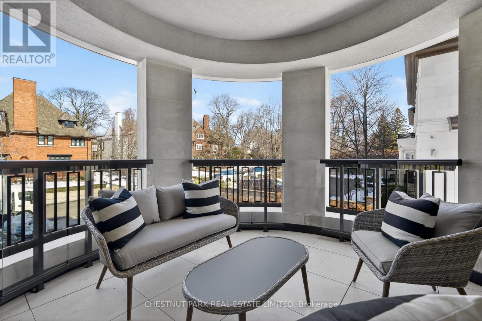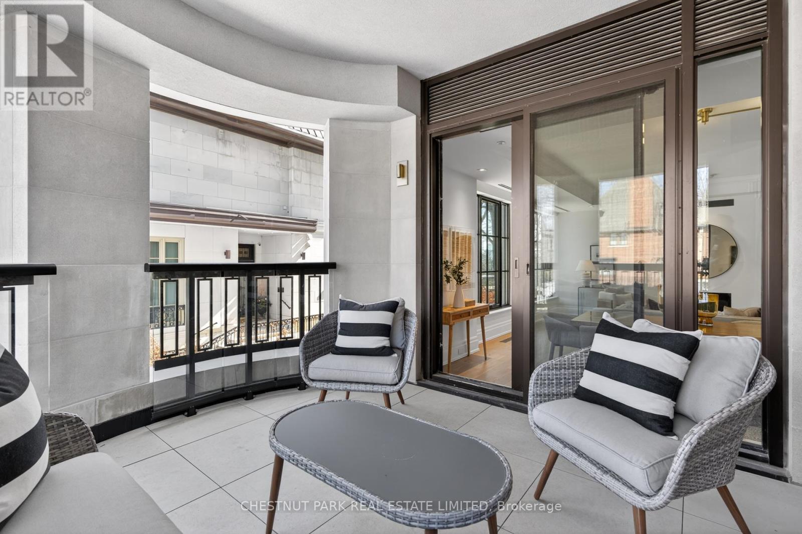 A rare opportunity within Maison 77 Clarendon, an intimate collection of just sixteen bespoke residences in the heart of prestigious South Hill. This five storey architectural jewel, positioned at the corner of Russell Hill Road and Clarendon Avenue, offers boutique living defined by privacy, elegance, and enduring design. This beautifully appointed two bedroom, two bathroom residence features soaring ceilings and dramatic floor to ceiling windows. The open concept kitchen and great room extend seamlessly to a private terrace, creating a refined setting for indoor outdoor living and gracious entertaining. Interiors curated by the acclaimed design firm Powell and Bonnell reflect a contemporary interpretation of classic style, blending timeless detailing with modern sophistication. Residents enjoy the comfort of 24 hour concierge service and valet parking, delivering a white glove lifestyle rarely found in boutique buildings of this scale. One parking space and two lockers are included for exceptional convenience. Set moments from ravine trails, top tier schools, and the shops and dining of St. Clair and Yonge, this residence offers a distinguished address and an unparalleled opportunity to secure a brand new home in one of Toronto's most coveted enclaves. (id:65552)