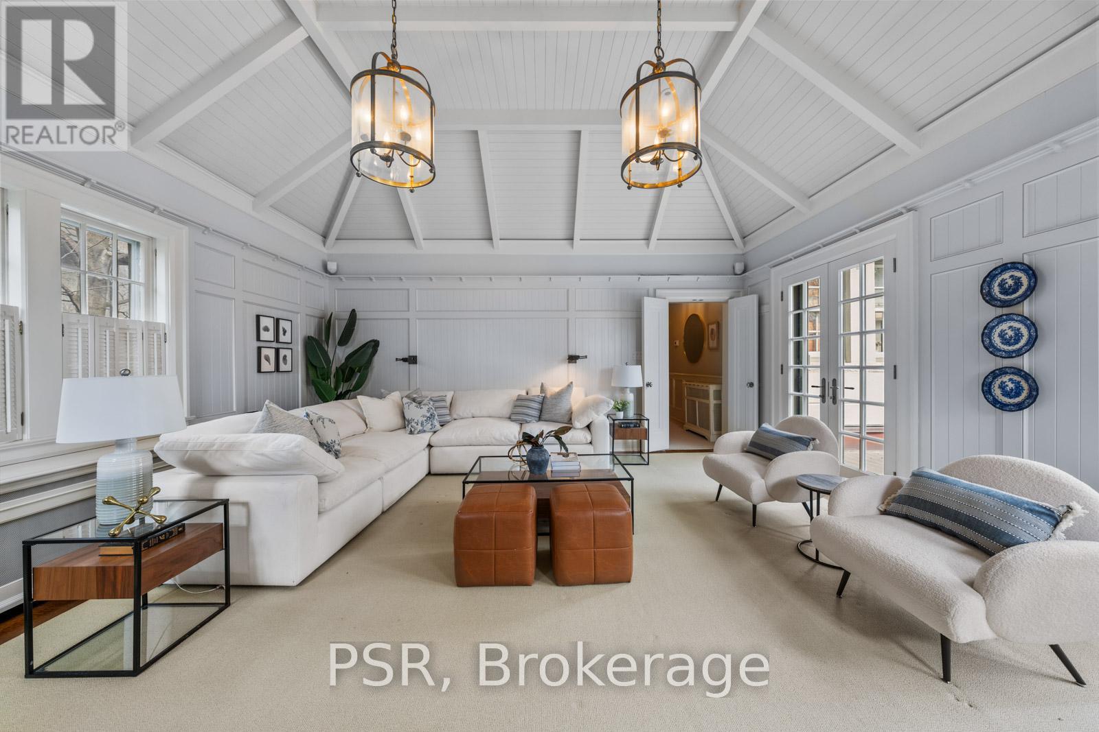 Situated on a prime 60.04 x 138.66 ft lot in one of Toronto's most sought-after neighbourhoods, this elegant and spacious home offers exceptional scale, comfort, and functionality. Featuring a 7-car driveway and 2-car garage with direct interior access, this residence is ideal for growing families and entertaining. A grand foyer welcomes you into beautifully proportioned principal rooms. The formal living room features rich hardwood flooring, large windows, and a wood-burning fireplace, with double glass doors for added privacy. The formal dining room showcases classic panelled walls and connects seamlessly to the kitchen-perfect for hosting. The chef-inspired kitchen is equipped with Sub-Zero paneled fridge/freezer, Wolf 6-burner gas stove and wall oven, and a large centre island with ample storage. A bright breakfast area overlooks the backyard and flows into the sunken family room with hardwood floors and three French doors opening to a private outdoor retreat with dining and lounge areas. The main floor also includes a mudroom with garage and side entrance access, a powder room, and generous storage. The lower level offers a spacious recreation room, 3-piece bathroom, large laundry room, and multiple storage areas. A unique half-level Great Room with soaring ceilings, panelled walls, and a walk-out to a large private terrace provides additional living and entertaining space. The upper levels feature well-appointed bedrooms, including a primary retreat with extensive built-ins, walk-in closet, and 5-piece ensuite. Additional bedrooms offer custom storage, with one featuring its own ensuite, plus a shared family bath. The third floor includes a versatile sitting area, bedroom, home office, and 3-piece bathroom. A rare opportunity to own a refined family home in the heart of Forest Hill, close to top rated schools, parks, and amenities. (id:65552)