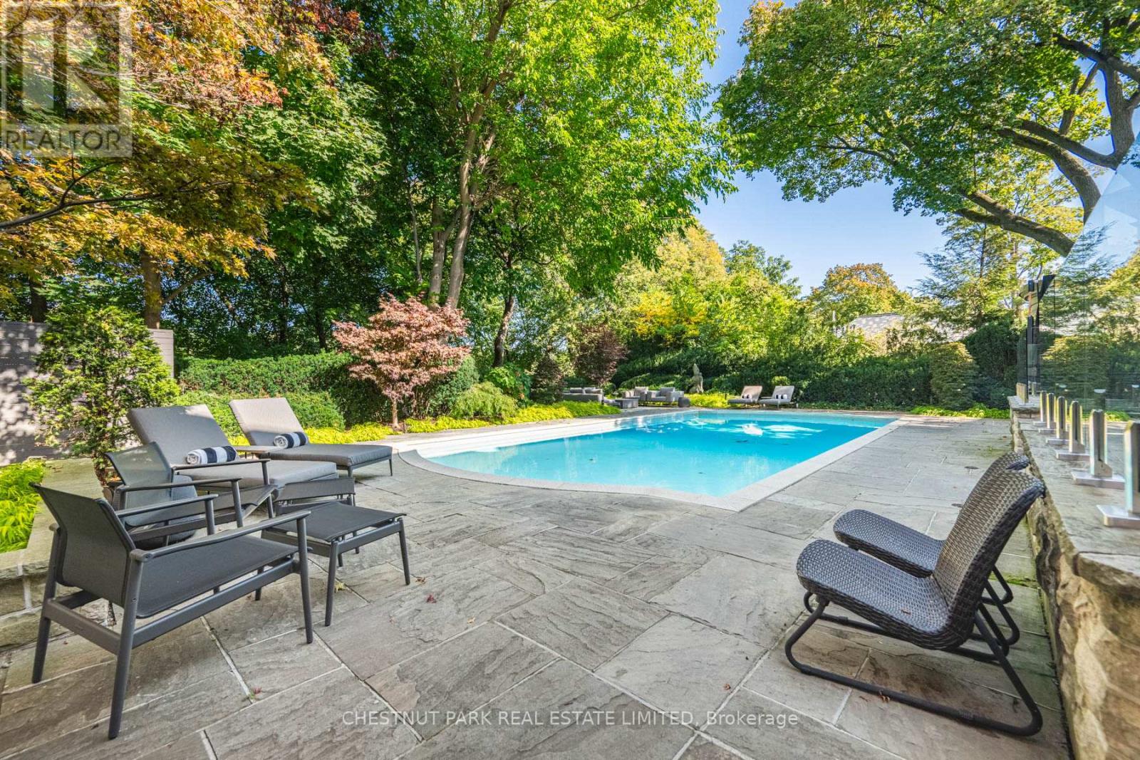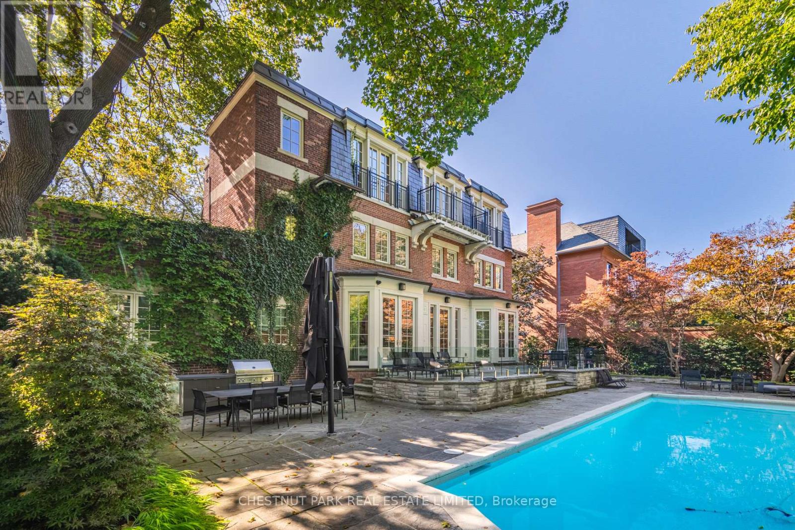Endless Summer in a Poolside Paradise with 7-Star Resort-Style Luxury! Experience the ultimate retreat in the highly sought-after Rosedale neighborhood, west of Mt. Pleasant. This expansive 85-foot-wide tableland property sits atop the exclusive Chestnut Park ravine, overlooking serene parkland below. A true garden oasis, the stunning oversized pool is virtually irreplaceable in this area, creating an idyllic opportunity for a captivating & private escape. Spanning nearly 8,000 square feet, this elegant Georgian residence is in a picture-perfect position on this magically lamp-lit street just 2 blocks from Yonge. The home features stunning multiple terraces for sitting, dining, and entertaining, complete with an outdoor kitchen. Inside, discover serene, curated interiors & an exceptionally sumptuous primary suite with his & her separate dressing rooms. This trophy property blends timeless grace, alluring charm, & unparalleled privacy with the convenience of everyday luxury in a prized neighborhood. Additional highlights include an ELEVATOR, generator, garage with lift, & ensuite bathrooms in all bedrooms. Set beneath a lush, treed canopy, you are just steps from the subway, top private & public schools, premier shopping, area parks, tennis, skating & hiking & biking trails extending to the lake. Plus, Yorkville & the city center are only a 10-minute drive away. (id:65552)