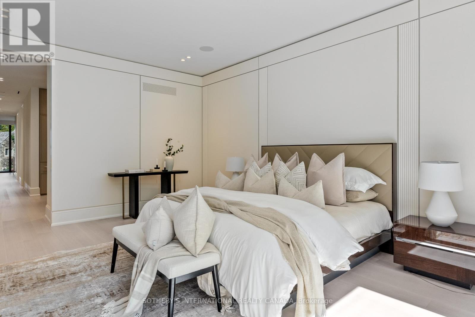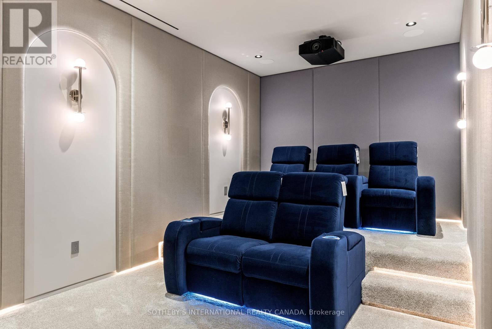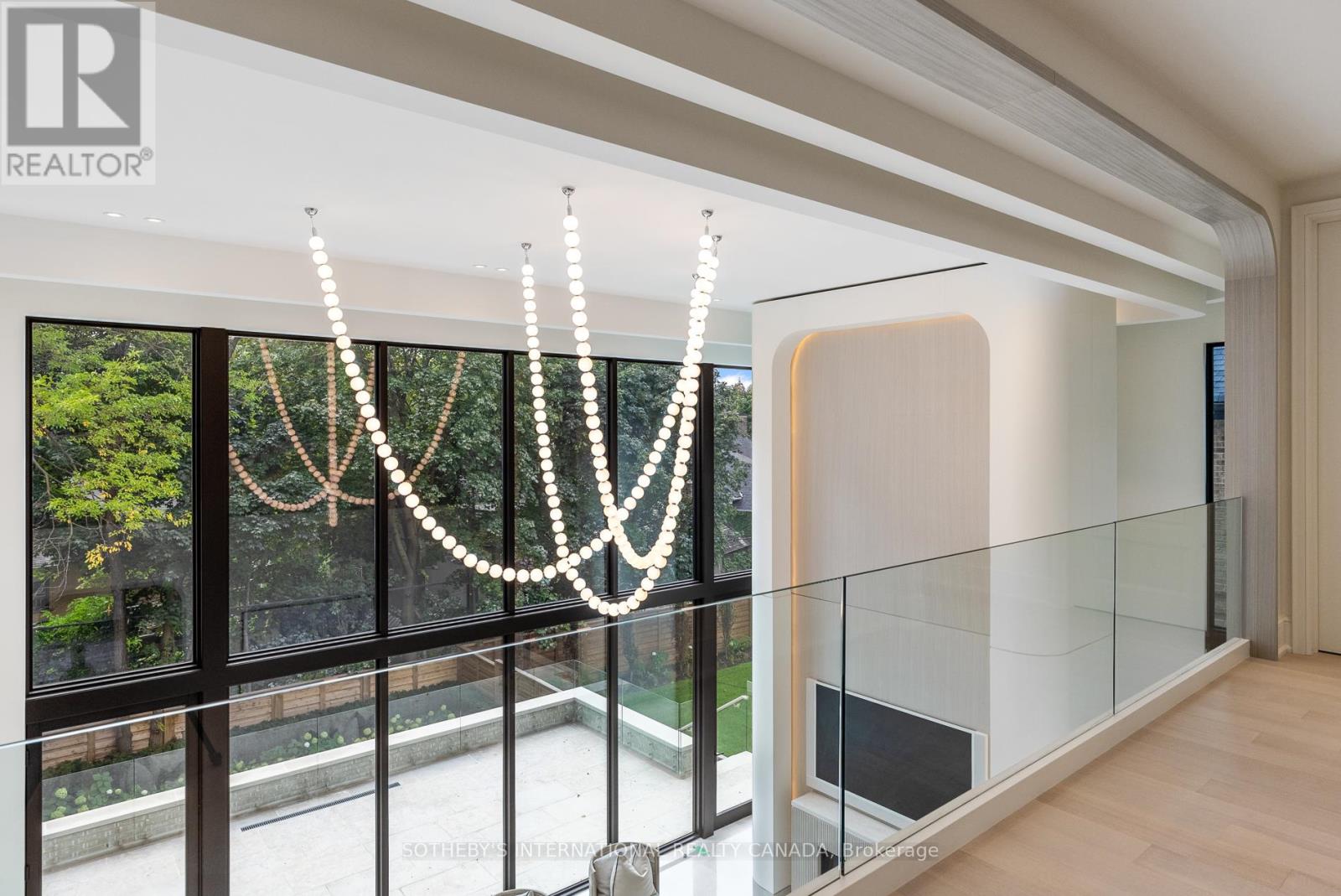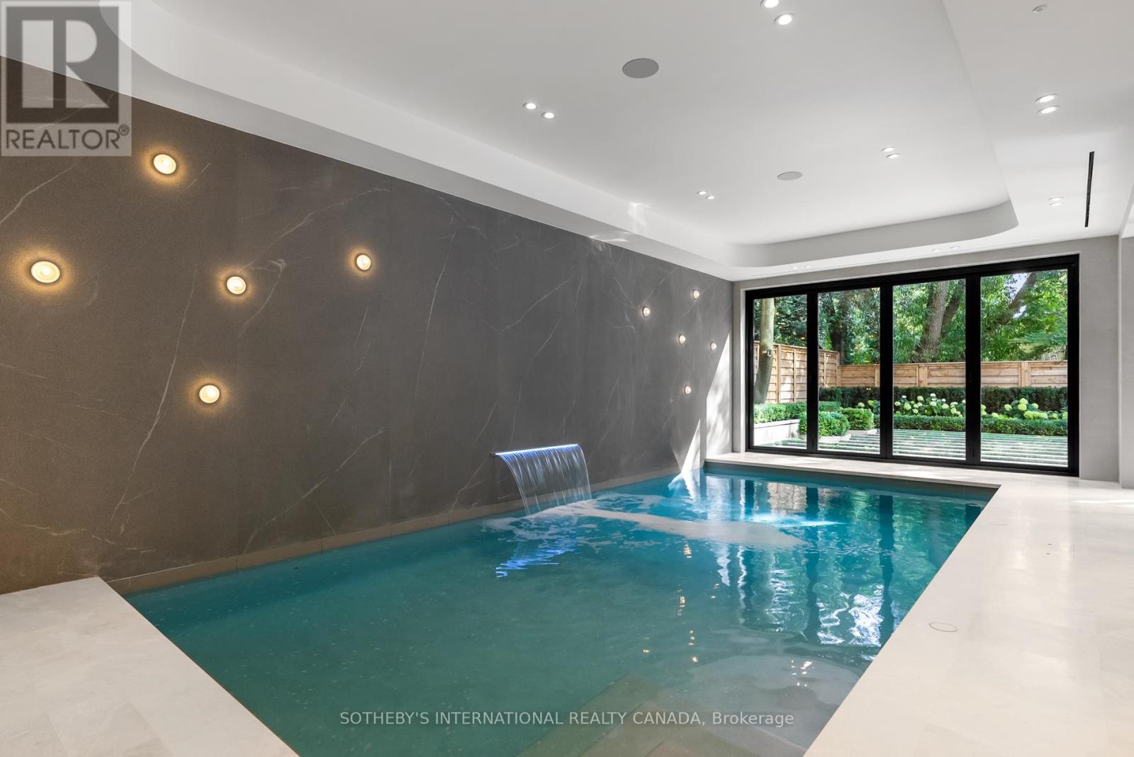 Redefining luxury living in Forest Hill, this exceptional estate rests on a 60 ft x 135 ft lot and embodies design excellence by OE Design, where craftsmanship and attention to detail are evident at every turn. The moment you enter, a sweeping spiral staircase sets the tone for over 10,500 sq ft of refined living space. Grand principal rooms are designed for both elegance and comfort, with a formal dining room and a striking living area highlighted by a limestone gas fireplace and dramatic 23 ft floor-to-ceiling windows that flood the home with natural light. At the heart of the residence lies the chef's kitchen, equipped with Miele appliances, custom cabinetry, leathered marble countertops, an oversized island, and a butler's pantry. The adjoining family room features a hidden bar, integrated audio, and seamless views of the garden with heated patio and steps. The primary suite is a true retreat, complete with a spa-like 6-piece ensuite finished in Silver White Honed Marble, a free standing tub, steam shower, dual vanities, and two expansive custom closets. Four additional bedrooms with private ensuites span two levels, offering exceptional accommodation. An elevator connects every floor, including a lower level curated for ultimate leisure with an indoor pool and spa, state-of-the-art theatre, and fully equipped gym, all with direct walkout to a lush, private garden-perfect for both intimate gatherings and large-scale entertaining. Outside, a heated circular driveway accommodates four vehicles with the option to be gated, while the heated garage includes two spots, lift potential, and EV charging. Just minutes from top private schools, fine dining, and scenic parks, this home masterfully balances exclusivity, elegance, and everyday convenience. (id:65552)