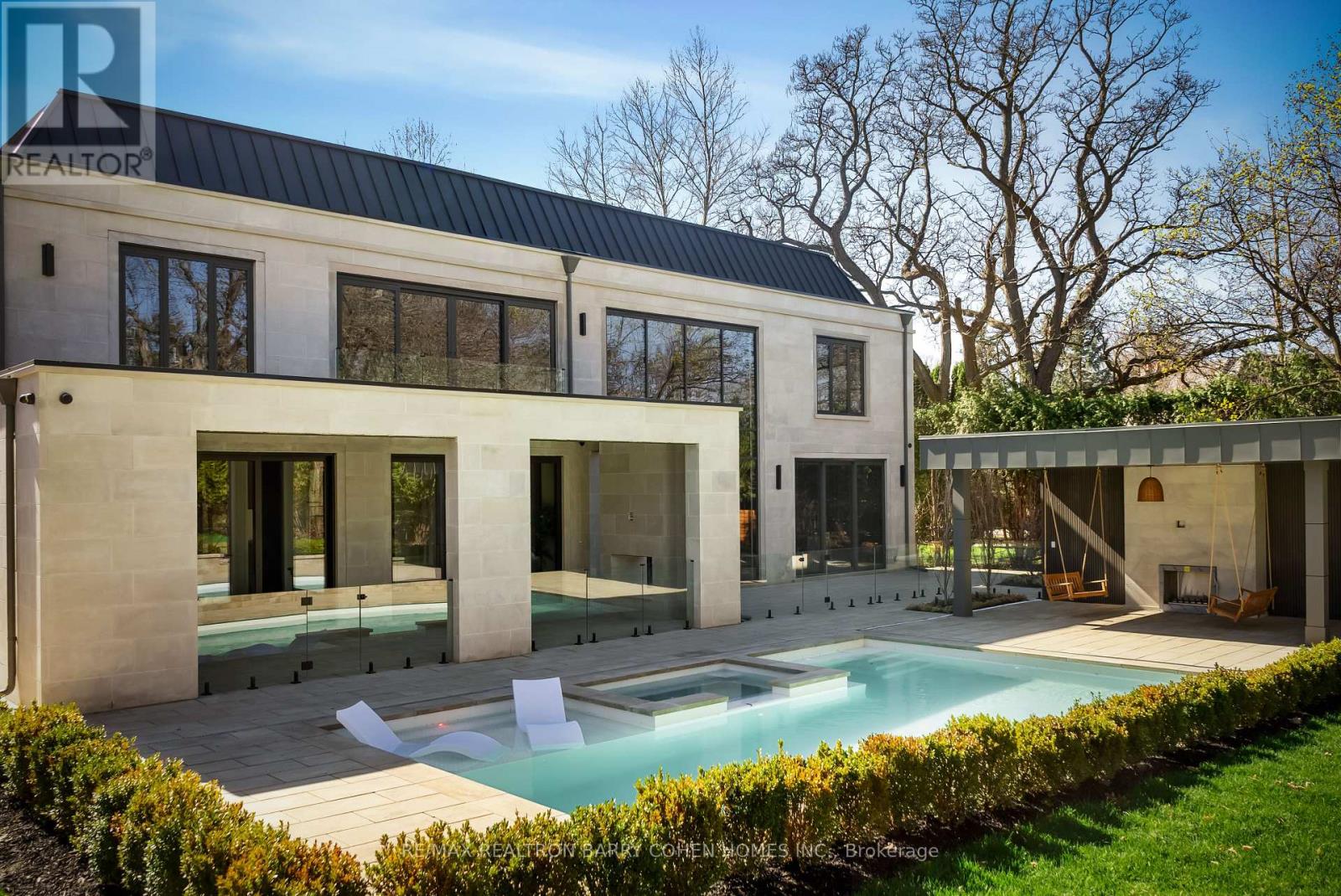 Bespoke Architectural Estate Designed By Acclaimed Architect Richard Wengle & Interior Virtuoso Carey Mudford, This Extraordinary Residence Represents The Pinnacle Of Luxury Living In Toronto's Prestigious The Bridle Path. Tucked Within A Quiet Pie-Shaped Cul-De-Sac On Over 15,000Sf W/A Rare 120Ft Rear Width, The Home Is Fully Clad In Indiana Limestone, Blending Timeless European Elegance W/Contemporary Grandeur Over 8700Sf (Main+2nd). A Heated Drive Accommodates 6+ Vehicles, Complemented By A Meticulously Engineered 10-Car Subterranean Garage W/Heated Flrs, EV Charging & Auto CO Exhaust. Soaring 11Ft Ceilings, Heated Marble Flrs, A Double-Entry Elevator Servicing All 4 Levels & Custom Arched Doors Set A Tone Of Refined Sophistication. The Formal Living Room, Anchored By A Kingsman Marble Fireplace, Flows Into An Elegant Dining Rm W/A Glass-Enclosed Wine Feature & Lime-Washed Venetian Plaster Walls. The Showpiece Kitchen Is Centered Around A Dramatic 12Ft Valentino Quartzite Island W/Brass Inlays, Supported By A Full Suite Of Miele Appl. In Both Main & Prep Kitchens, & A Sculptural Brass Hood. Stunning Double-Height Family Rm W/Flr-To-Ceiling Glass Opens To A Bar Lounge, While Oversized Sliding Doors Create Seamless Indoor-Outdoor Living & Large European Aluminum Windows Cascade Natural Light Throughout. The 2,000Sf Primary Retreat Occupies Its Own Wing, Featuring Textured Leather Walls, Fireplace, Private Balcony & A Spa-Inspired Ens. W/Heated Marble Flrs, Steam Shower, Soaker Tub, Dual Vanities & Toilets & Separate Dressing Lounges Beneath A Skylight. Lower Level Is Dedicated To Leisure, W/Heated Flrs, Marble Wet Bar, Smart-Glass Garage Viewing, Soundproof Theatre, Guest Suite, W/O & A Wellness Zone W/Gym, Sauna & Steam Room. Private Outdoor Oasis Showcases A Saltwater Pool W/Tanning Ledge, Hot Tub, Covered Lounges W/Fireplaces, Cabana W/Changeroom & Bath, & A Fully Equipped Limestone Outdoor Kitchen. Just Moments To The Granite Club, Top Schools, Golf & Downtown (id:65552)