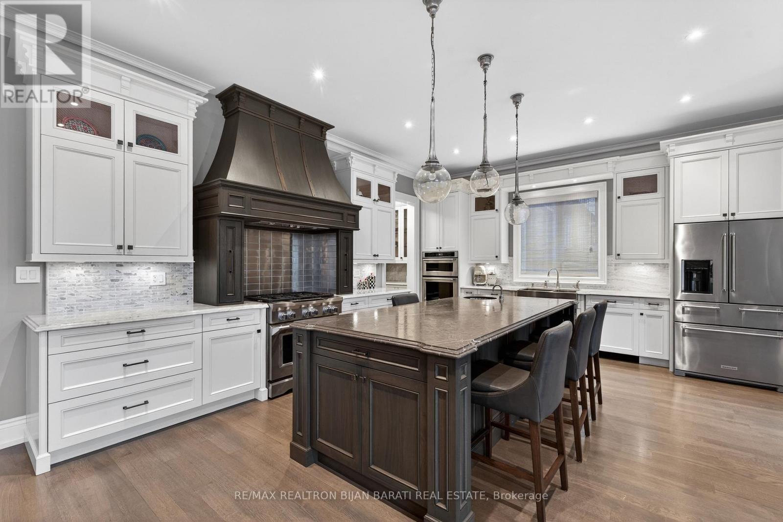 This Newer Custom Built Home, Meticulously Crafted And Sophisticated Designed On A Sun-Filled Southern Prime Lot: 50' X 117' !! It Offers Approximately 5,400 Sq.Ft Of Luxurious Living Space! 4+2 Bedrooms And 7 Washroom! E-L-E-V-A-T-O-R For 3 Levels! Impressive Architectural Design With Warm Accents And A Functional Layout! Soaring Ceiling Height ((1St Flr: 10', Office: 13.5', 2Nd Flr: 10' (Including Cof Cling), Rec Rm: 10.5'))! Hardwood Flooring And Led Lighting Thru-Out Main & 2Nd Flr! Beautiful Mix Of Limestone And Brick In Facade, And Full Brick For Other Three Exterior Sides!! Heated Floor in Lower Level And Snow Melting System for Driveway! High-End Millwork! Paneled Walls, Crown Molding, Coffered Ceilings, Led Potlights & More! The Main Floor's Flawless Layout Seamlessly Combines Functionality & Desirability, Featuring Spacious Living & Dining Areas With A Gas Fireplace, A Stylish Office/Library Featuring High Ceiling And Integrated Bookcases And Paneled Walls, Perfect For Work From Home! Walkthrough Pantry Leads To A Chef-Inspired Kitchen And Breakfast Area With State-Of-The-Art Appliances, Quality Cabinets, And A Built-In Bench! Spacious Family Room With Gas Fireplace, Rich Wall Unit, Walk-Out To Large Deck, Patio And Lovely Backyard. The Second Floor Offers A Breathtaking Master Bedroom, Boudoir W/I Closet And A Sumptuous Heated Floor Ensuite, Plus Three Additional Bedrooms Include Their Own Bathrooms, And A Large Laundry. The Lower Level Boasts An Incredible Recreation Room With A Wet Bar & Walk-Out To A Patio, Plus An Inviting Wine Cellar With Climate Control, A Guest/Nanny Room, Gym, And A Fully Equipped Home Theatre. Very Convenient Location: Minutes From Subway Station, And All Other Amenities! No Sidewalk in Front! This Home Is An Absolute Must See!