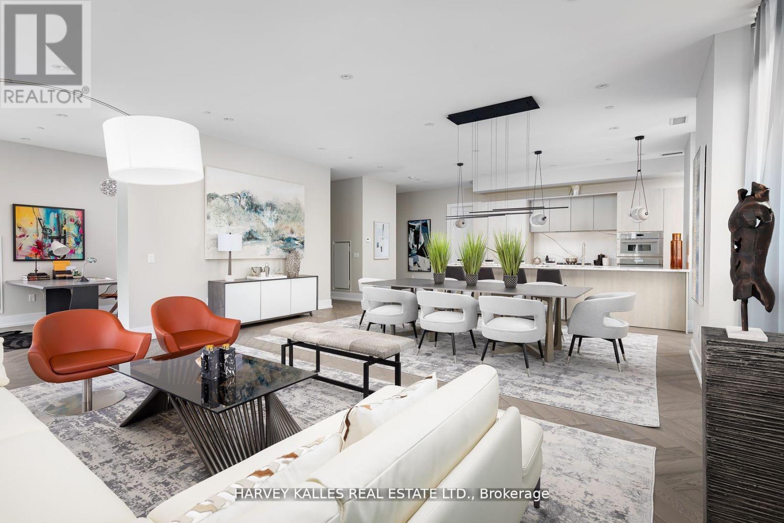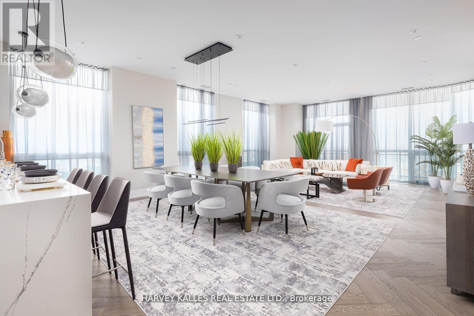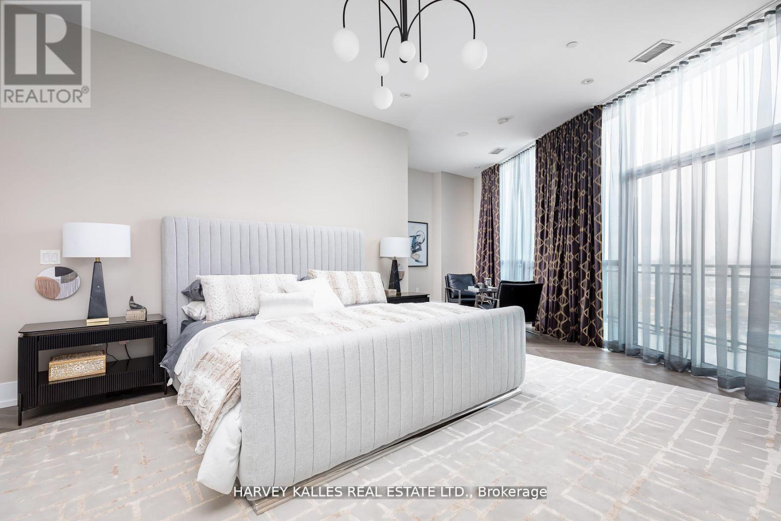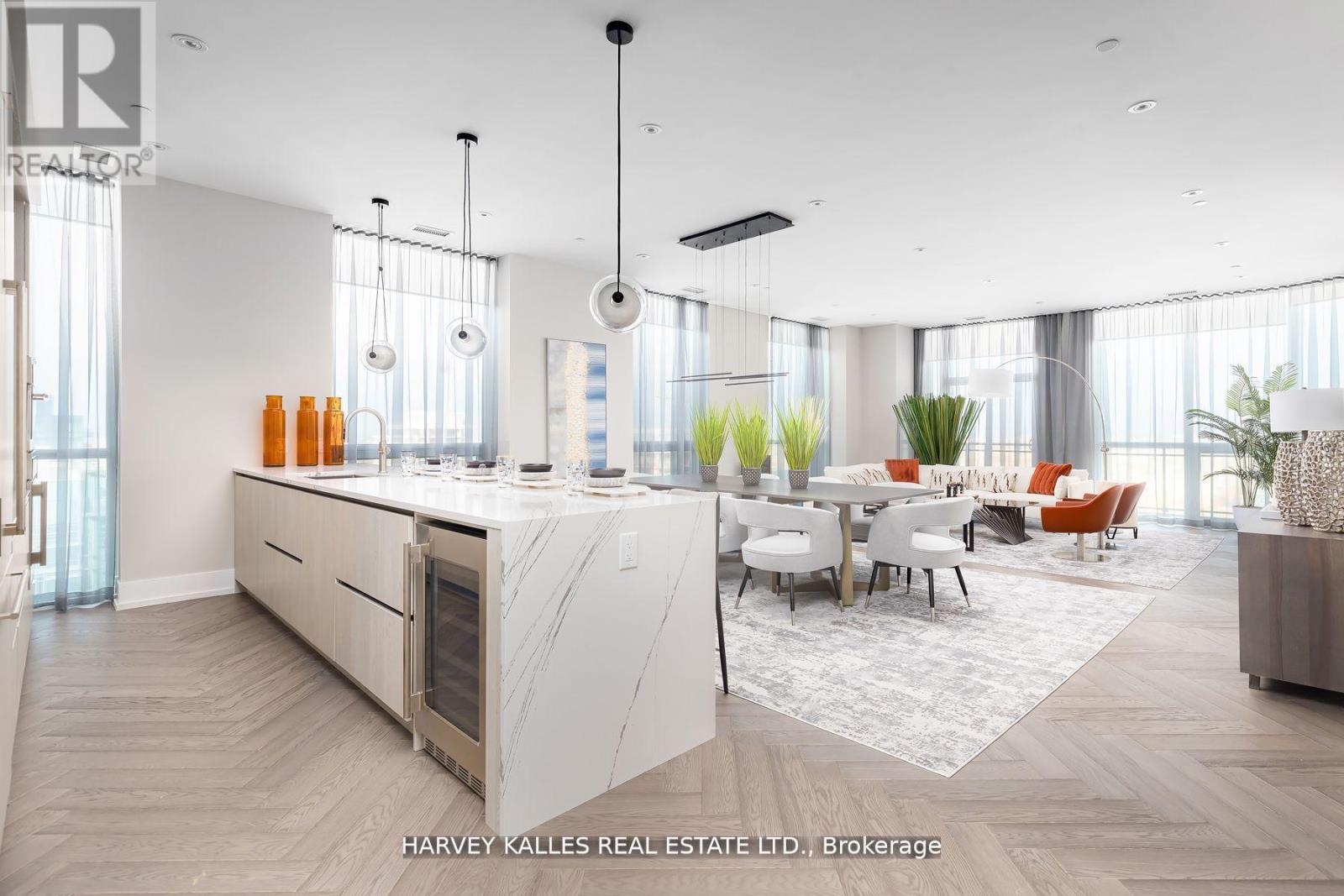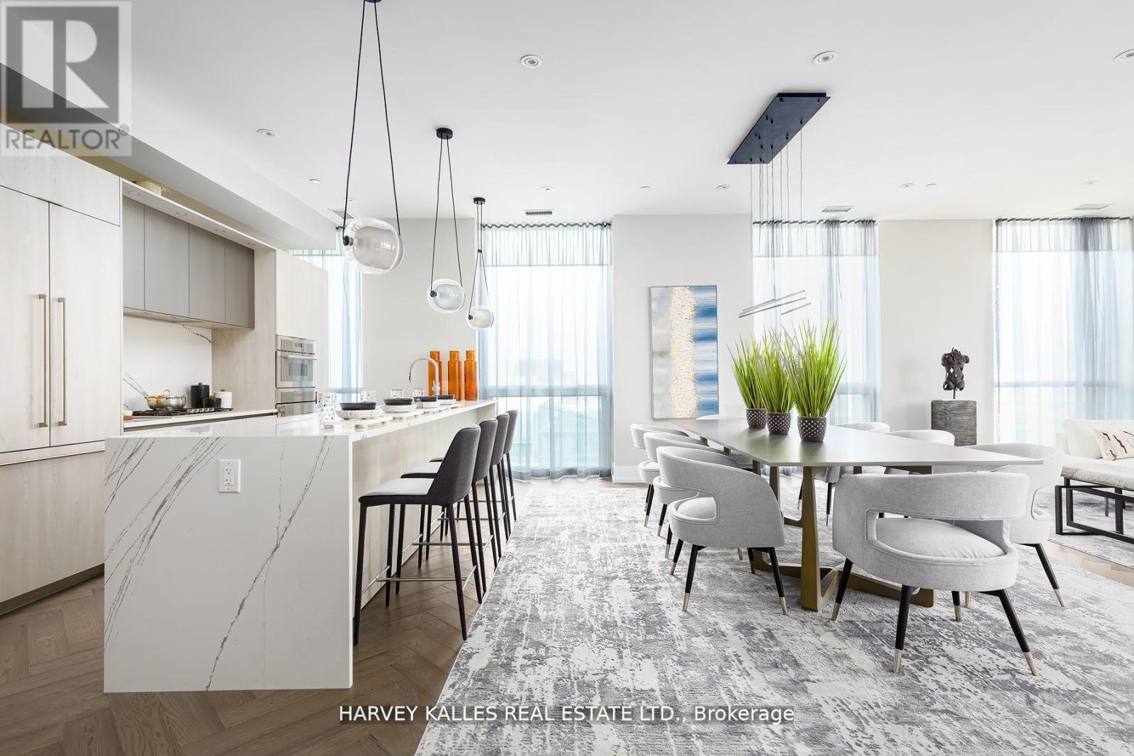 Once again, Pinnacle International celebrates penthouse living with this luxurious half-floor residence atop the iconic PJ. Perfectly situated in the heart of the city, just steps to Bay Street, world-class theatre, symphony, ballet, premier dining, sports venues, the PATH system, and some of Toronto's finest hotels. A full-length balcony spans the entire suite (311 sq. ft.), while above, a dramatic 1,424 sq. ft. columned rooftop terrace offers breathtaking panoramic views of the city skyline, Lake Ontario, and spectacular western sunsets. Complete with gas, water, and hydro, this extraordinary outdoor space is ideal for entertaining or private retreat. Inside, elegant herringbone hardwood floors flow throughout. The chef-inspired kitchen features Thermador stainless steel appliances, a generous centre island, and abundant custom cabinetry. The suite offers three spacious bedrooms, including two with private ensuites and walk-in closets. The primary retreat is a true standout, boasting a spa-like ensuite with stunning views of downtown Toronto. A rare and valuable feature, two separate dens-each with exceptional views-provide ideal spaces for a home office, library, or additional lounge areas. Designed for both grand entertaining and refined everyday living, this exceptional penthouse delivers space, style, and sophistication in equal measure. Live life exclusively and elegantly.