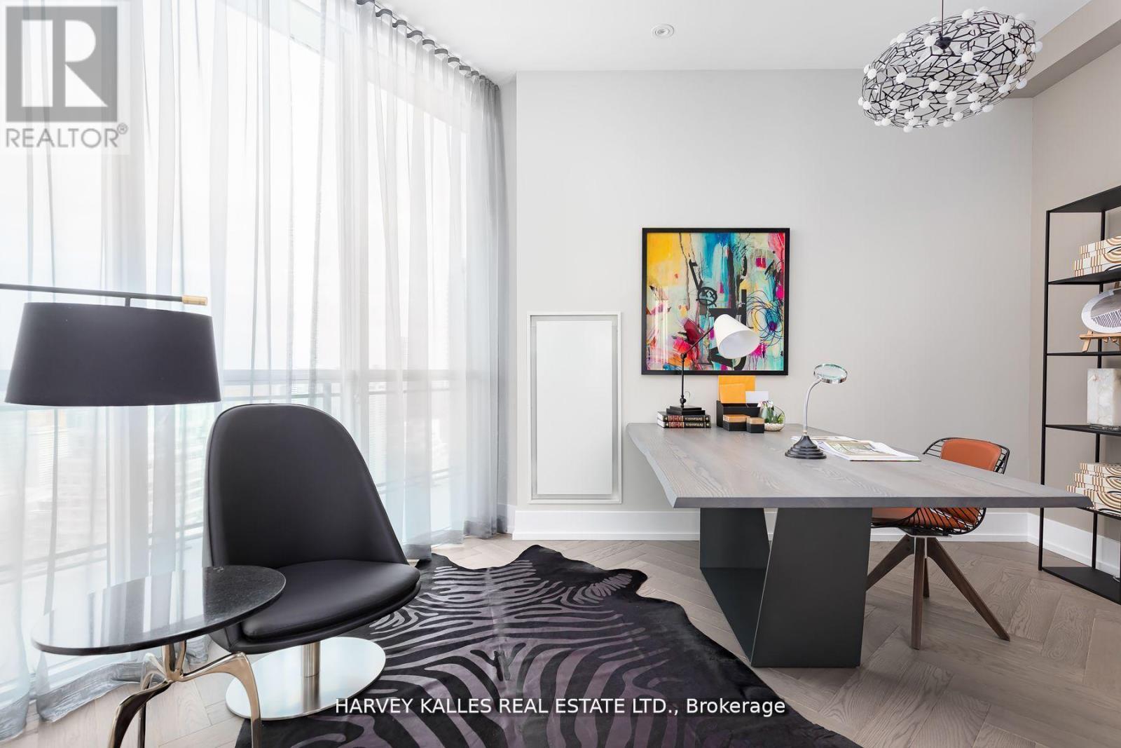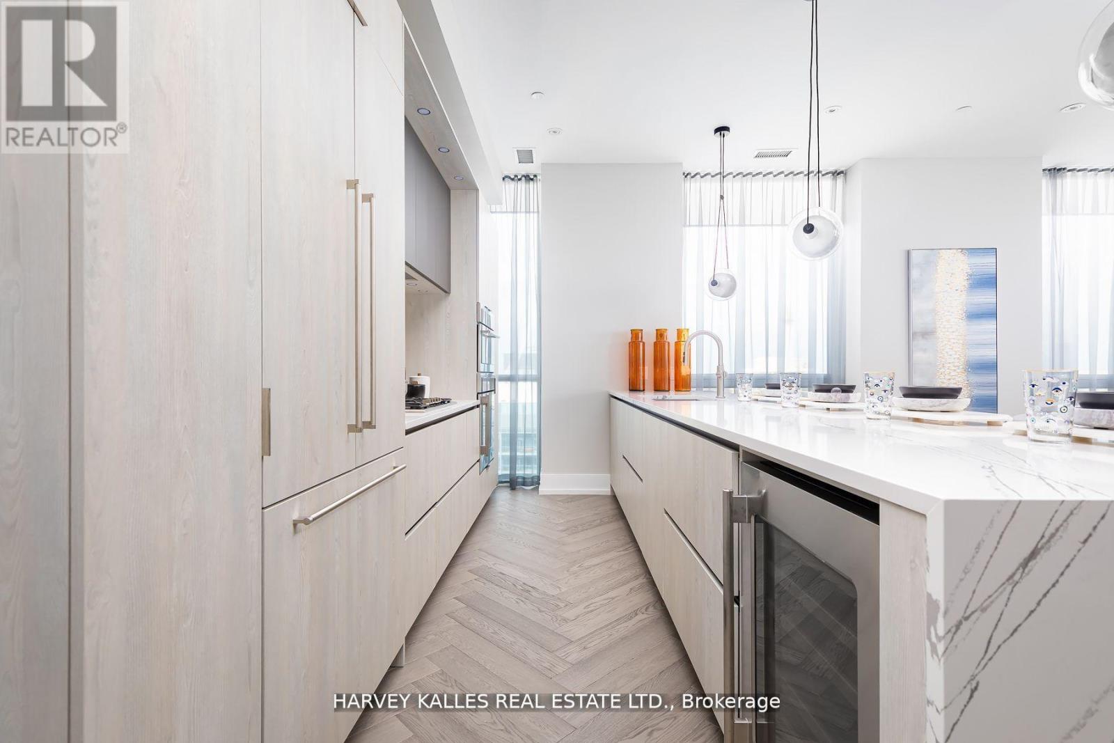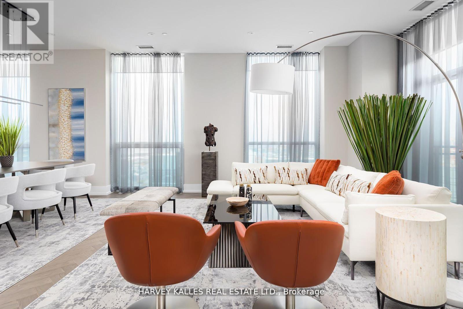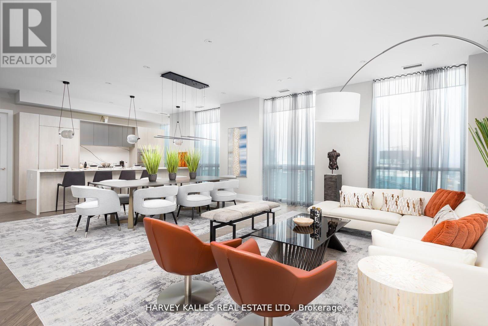 Once again, Pinnacle International celebrates penthouse living with this luxurious half-floor residence atop the iconic PJ. Perfectly situated in the heart of the city, just steps to Bay Street, world-class theatre, symphony, ballet, premier dining, sports venues, the PATH system, and some of Toronto's finest hotels. A full-length balcony spans the entire suite (311 sq. ft.), while above, a dramatic 1,424 sq. ft. columned rooftop terrace offers breathtaking panoramic views of the city skyline, Lake Ontario, and spectacular western sunsets. Complete with gas, water, and hydro, this extraordinary outdoor space is ideal for entertaining or private retreat. Inside, elegant herringbone hardwood floors flow throughout. The chef-inspired kitchen features Thermador stainless steel appliances, a generous centre island, and abundant custom cabinetry. The suite offers three spacious bedrooms, including two with private ensuites and walk-in closets. The primary retreat is a true standout, boasting a spa-like ensuite with stunning views of downtown Toronto. A rare and valuable feature, two separate dens-each with exceptional views-provide ideal spaces for a home office, library, or additional lounge areas. Designed for both grand entertaining and refined everyday living, this exceptional penthouse delivers space, style, and sophistication in equal measure. Live life exclusively and elegantly.