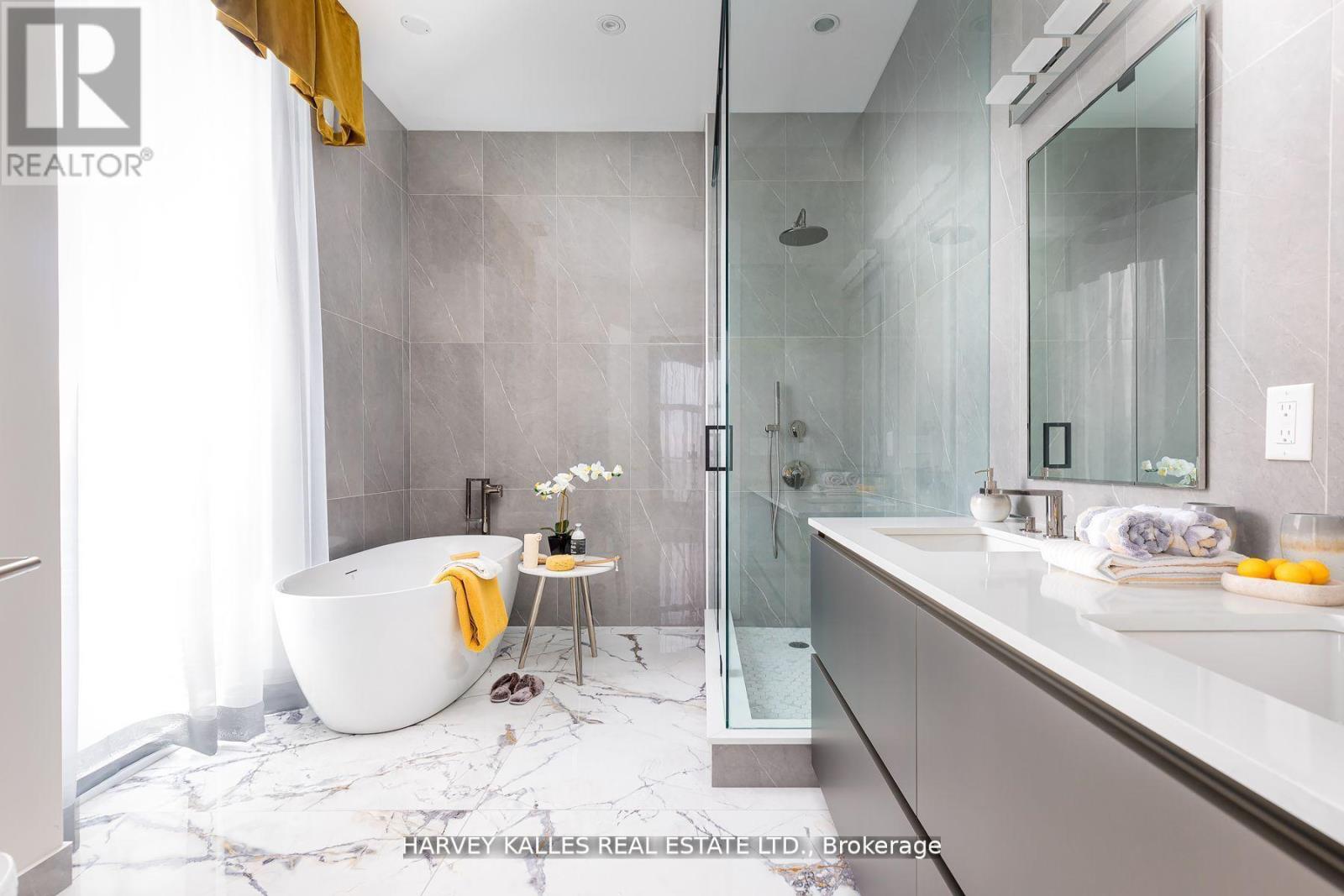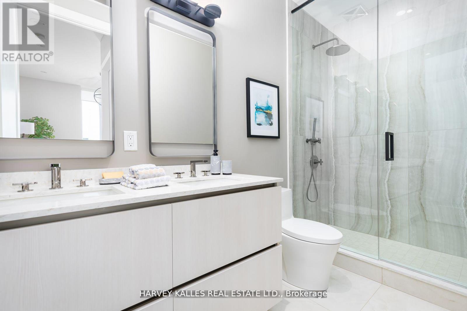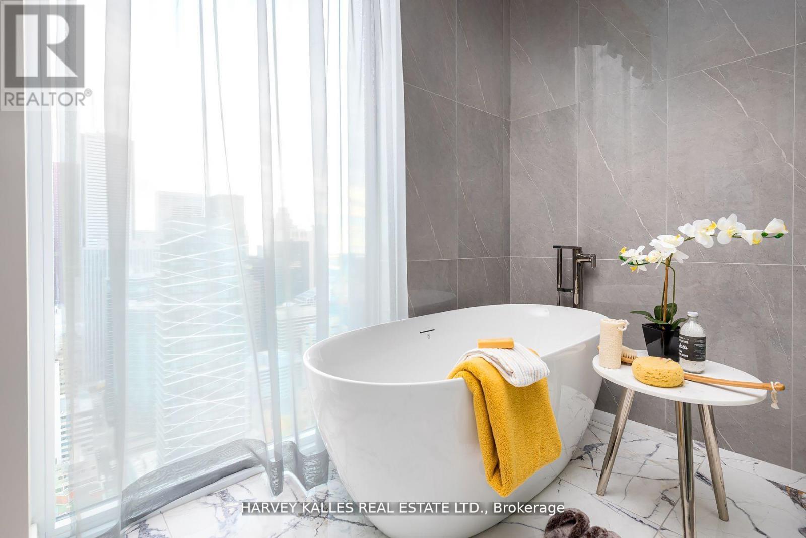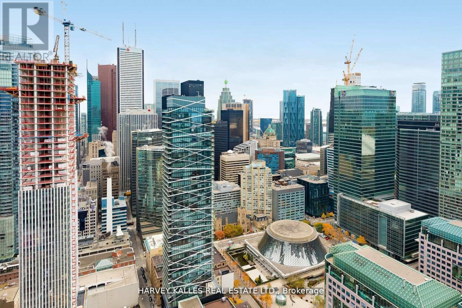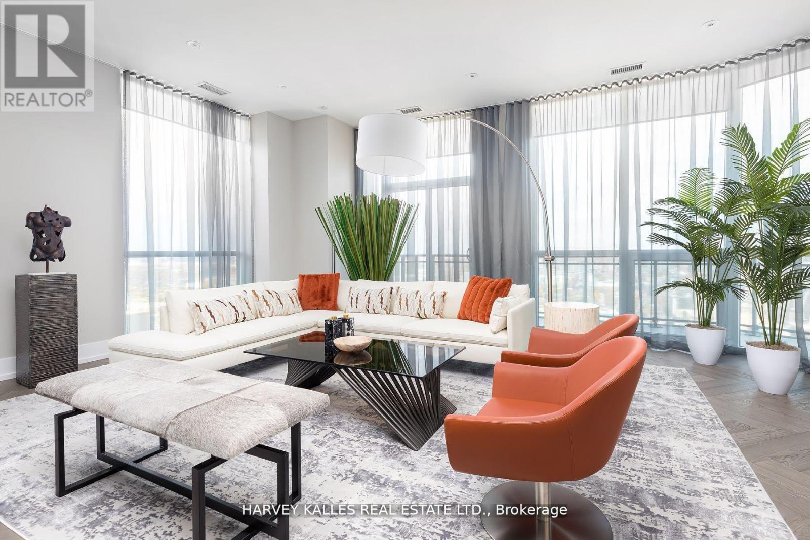Once again, Pinnacle International celebrates penthouse living with this luxurious half-floor residence atop the iconic PJ. Perfectly situated in the heart of the city, just steps to Bay Street, world-class theatre, symphony, ballet, premier dining, sports venues, the PATH system, and some of Toronto's finest hotels. A full-length balcony spans the entire suite (311 sq. ft.), while above, a dramatic 1,424 sq. ft. columned rooftop terrace offers breathtaking panoramic views of the city skyline, Lake Ontario, and spectacular western sunsets. Complete with gas, water, and hydro, this extraordinary outdoor space is ideal for entertaining or private retreat. Inside, elegant herringbone hardwood floors flow throughout. The chef-inspired kitchen features Thermador stainless steel appliances, a generous centre island, and abundant custom cabinetry. The suite offers three spacious bedrooms, including two with private ensuites and walk-in closets. The primary retreat is a true standout, boasting a spa-like ensuite with stunning views of downtown Toronto. A rare and valuable feature, two separate dens-each with exceptional views-provide ideal spaces for a home office, library, or additional lounge areas. Designed for both grand entertaining and refined everyday living, this exceptional penthouse delivers space, style, and sophistication in equal measure. Live life exclusively and elegantly.